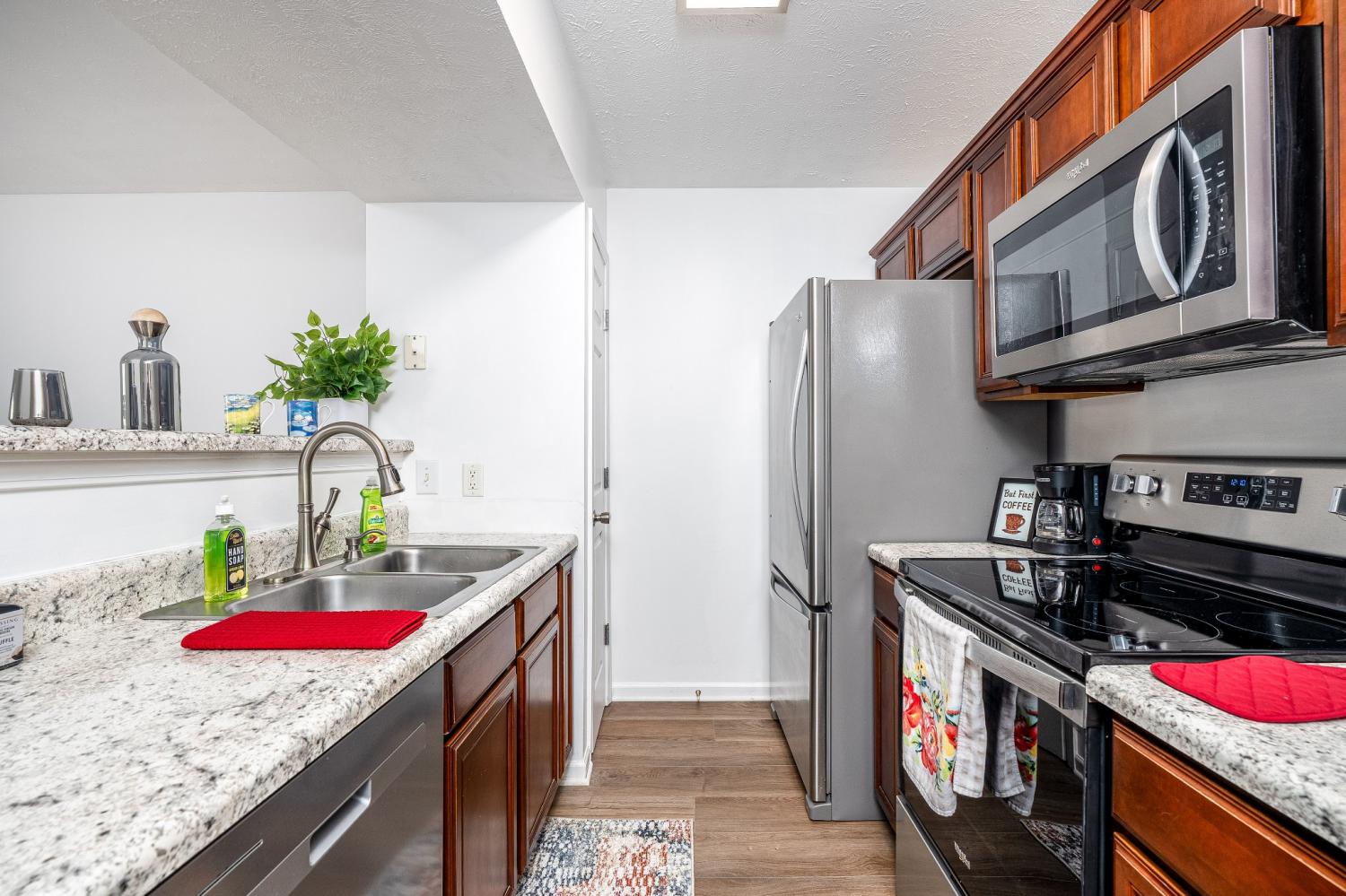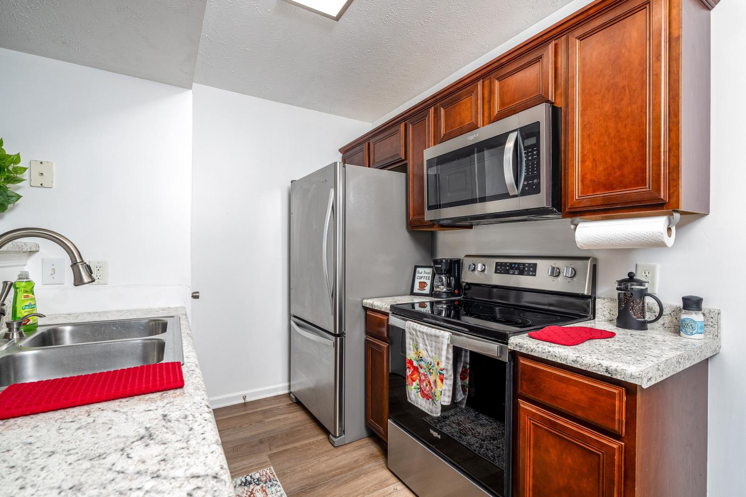 First Showings 4pm - 3/14! - Seller offering $5000 in Buyer's Closing Costs! This is definitely THE ONE! Exceptional MOVE-IN-READY townhome is just waiting for you! Brand NEW FLOORING and FRESH PAINT throughout! Gorgeous LVP flooring on main level as well as Bathrooms upstairs - Brand new CARPET too - Kitchen has brand NEW COUNTERTOPS plus all 2024 NEW STAINLESS STEEL APPLIANCES - Both Bedrooms with walk-in closets! - Updated lighting & ceiling fans - Home is Energy Efficient, too! - New Windows, Back sliding glass door & Attic reinsulated 2021 - 2 designated parking spaces - Convenient location! Near the Lake-shopping, restaurants - Walmart & Dollar General Market right down the street! - Don't miss out - Won't last!