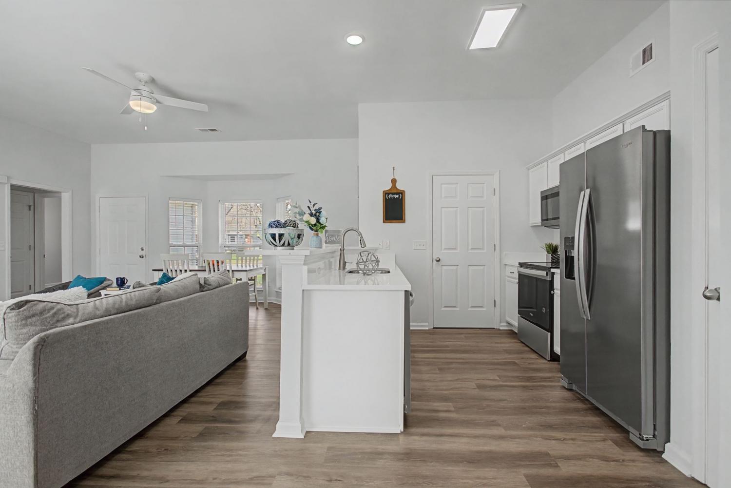 ~Location, location, location and no HOA~Nestled on a quiet, tree-lined street on the North side of Spring Hill Williamson County, this newly renovated one level 3 bed 2 bath 1660 sq ft home is in Spring Hill Estates~Renovations include; fresh paint, new faux window blinds, LED lighting, new luxury vinyl plank flooring~Bath renovations feature a new porcelain tiled Calacutta primary shower with a double vanity with Calacutta Valletta quartz and plumbing fixtures~New stainless steel appliances with an extended bar area highlight a Chef's kitchen with white resurfaced cabinets with Calacutta Valletta quartz countertops, plumbing fixtures, and garbage disposal~.28 acres with fully fenced backyard and new oversized stained deck~New driveway as well~Zoned for the award-winning Williamson County School District, one of the top-performing districts in Tennessee~Convenient access to I-65 and Hwy 840 close to shopping, dining, and parks~