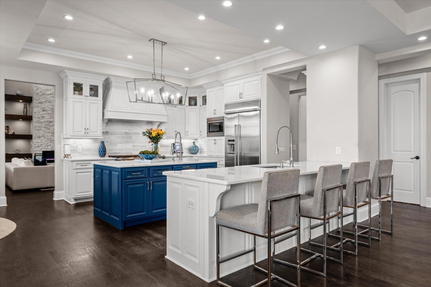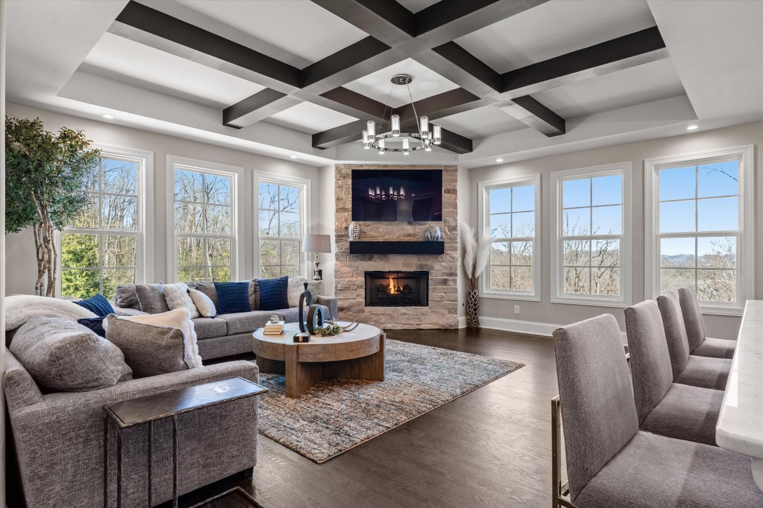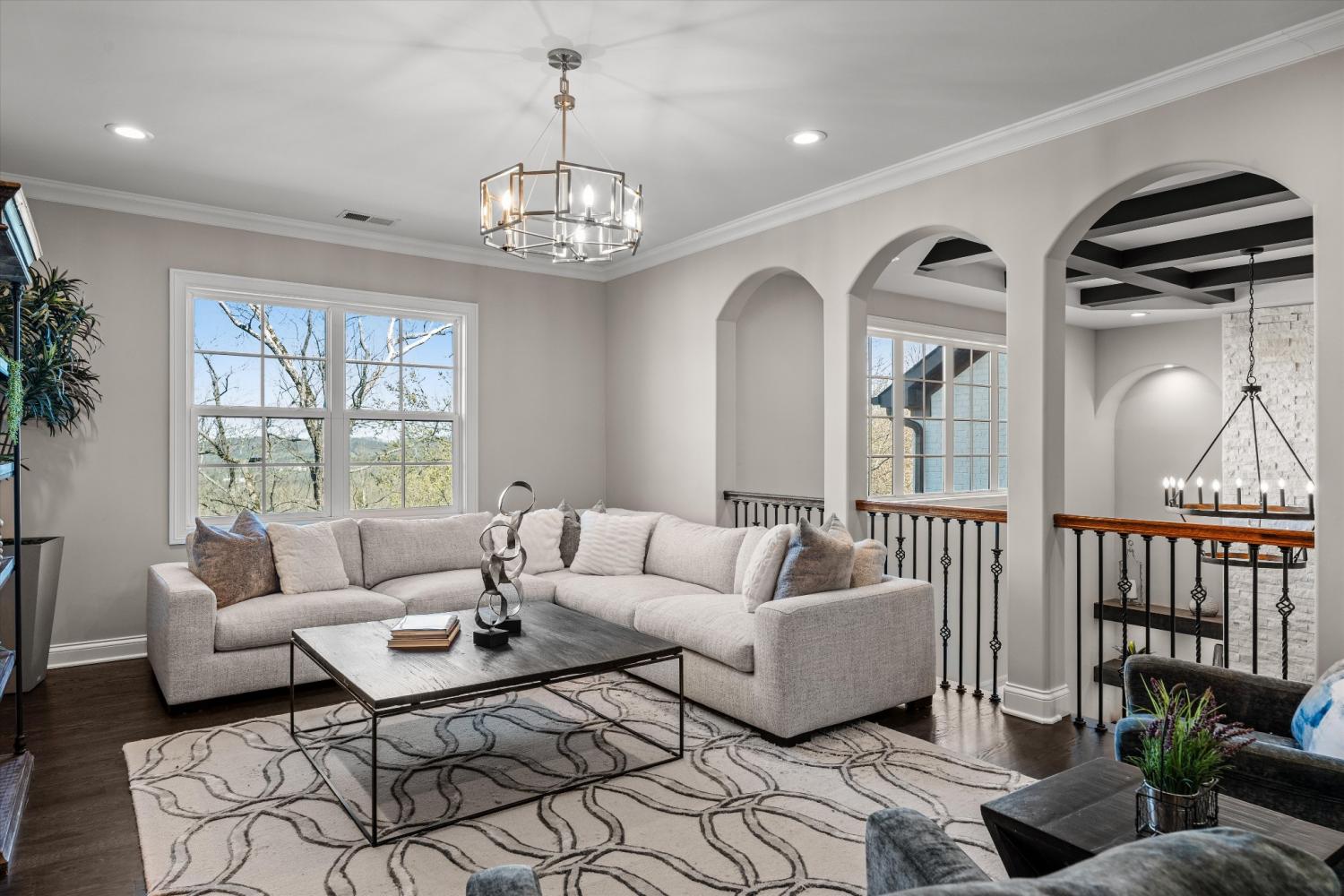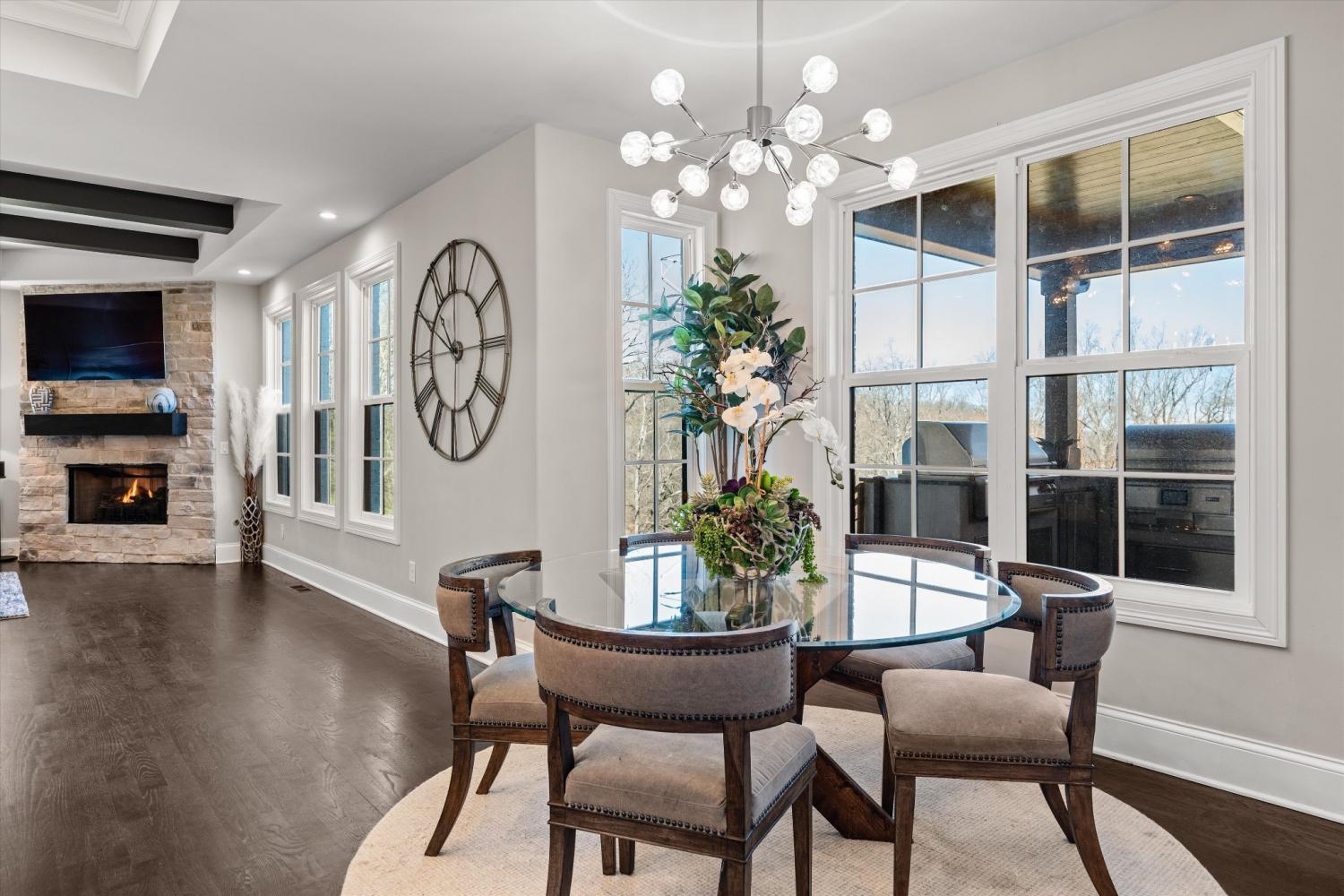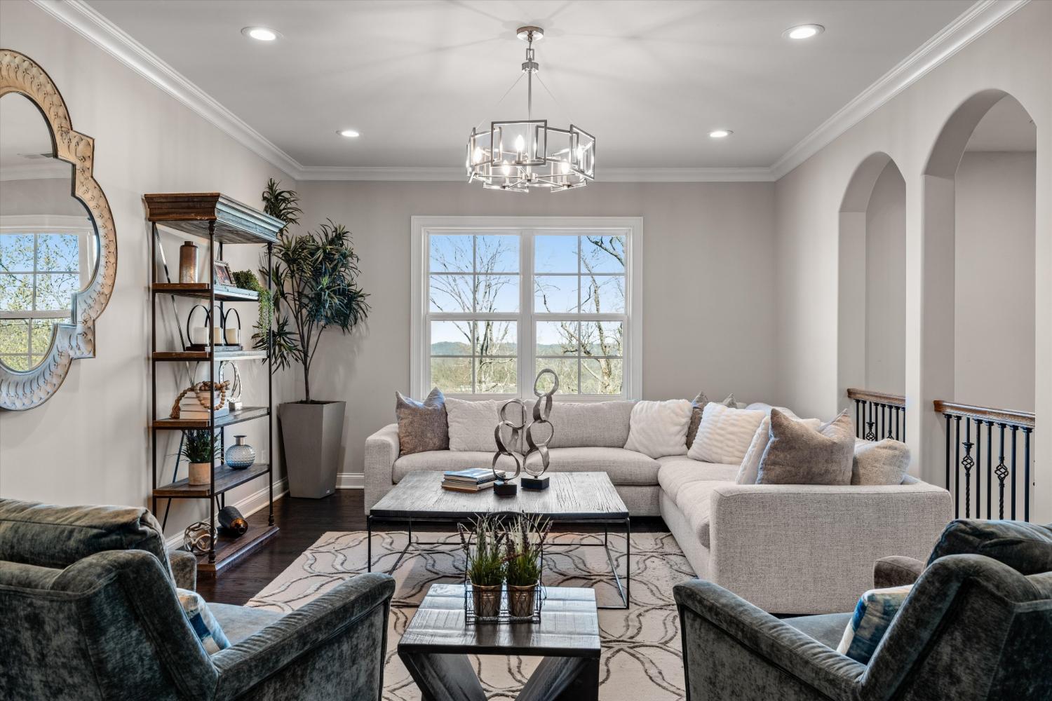 Tucked away on 2.4 private acres in the prestigious gated community of Legends Ridge, this exceptional Franklin luxury estate blends timeless European architecture w/ modern amenities designed for elevated living & unforgettable entertaining. From the moment you enter, the home makes a statement w/ a dramatic two-story living room featuring a coffered ceiling, soaring windows, & abundant natural light. Thoughtfully designed across three levels serviced by a private elevator, the home offers six spacious ensuite bedrooms, including a luxurious primary suite on the main level & an additional nanny or in-law suite. The chef’s kitchen is a true showpiece, featuring a rare double-island layout, professional KitchenAid appliances, 2 sinks, a full pantry, & effortless flow into the home’s entertaining spaces. 2 wet bars & an extraordinary wine cellar w/ custom lighting, hidden TV, & Sonos sound system make hosting both elegant & effortless. Outdoor living is where this property truly shines. A newly constructed two-level covered veranda overlooks the incredibly private backyard & hillside views & features a fireplace, outdoor kitchen, gas grill, pellet smoker, refrigerator, heaters, & integrated Sonos audio, creating the ultimate year-round entertaining space. Additional highlights include: 4-car garage w/ epoxy floors & built-in cabinetry, Whole-home Sonos audio system, Five HVAC zones w/ Nest thermostats, Plantation shutters & electric Hunter Douglas shades, Central vacuum on all 3 levels, 3 fireplaces, Extensive storage throughout, Fully fenced backyard with mature landscaping & landscape lighting! Freshly updated w/ a refined Greek Villa exterior, this meticulously maintained estate offers the rare combination of privacy, scale, & luxury just minutes from historic downtown Franklin, top Williamson County schools, & Nashville’s premier dining & shopping. Property backs to permanent utility corridor green space, creating a rare buffer for open views & no rear neighbors.