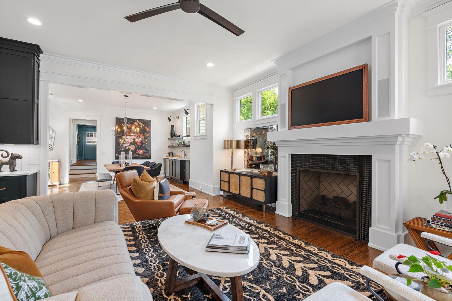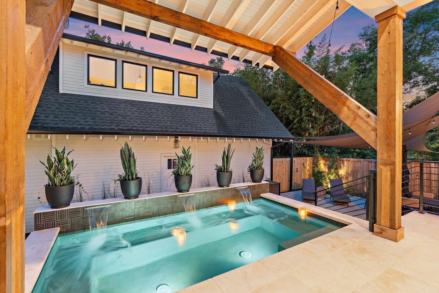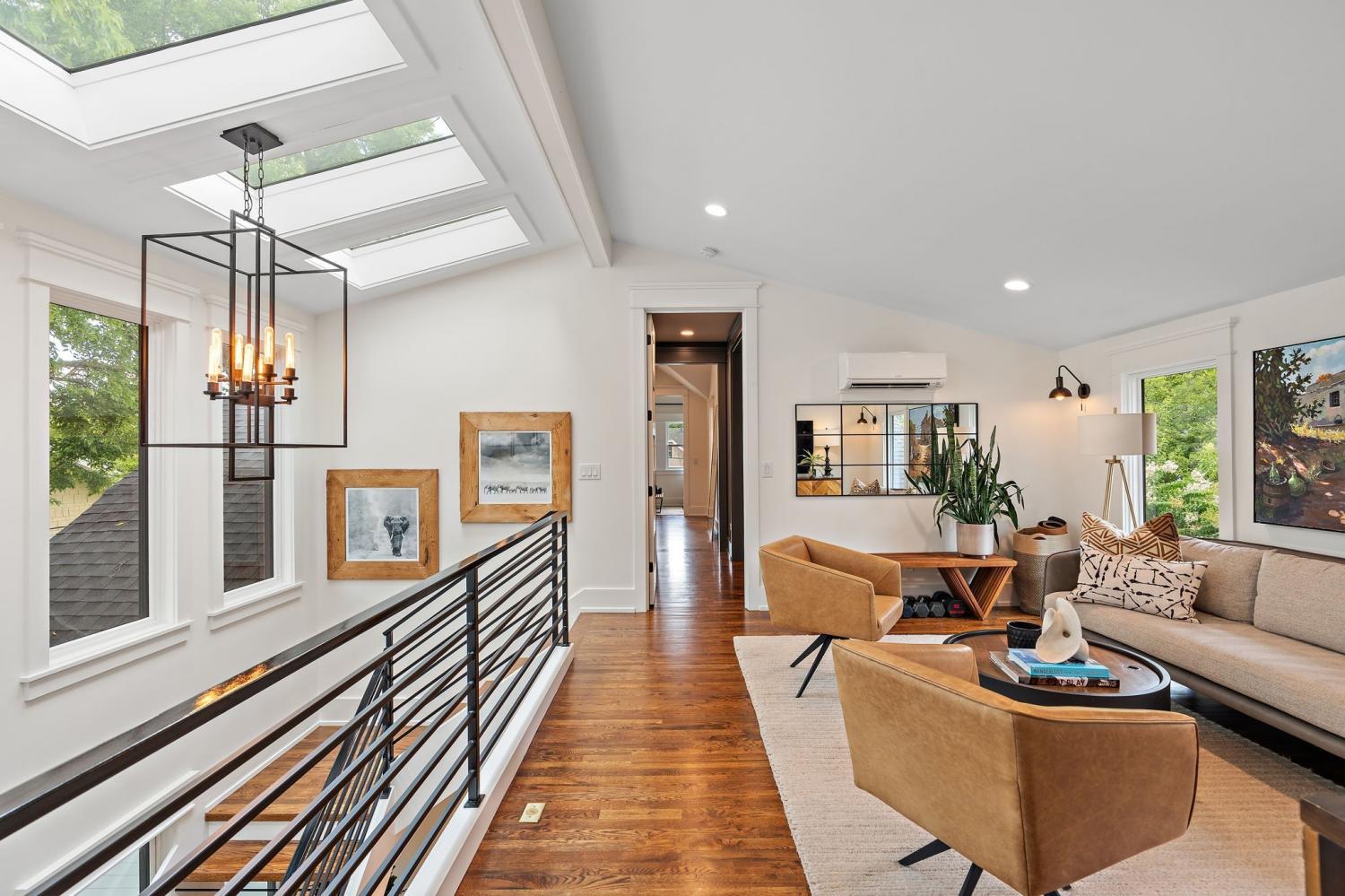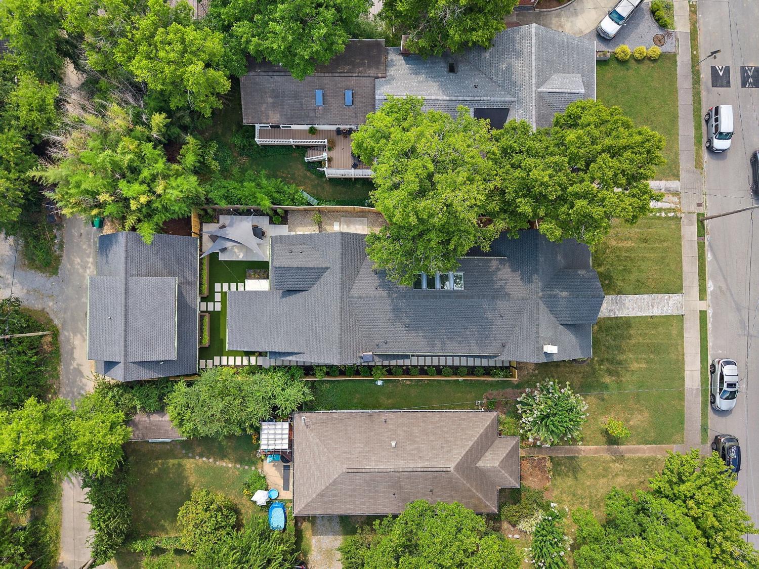 Impeccably renovated 1915 Craftsman in the heart of Belmont Hillsboro / 12 South — the ultimate blend of historic charm and modern luxury. Completely reimagined in 2022, this designer home features high-end finishes and exceptional indoor-outdoor living, including a heated plunge pool—all just steps from the shopping, dining, and coffee scene of 12th Ave South and Hillsboro Village. With over $300,000 invested in outdoor enhancements, the property is thoughtfully designed for both relaxation and entertaining, offering a year-round covered porch with built-in heaters and a gas fireplace, a heated soaking pool with waterfalls and jets, and the option to add a sauna. A marble patio, professionally designed landscaping with a turf lawn, integrated landscape lighting, and new fencing complete this serene, low-maintenance backyard oasis. Inside, the open-concept floor plan is flooded with natural light and designer details — from the dramatic wall of windows framing the floating staircase to the custom chef’s kitchen with oversized island, premium appliances, and floor-to-ceiling cabinetry. Offering two primary suites (one up, one down) plus two additional ensuite bedrooms and a dedicated home office, the layout is ideal for modern living and multi-generational flexibility. The two car garage is finished with a California Closet system for abundant storage, epoxy floors, a half bath, and a refrigerator — perfect for hobbies, entertaining, or extra prep space. Above the garage is a one-bedroom guest house with full bath offering income potential, an in-law suite, or private studio space. Located on a quiet, tree-lined street with ample parking, this home is perfectly positioned between Belmont Blvd, Hillsboro Village, and 12 South. Enjoy walkability, historic charm, luxury amenities, and a move-in-ready lifestyle in one of Nashville’s most desirable neighborhoods.