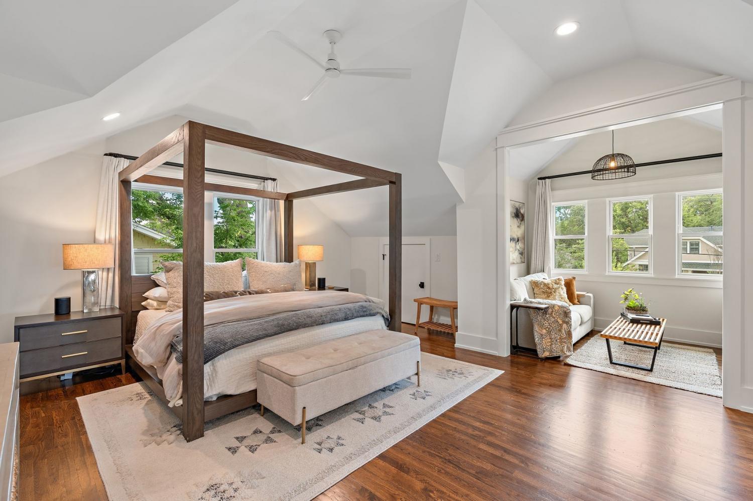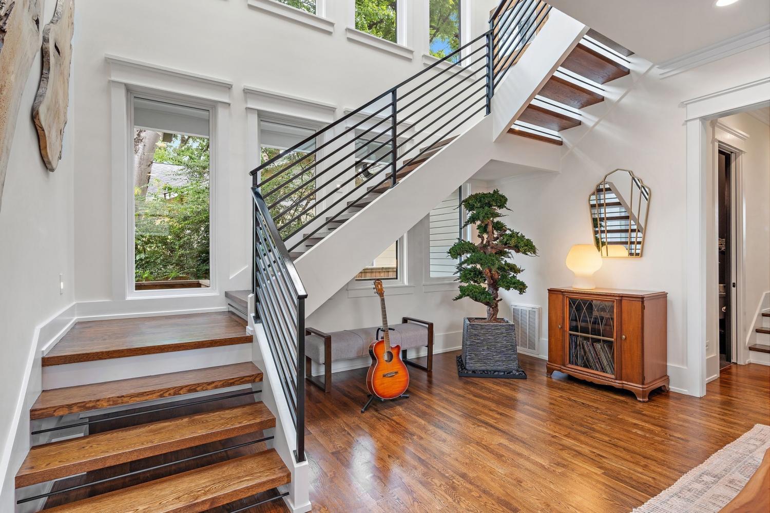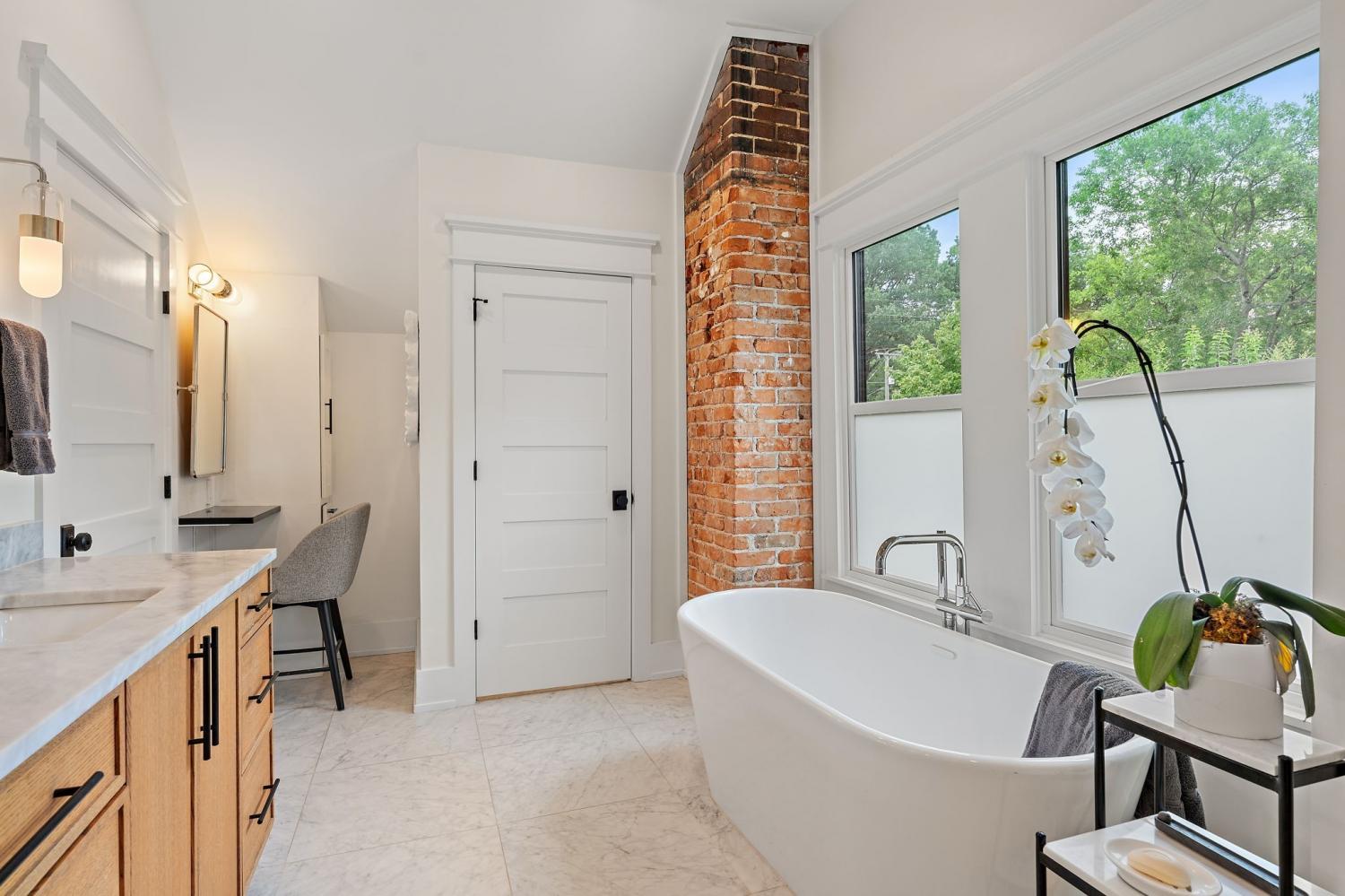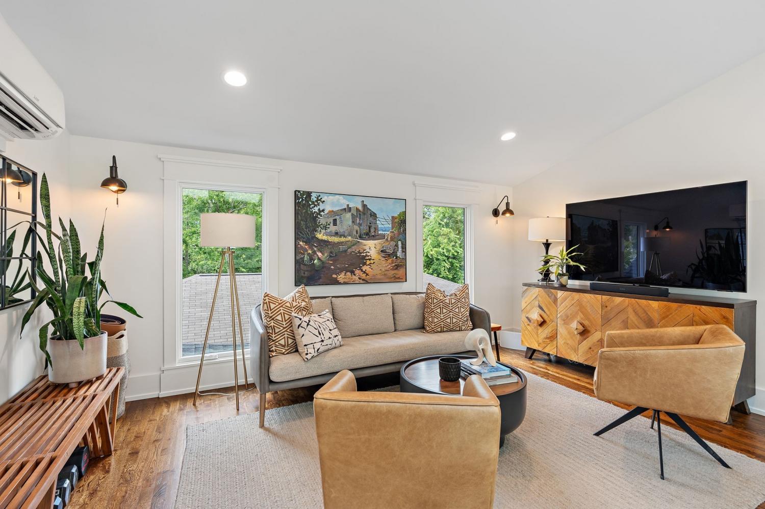 Impeccably renovated 1915 Craftsman in the heart of Belmont Hillsboro / 12 South — the ultimate blend of historic charm and modern luxury. Completely reimagined in 2022, this designer home features high-end finishes and exceptional indoor-outdoor living, including a heated plunge pool—all just steps from the shopping, dining, and coffee scene of 12th Ave South and Hillsboro Village. With over $300,000 invested in outdoor enhancements, the property is thoughtfully designed for both relaxation and entertaining, offering a year-round covered porch with built-in heaters and a gas fireplace, a heated soaking pool with waterfalls and jets, and the option to add a sauna. A marble patio, professionally designed landscaping with a turf lawn, integrated landscape lighting, and new fencing complete this serene, low-maintenance backyard oasis. Inside, the open-concept floor plan is flooded with natural light and designer details — from the dramatic wall of windows framing the floating staircase to the custom chef’s kitchen with oversized island, premium appliances, and floor-to-ceiling cabinetry. Offering two primary suites (one up, one down) plus two additional ensuite bedrooms and a dedicated home office, the layout is ideal for modern living and multi-generational flexibility. The two car garage is finished with a California Closet system for abundant storage, epoxy floors, a half bath, and a refrigerator — perfect for hobbies, entertaining, or extra prep space. Above the garage is a one-bedroom guest house with full bath offering income potential, an in-law suite, or private studio space. Located on a quiet, tree-lined street with ample parking, this home is perfectly positioned between Belmont Blvd, Hillsboro Village, and 12 South. Enjoy walkability, historic charm, luxury amenities, and a move-in-ready lifestyle in one of Nashville’s most desirable neighborhoods.