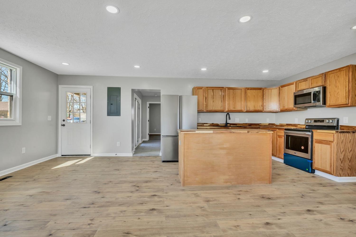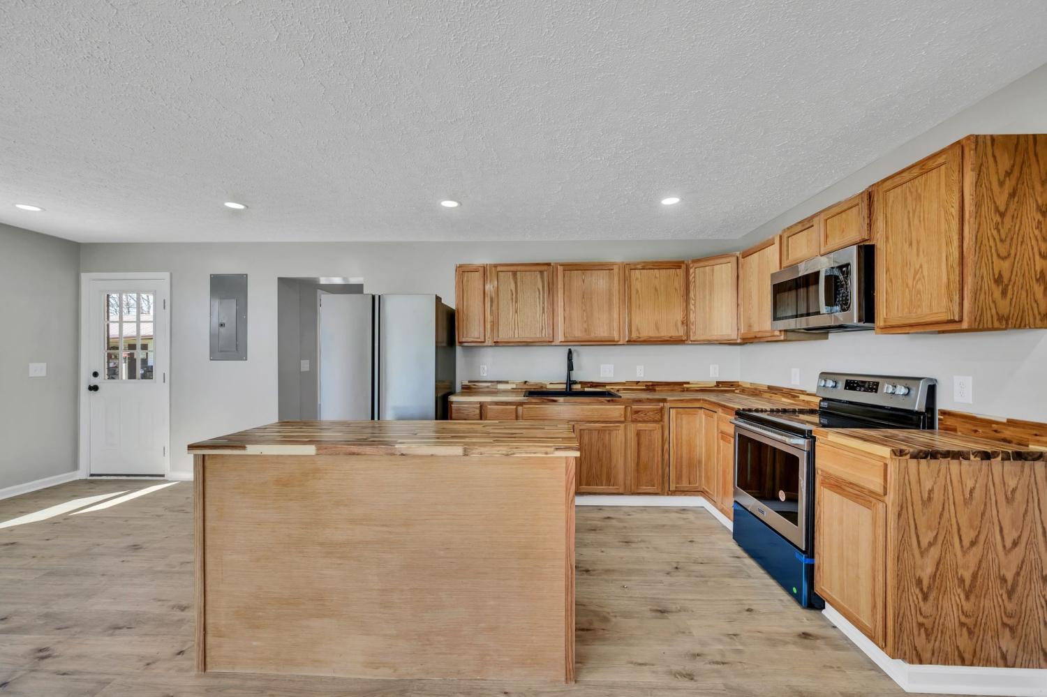 Talk about a complete remodel! This home has totally been updated inside and outside. The floor plan now consists of a Great Room/Dining Room/Kitchen all open. Stainless appliances that remain, center island in the kitchen, Butcher Block Countertops, Farm Sink, New Cabinets, All new floors inside with Luxury Vinyl Floor Coverings and Ceramic Tile in the Bathrooms! The guest bathroom has a tub, new vanities & all new tile. The master bedroom is so spacious you can have a sitting area along with your bedroom furniture! The master closet is 13 ft x 5 ft, the master bathroom has Double Vanities, Oversized walk-in shower that is custom tile with seating area & tile flooring. With the new floor plan there is a large Mudd Room that leads to the utility room. The utility room is 11 ft wide! There is a covered deck on the back of home, one of the side and a nice level lot, concrete driveway, new landscaping. Also there is a new metal roof and all new decking. The underneath of the home has new floor joists, ground cover, all new sheetrock inside, new light fixtures, all new plumbing & electric! This is a must See! It is hard to find a nicer home in this price range. Call today for an appointment to view this stunning Home!