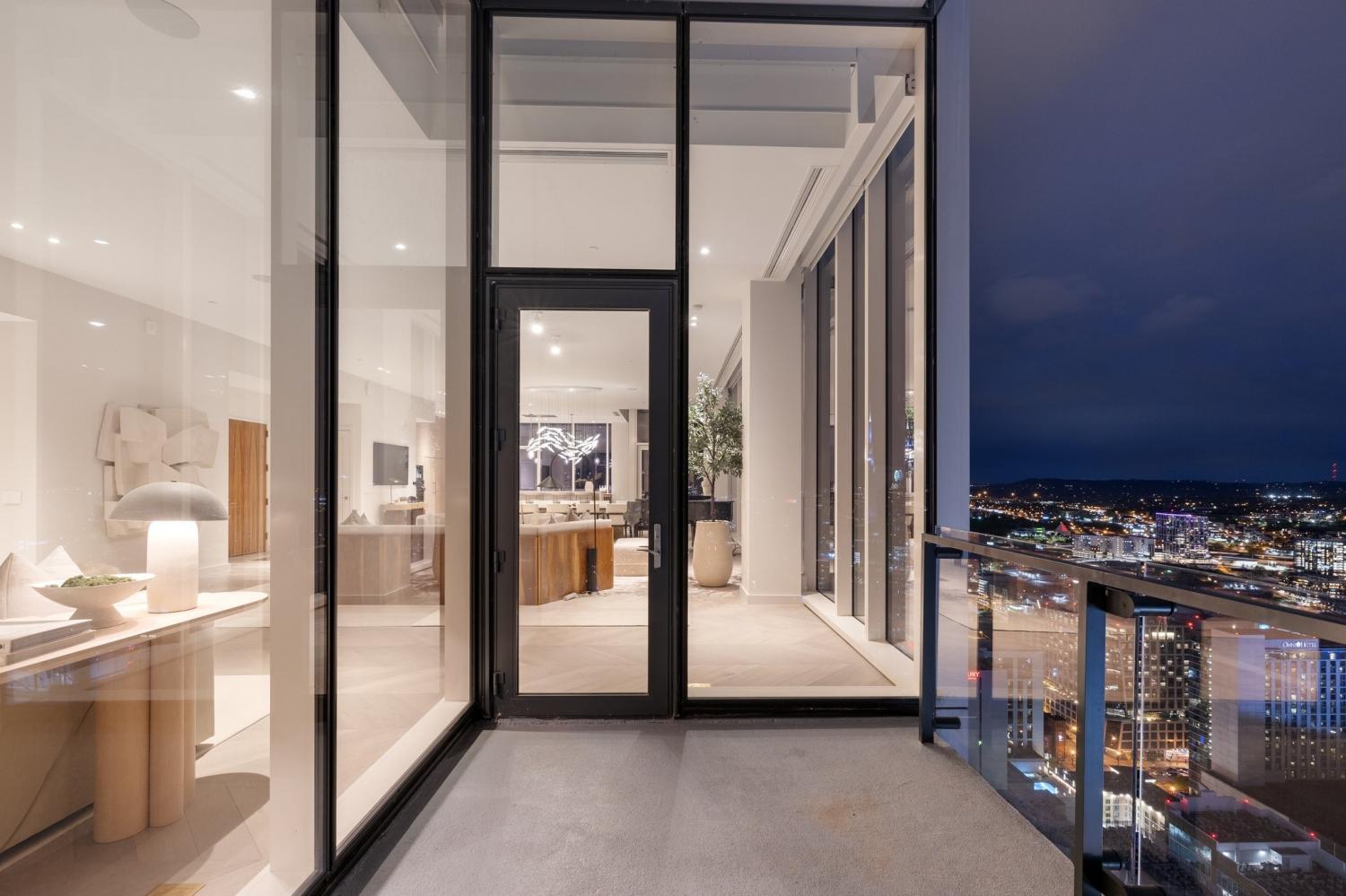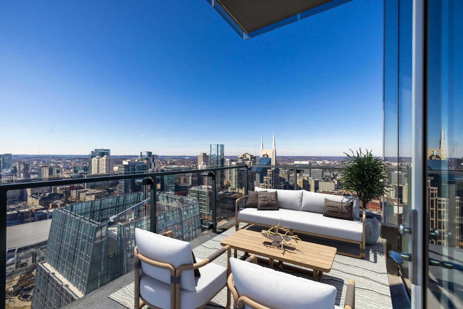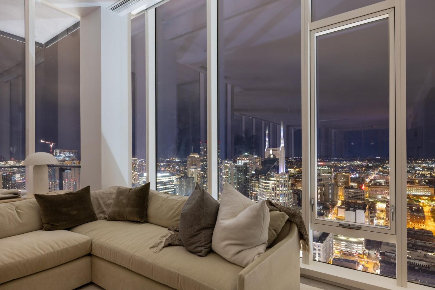 A rare opportunity to own a premier penthouse at the prestigious Four Seasons Private Residences Nashville. Perched atop the 39th floor, this exceptional half-floor residence captures breathtaking western exposure with sweeping sunset views over downtown Nashville. Offered fully furnished, the residence presents a true turnkey opportunity with curated artwork, custom furnishings, and seamless smart-home integration—creating an effortless lock-and-leave lifestyle without the time or expense of renovation. A thoughtfully designed technology package allows automated control throughout the home, complemented by motorized shades for added comfort and convenience. Bespoke details elevate every space, including custom cabinetry and closet buildouts by LA Closets, a handcrafted bunk room design, and a chef’s kitchen appointed with Miele appliances. Floor-to-ceiling windows frame panoramic skyline views, including a striking vantage point of the iconic AT&T Building, while the lights of downtown Nashville create a spectacular nightly backdrop. The owner’s suite serves as a private sanctuary featuring separate custom closets and dual spa-inspired bathrooms, each designed with sophisticated finishes and stunning city views. Residents enjoy world-class amenities and services synonymous with Four Seasons living, including concierge access via direct residence phone, 24/7 doorman and valet service, and three valet parking spaces. Exclusive resident amenities include a private outdoor park, residents’ lounge, media room, pet salon, and a state-of-the-art fitness center with river views. Owners also enjoy direct access to the Four Seasons Hotel Nashville Spa, outdoor pool, and hot tub on the 7th floor. The residence also conveys a private storage unit accessible via penthouse key fob for added convenience and security.