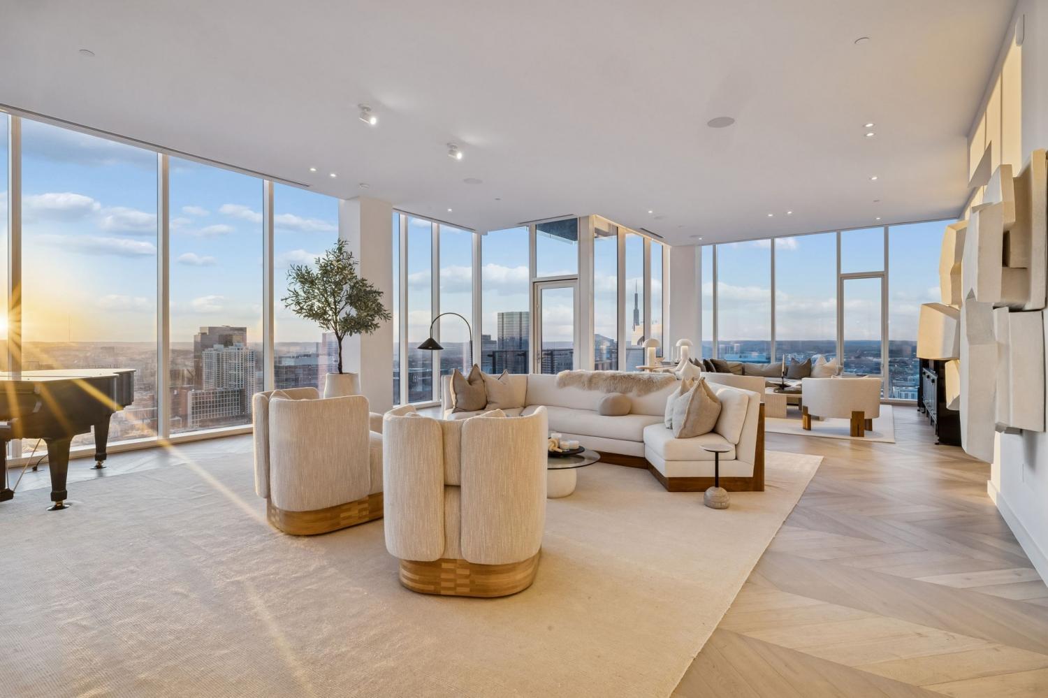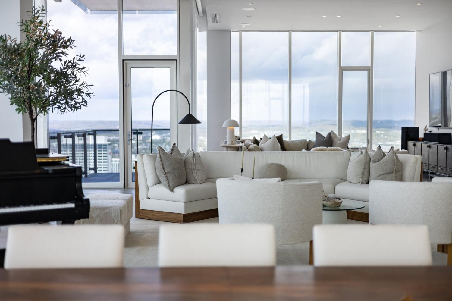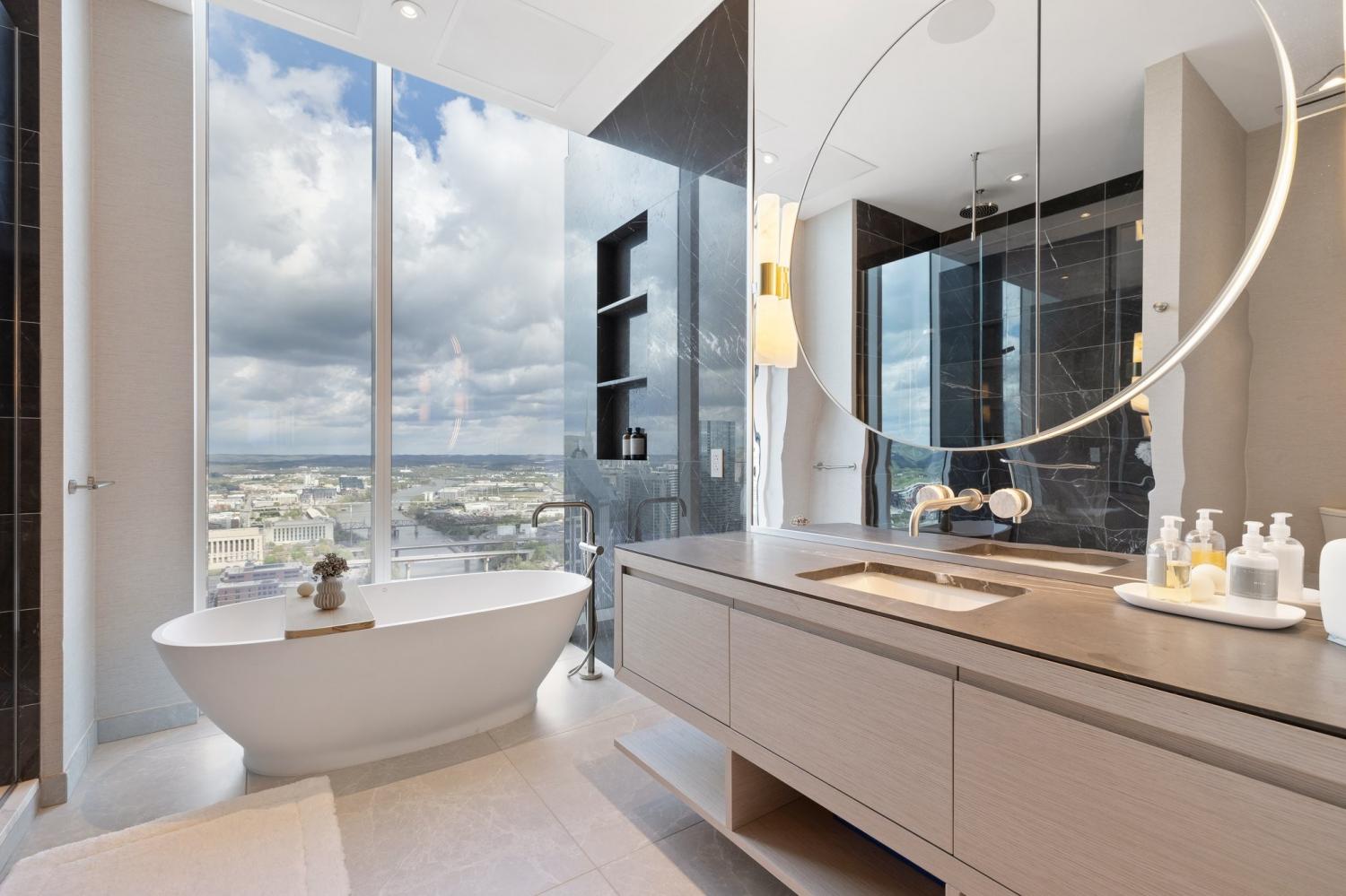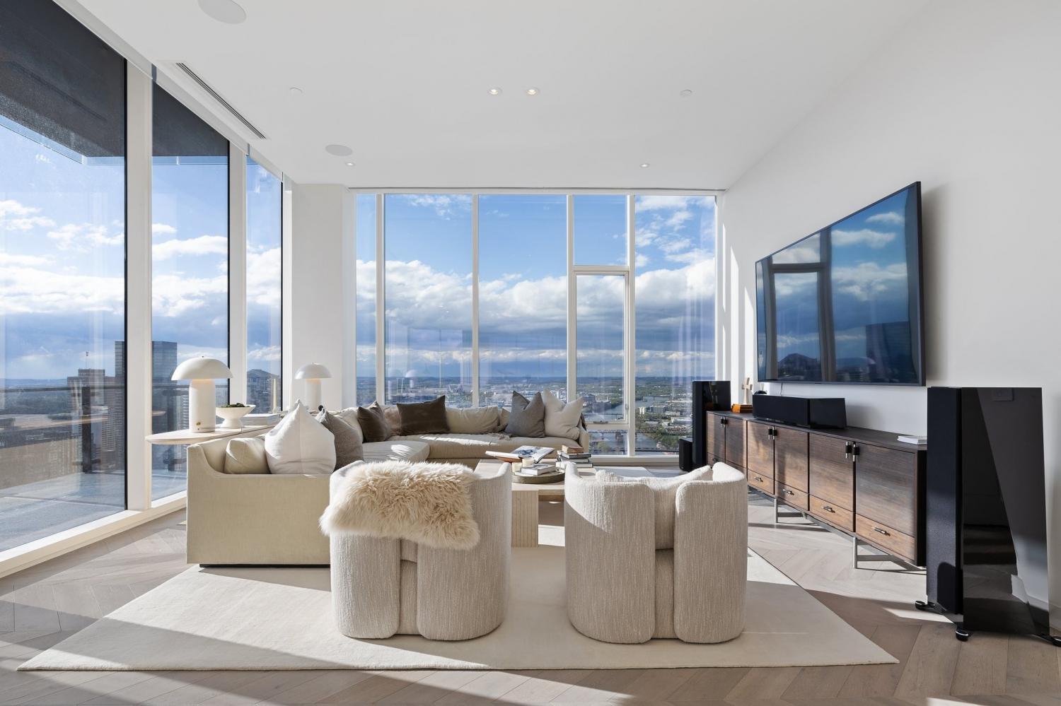 A rare opportunity to own a premier penthouse at the prestigious Four Seasons Private Residences Nashville. Perched atop the 39th floor, this exceptional half-floor residence captures breathtaking western exposure with sweeping sunset views over downtown Nashville. Offered fully furnished, the residence presents a true turnkey opportunity with curated artwork, custom furnishings, and seamless smart-home integration—creating an effortless lock-and-leave lifestyle without the time or expense of renovation. A thoughtfully designed technology package allows automated control throughout the home, complemented by motorized shades for added comfort and convenience. Bespoke details elevate every space, including custom cabinetry and closet buildouts by LA Closets, a handcrafted bunk room design, and a chef’s kitchen appointed with Miele appliances. Floor-to-ceiling windows frame panoramic skyline views, including a striking vantage point of the iconic AT&T Building, while the lights of downtown Nashville create a spectacular nightly backdrop. The owner’s suite serves as a private sanctuary featuring separate custom closets and dual spa-inspired bathrooms, each designed with sophisticated finishes and stunning city views. Residents enjoy world-class amenities and services synonymous with Four Seasons living, including concierge access via direct residence phone, 24/7 doorman and valet service, and three valet parking spaces. Exclusive resident amenities include a private outdoor park, residents’ lounge, media room, pet salon, and a state-of-the-art fitness center with river views. Owners also enjoy direct access to the Four Seasons Hotel Nashville Spa, outdoor pool, and hot tub on the 7th floor. The residence also conveys a private storage unit accessible via penthouse key fob for added convenience and security.
