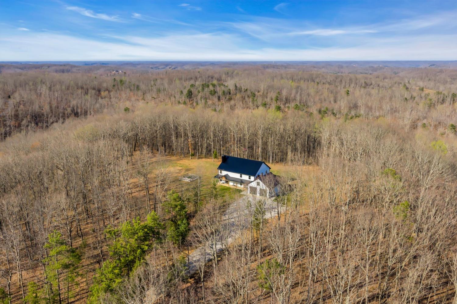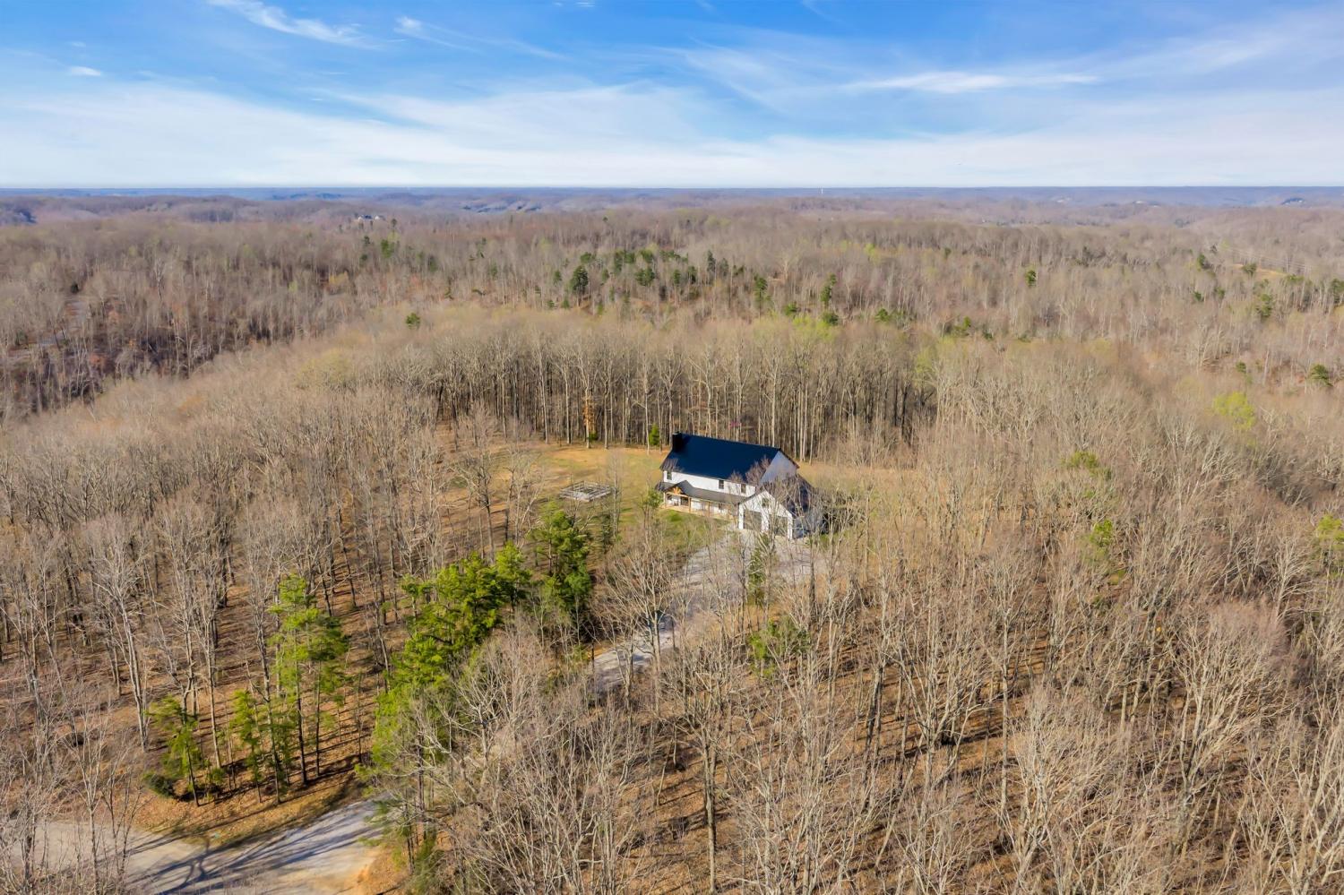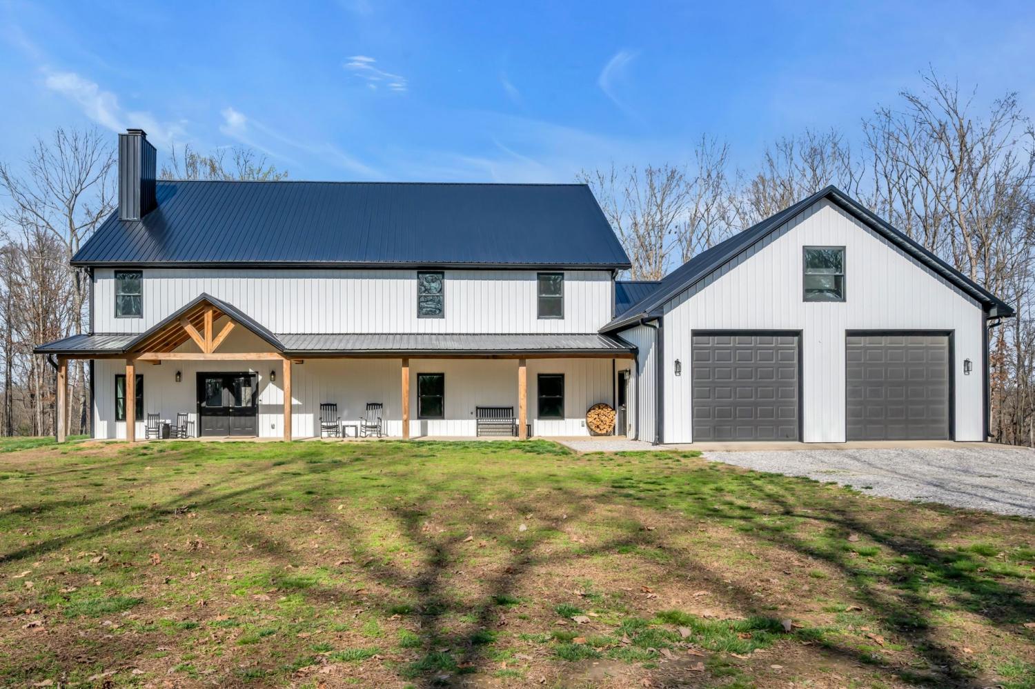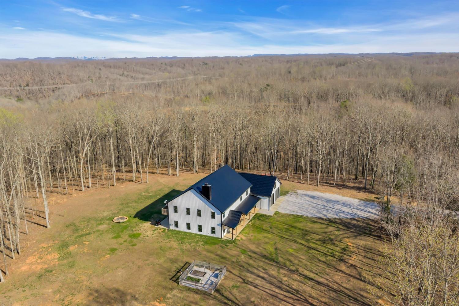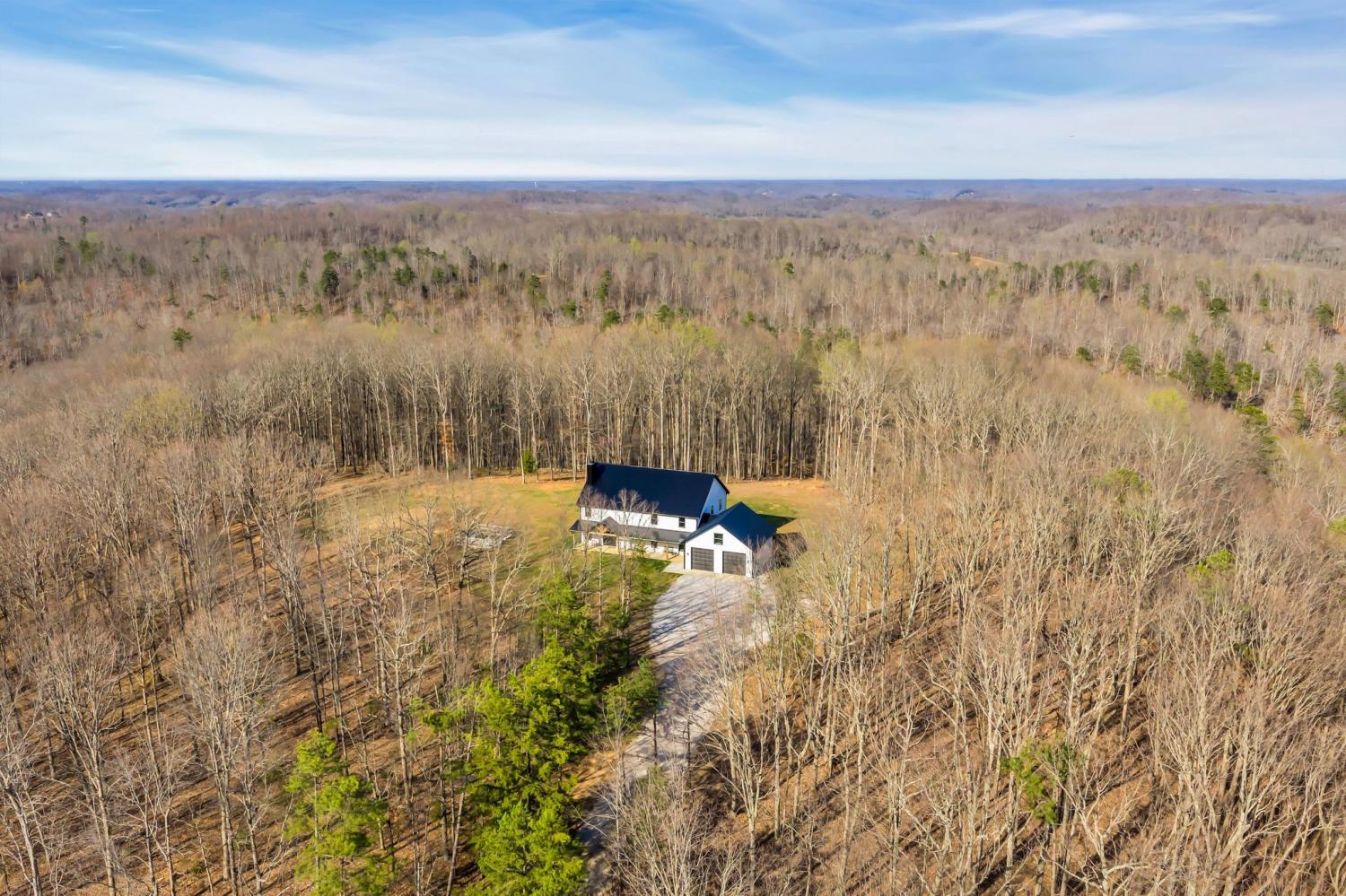 BUILD ANOTHER LARGE HOME for family or friends on these 15 acres and live in this amazing house. Beautiful custom home ,with 488 feet of road frontage, located just 25 minutes from downtown Nashville. Enjoy the outdoors with a large covered front porch, covered back porch, and additional patio-plenty of space to relax and take in the surrounding views. Step inside to a stunning two-story vaulted living room and open concept floor plan that seamlessly connects the living area, kitchen, and dining space. The living room is centered around a beautiful stone fireplace, creating the perfect place to gather with family and friends. The chef's kitchen features custom soft-close white cabinetry, a large island, and a spacious dining room. The primary suite is located on the main level with a large walk-in closet and includes a beautiful bath with a large walk-in shower and a freestanding tub. A second bedroom with a spacious closet is also located downstairs. The spacious utility room offers plenty of room for laundry, storage and added functionality. Upstairs you will find a huge bonus room ideal for a theater, homeschool space, playroom or large gathering area. There is also a craft room that makes a great home office, along with two additional bedrooms and a large bathroom. One bedroom currently features a home recording studio with a built-in vocal booth, which owners will remove and restore to bedroom space if desired by the buyer. The oversized garage includes 13 foot ceilings and 10x10 garage doors, along with a water softener, whole house filtration system, and oversized well pressure tank that ensures consistent water pressure throughout the home. A rare opportunity to own a beautiful home on 15 private acres minutes from Nashville. FYI.. *AT& T fiber internet available*