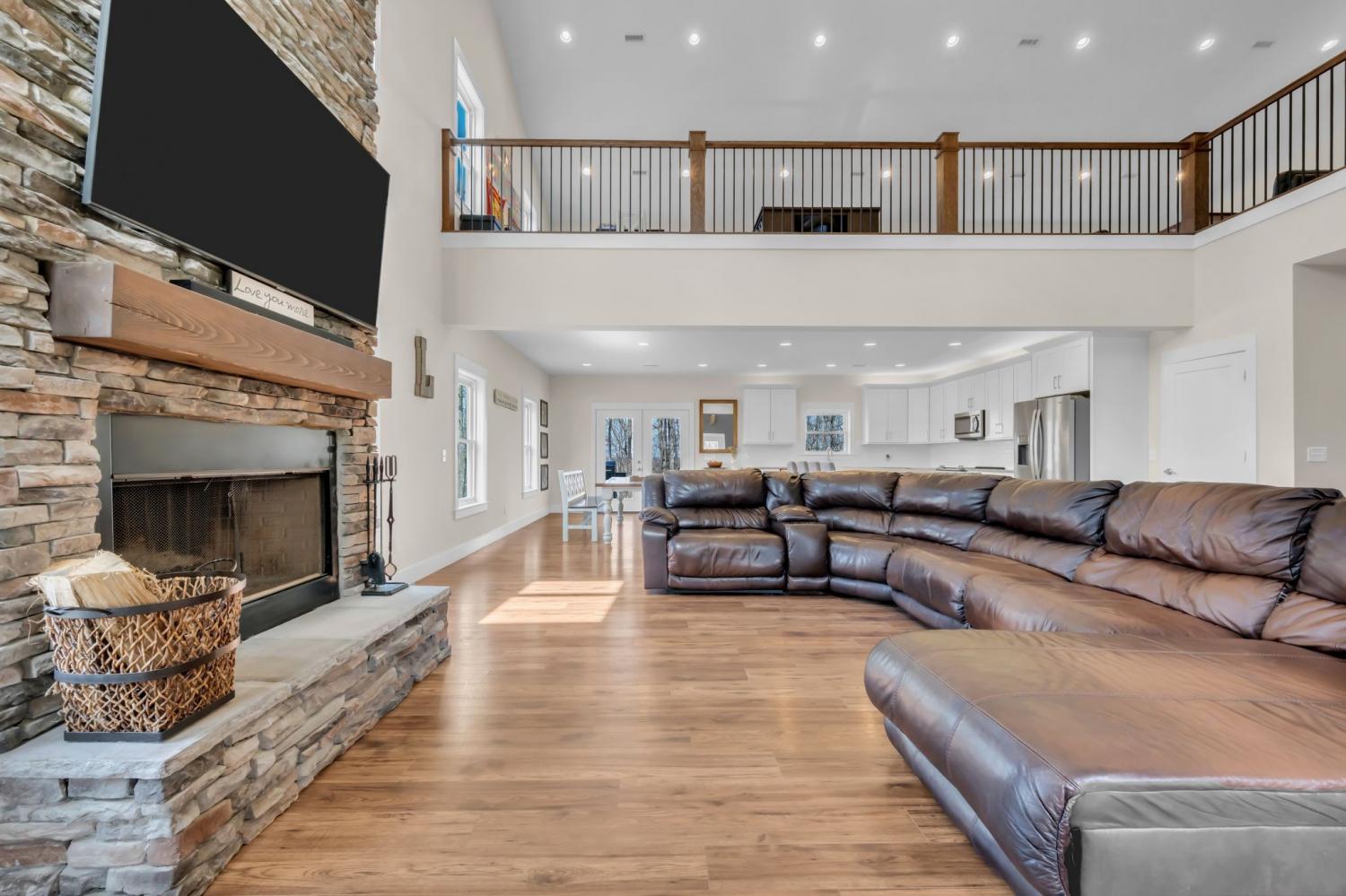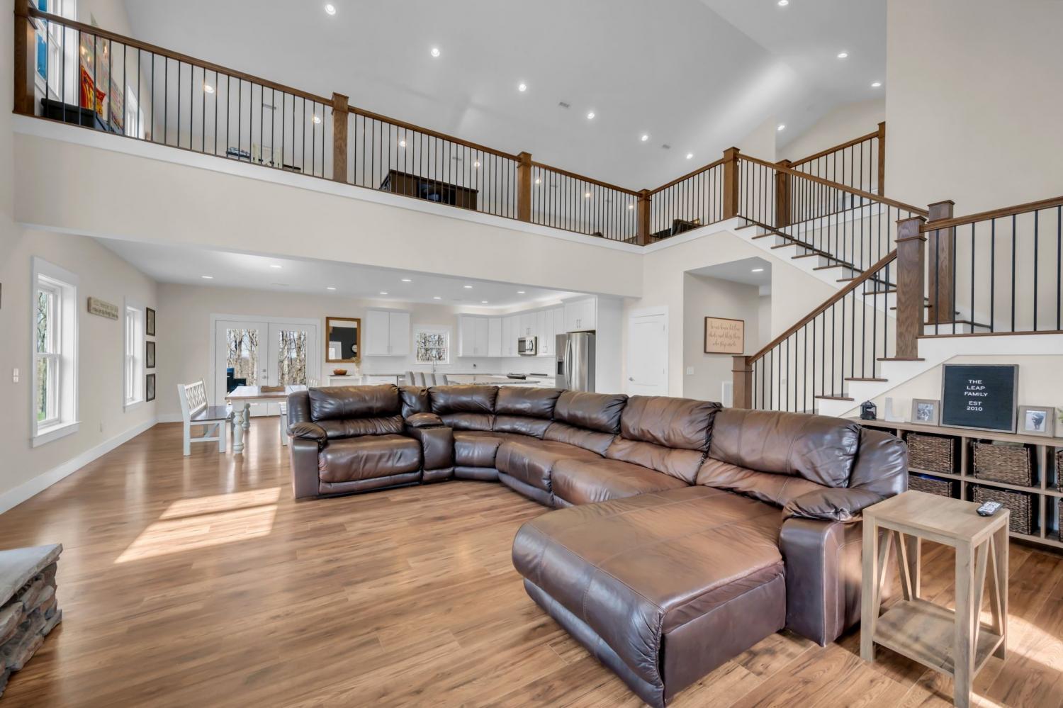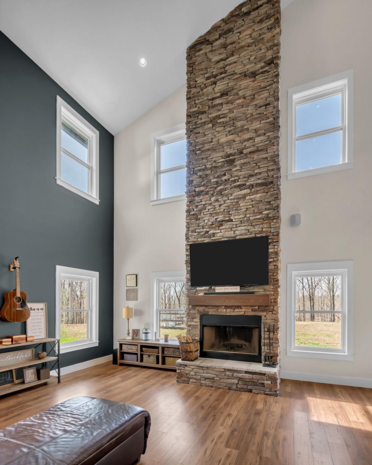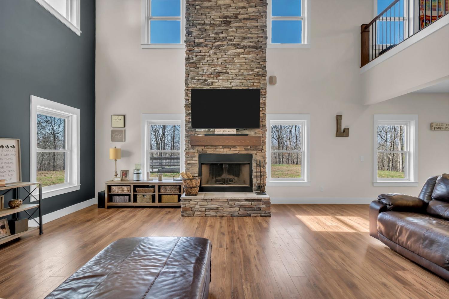 BUILD ANOTHER LARGE HOME for family or friends on these 15 acres and live in this amazing house. Beautiful custom home ,with 488 feet of road frontage, located just 25 minutes from downtown Nashville. Enjoy the outdoors with a large covered front porch, covered back porch, and additional patio-plenty of space to relax and take in the surrounding views. Step inside to a stunning two-story vaulted living room and open concept floor plan that seamlessly connects the living area, kitchen, and dining space. The living room is centered around a beautiful stone fireplace, creating the perfect place to gather with family and friends. The chef's kitchen features custom soft-close white cabinetry, a large island, and a spacious dining room. The primary suite is located on the main level with a large walk-in closet and includes a beautiful bath with a large walk-in shower and a freestanding tub. A second bedroom with a spacious closet is also located downstairs. The spacious utility room offers plenty of room for laundry, storage and added functionality. Upstairs you will find a huge bonus room ideal for a theater, homeschool space, playroom or large gathering area. There is also a craft room that makes a great home office, along with two additional bedrooms and a large bathroom. One bedroom currently features a home recording studio with a built-in vocal booth, which owners will remove and restore to bedroom space if desired by the buyer. The oversized garage includes 13 foot ceilings and 10x10 garage doors, along with a water softener, whole house filtration system, and oversized well pressure tank that ensures consistent water pressure throughout the home. A rare opportunity to own a beautiful home on 15 private acres minutes from Nashville. FYI.. *AT& T fiber internet available*