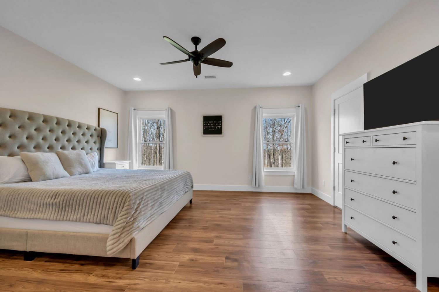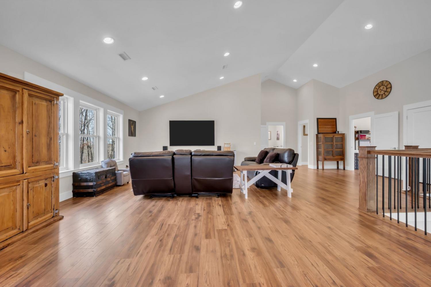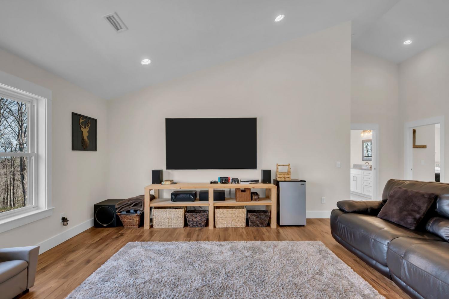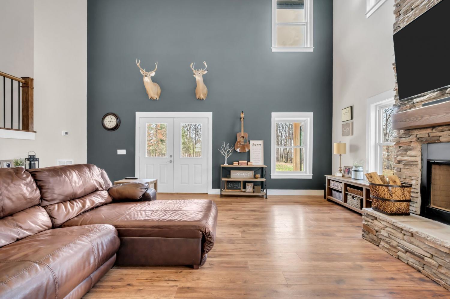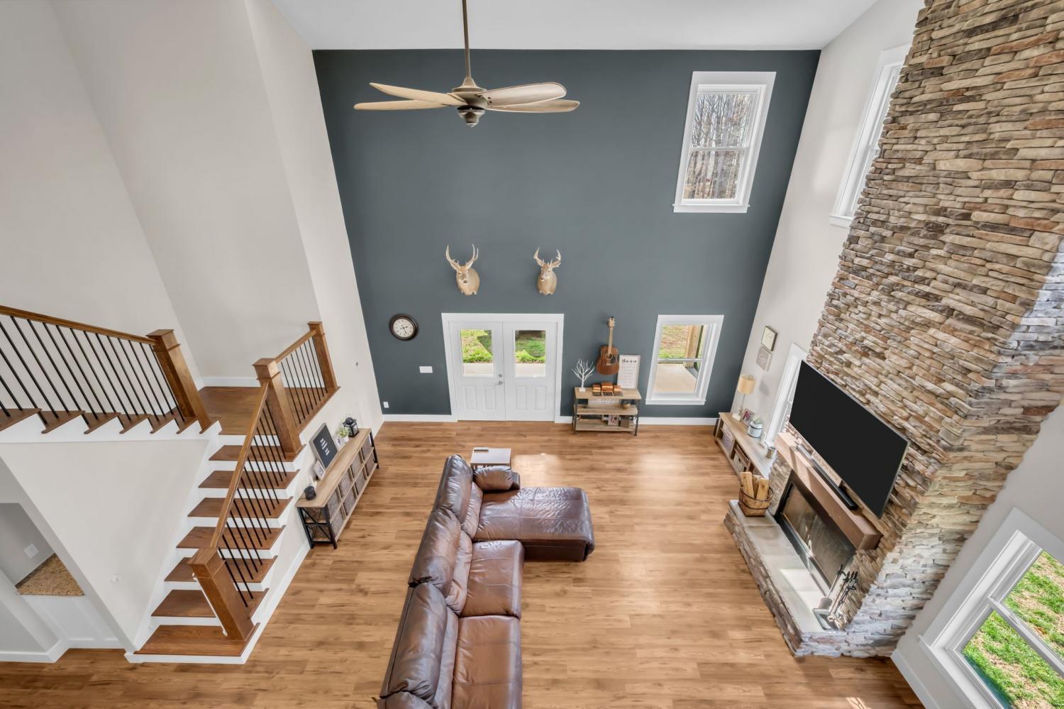 BUILD ANOTHER LARGE HOME for family or friends on these 15 acres and live in this amazing house. Beautiful custom home ,with 488 feet of road frontage, located just 25 minutes from downtown Nashville. Enjoy the outdoors with a large covered front porch, covered back porch, and additional patio-plenty of space to relax and take in the surrounding views. Step inside to a stunning two-story vaulted living room and open concept floor plan that seamlessly connects the living area, kitchen, and dining space. The living room is centered around a beautiful stone fireplace, creating the perfect place to gather with family and friends. The chef's kitchen features custom soft-close white cabinetry, a large island, and a spacious dining room. The primary suite is located on the main level with a large walk-in closet and includes a beautiful bath with a large walk-in shower and a freestanding tub. A second bedroom with a spacious closet is also located downstairs. The spacious utility room offers plenty of room for laundry, storage and added functionality. Upstairs you will find a huge bonus room ideal for a theater, homeschool space, playroom or large gathering area. There is also a craft room that makes a great home office, along with two additional bedrooms and a large bathroom. One bedroom currently features a home recording studio with a built-in vocal booth, which owners will remove and restore to bedroom space if desired by the buyer. The oversized garage includes 13 foot ceilings and 10x10 garage doors, along with a water softener, whole house filtration system, and oversized well pressure tank that ensures consistent water pressure throughout the home. A rare opportunity to own a beautiful home on 15 private acres minutes from Nashville. FYI.. *AT& T fiber internet available*