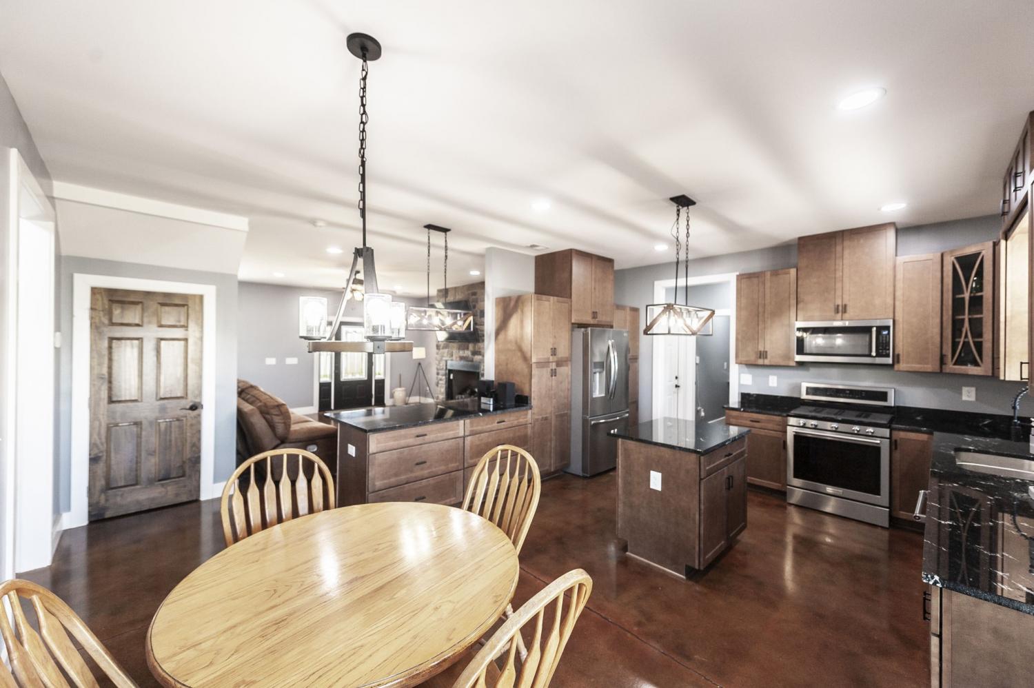 Welcome to your own private slice of country paradise! Nestled on 1.35 acres, this beautiful modern farmhouse offers the perfect blend of charm, comfort, and peaceful surroundings. From the moment you pull into the driveway, the home makes a lasting impression. Set back off the road and tucked behind a natural tree line, it provides a wonderful sense of privacy and a welcoming approach that immediately feels like home. The full-length rocking chair front porch sets the tone for relaxed country living. With plenty of space for a porch swing and rocking chairs, it’s the perfect place to enjoy your morning coffee or unwind in the evening. Step inside to an inviting open floor plan designed for both everyday living and entertaining. The main living area features stained concrete floors, a stunning stone fireplace, and great natural flow between the living, dining, and kitchen spaces. The kitchen is both stylish and functional with beautiful stained cabinetry, granite countertops, stainless steel appliances, and plenty of prep and storage space for cooking and gathering. The thoughtfully designed split bedroom floor plan offers privacy for everyone. The spacious primary suite is tucked away on one side of the home and feels like a true retreat. The spa-like primary bath includes a soaking tub, large tiled shower, and double vanity, creating a relaxing space to start and end your day. On the opposite side of the home, two nicely sized guest bedrooms. Upstairs you’ll find a large open bonus room with hardwood floors that offers endless possibilities. Whether you envision a media room, playroom, home office, workout area, or multipurpose space, this blank slate gives you the flexibility to create exactly what you need. Throughout the home you’ll appreciate solid wood interior doors and quality finishes that add warmth and charm. Out back, the covered back porch is the perfect place to relax and take in the sweeping views of surrounding farmland.