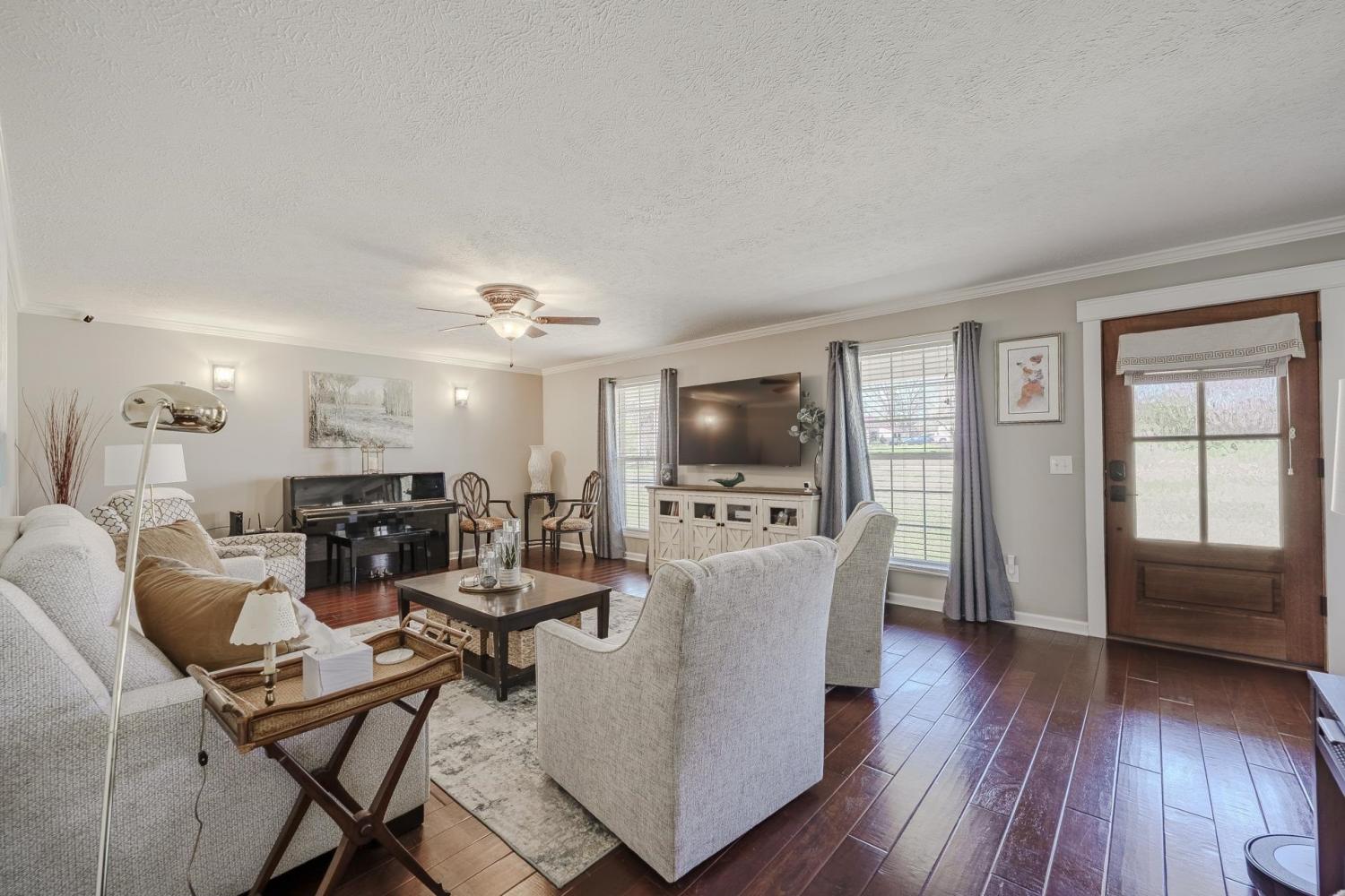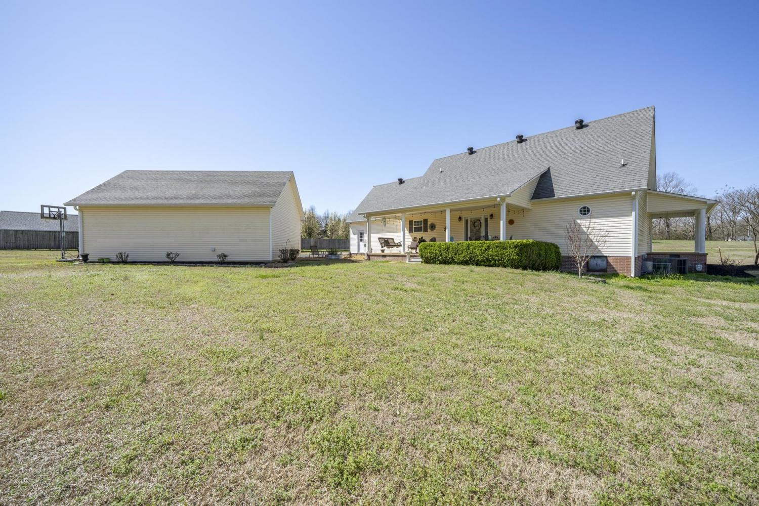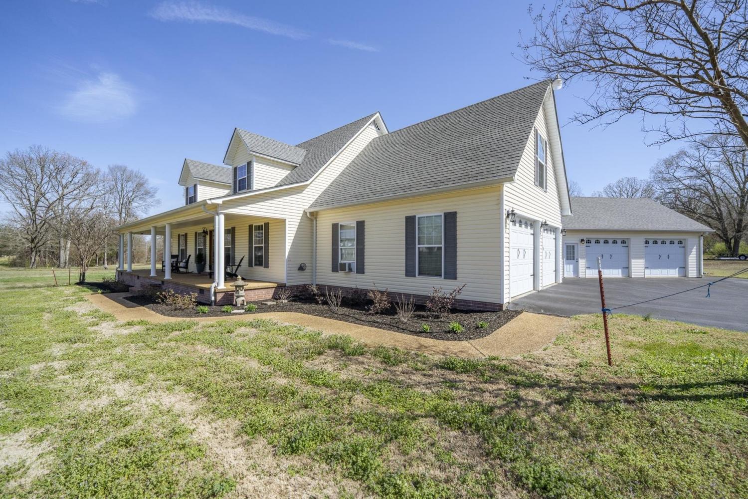 Spacious all-vinyl home located in a wonderful subdivision! This beautiful property features 4 oversized bedrooms and 3 full baths with gorgeous hardwood floors, walk-in closets, and tile baths throughout. The roomy kitchen is perfect for gathering, complete with cherry cabinets, granite countertops, and stainless steel appliances. Enjoy relaxing mornings on the inviting front porch or unwind on the covered back porch overlooking the property. Recent updates include a new front door, hand-scraped wood floors, and new carpet. Outside you'll find a 24x32 shop that is well insulated and wired with both 220 and 110 electric—perfect for parking vehicles, storing equipment, or working on projects. Situated on 3.6± acres, offering space and privacy while still being minutes from town, the Tennessee River, Pickwick Lake, Shiloh National Military Park, and a private school.