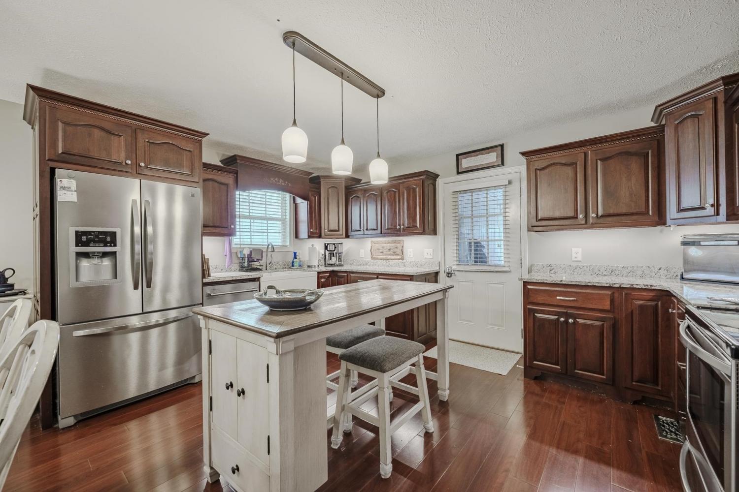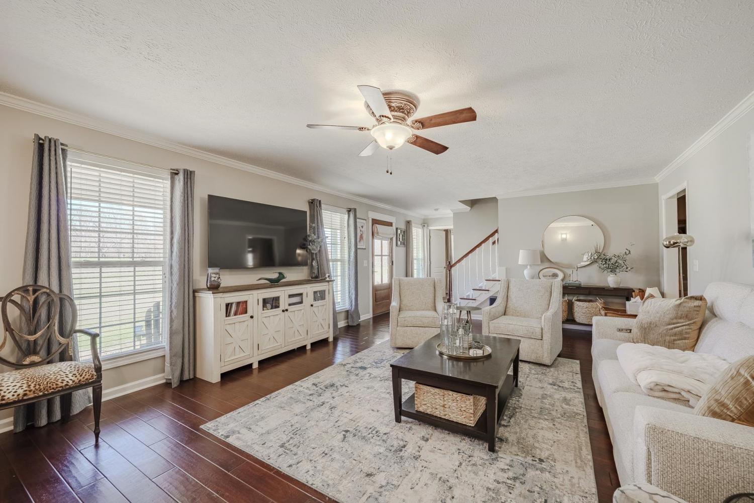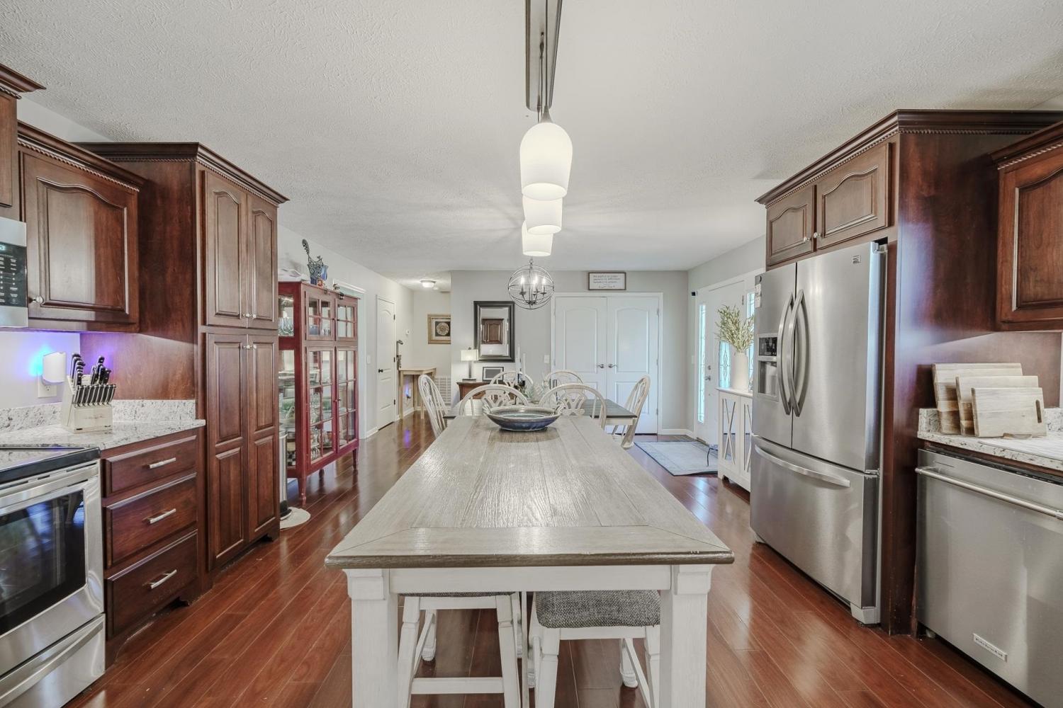 Spacious all-vinyl home located in a wonderful subdivision! This beautiful property features 4 oversized bedrooms and 3 full baths with gorgeous hardwood floors, walk-in closets, and tile baths throughout. The roomy kitchen is perfect for gathering, complete with cherry cabinets, granite countertops, and stainless steel appliances. Enjoy relaxing mornings on the inviting front porch or unwind on the covered back porch overlooking the property. Recent updates include a new front door, hand-scraped wood floors, and new carpet. Outside you'll find a 24x32 shop that is well insulated and wired with both 220 and 110 electric—perfect for parking vehicles, storing equipment, or working on projects. Situated on 3.6± acres, offering space and privacy while still being minutes from town, the Tennessee River, Pickwick Lake, Shiloh National Military Park, and a private school.