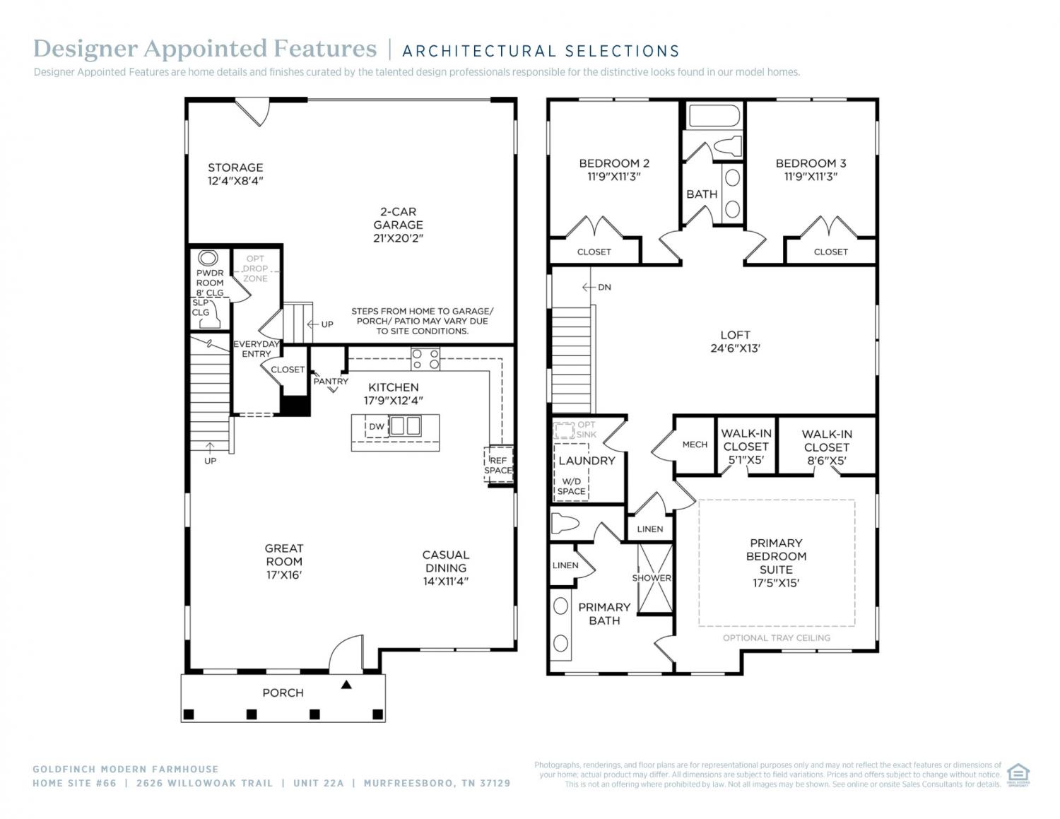 Welcome to Meadowlark by Toll Brothers! The stylish Goldfinch - Modern Farmhouse elevation is expected to be complete in June 2026! This home welcomes you with a large front porch and an open floor plan for modern living throughout. The home opens immediately into the chic main living space, featuring an elegant great room and charming casual dining area. The thoughtfully planned L-shaped kitchen includes a large center island with a breakfast bar, a useful pantry, and plenty of counter and cabinet space. On the second level, the large primary bedroom has dual walk-in closets and a beautiful en-suite bath with a dual-sink vanity, a luxe walk-in tile shower, linen storage, and a private water closet. Secondary bedrooms share a nearby full hall bath with a separate vanity area. Other highlights of this home include an everyday entry, a first-floor powder room, convenient bedroom-level laundry, and extra storage throughout. DESIGN SELECTIONS ARE MADE FOR THIS HOME - PRICE IS FINAL WITH ALL OPTIONS Meadowlark is located next to Clari Park, across from The Avenue, just steps away from dining, shopping, and entertainment. This is a perfect opportunity for clients seeking the convenience of low-maintenance, urban-style living! Contact the on-site community sales consultant for more information. Photos and renderings are for representation purposes only. Actual finishes may vary.