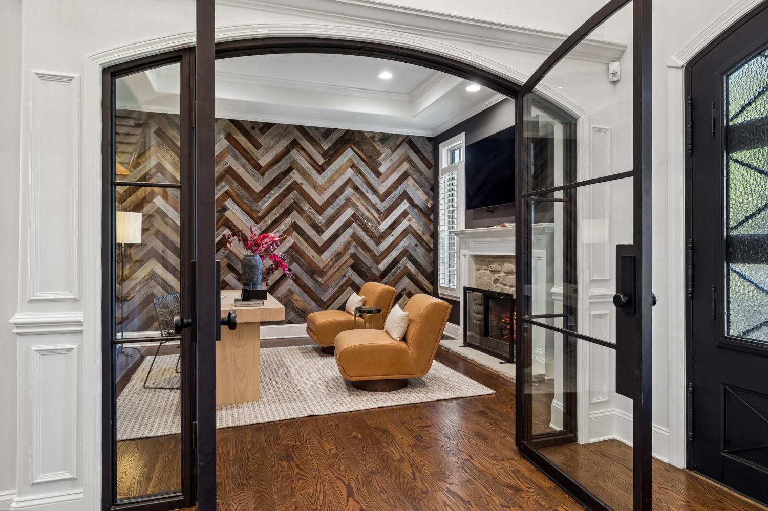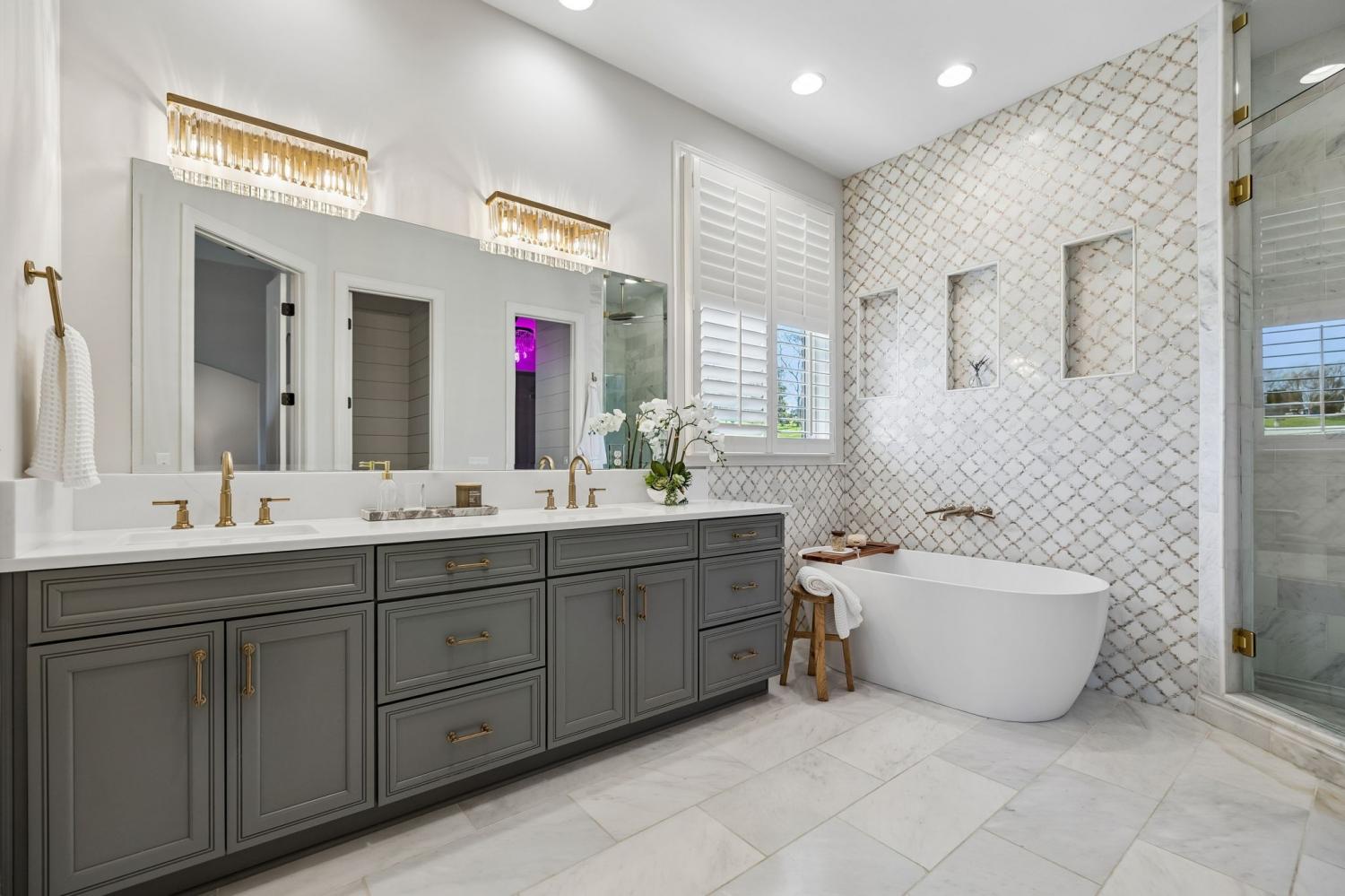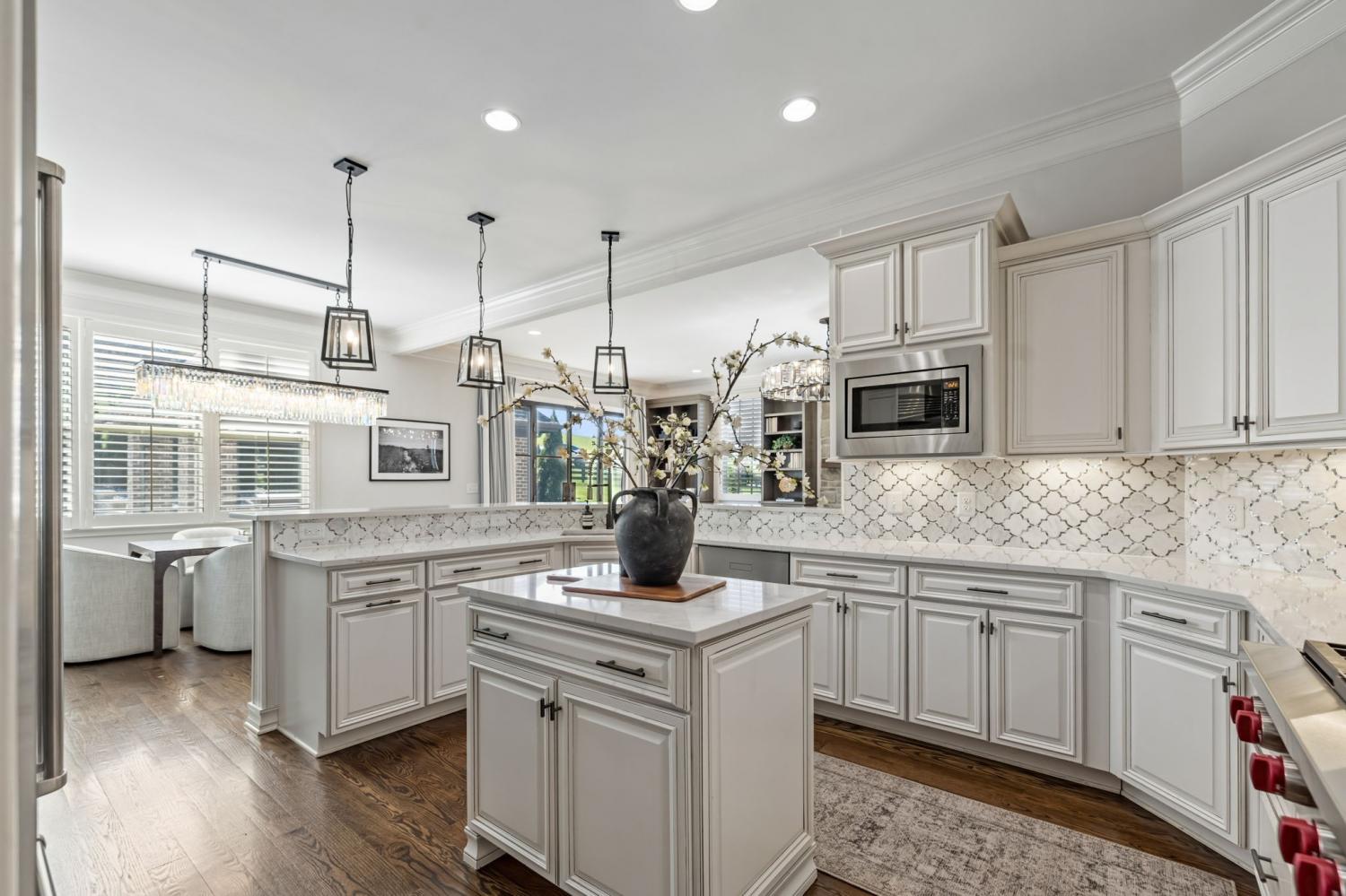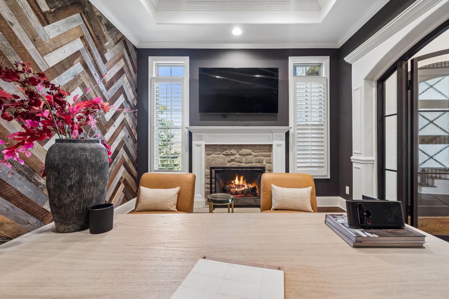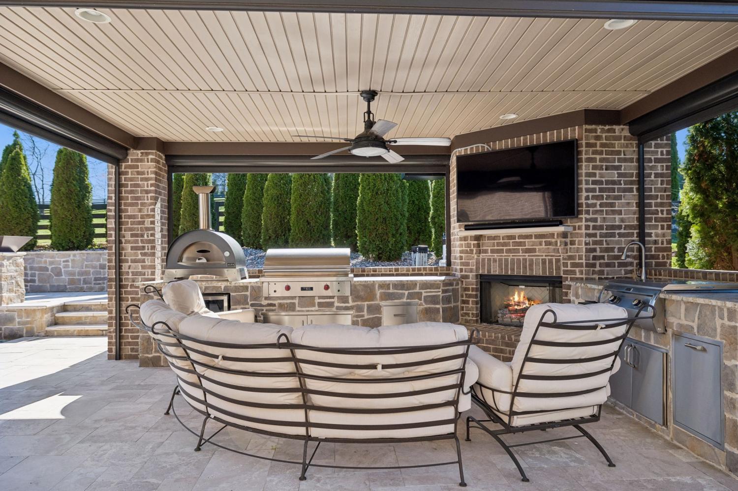 Stunning estate on a private 1-acre lot in the highly sought-after Black Hawk community, where luxury living meets incredible indoor-outdoor entertaining. The gated property offers a truly exceptional backyard oasis featuring a fenced yard, in-ground pool and spa with sun shelf, and gas fire features, along with a covered patio and fully equipped outdoor kitchen. Designed for year-round enjoyment, the outdoor living space includes retractable screens, a gas fireplace, pizza oven, TEC built-in gas grill, Fire Magic hibachi cooktop, honed granite countertops, beverage cooler, ice maker, prep sink, outdoor speaker system, and performance basketball hoop. Inside, the home impresses from the moment you enter the 19’ grand foyer with a striking chandelier. Hardwood floors flow throughout the main level, which features a private study with French doors, tray ceiling, gas fireplace, and herringbone wood accent wall. The open-concept living area offers abundant built-ins and a ventless gas fireplace with stone surround, along with remote-controlled motorized curtains, and flows seamlessly into the breakfast area and chef’s kitchen. The kitchen is beautifully appointed with Wolf double ovens, Wolf 4-burner gas cooktop with griddle, pot filler, and a Sub-Zero refrigerator, plus a convenient wet bar positioned between the kitchen and formal dining room for effortless entertaining. The main-level primary suite offers soaring 14’ ceilings, a cozy seating nook, and French doors leading to the spa-like bath, featuring double vanities, statement tile accents, and dual walk-in closets with custom lighting. A stylish laundry room with shiplap accent wall, utility sink, and cabinetry completes the main level. Upstairs, you’ll find 3 additional bedrooms, including two connected by a Jack-and-Jill bath with private vanities and one with its own ensuite. A spacious rec room with wet bar, beverage cooler and honed granite countertops provides the perfect space for relaxing or entertaining.