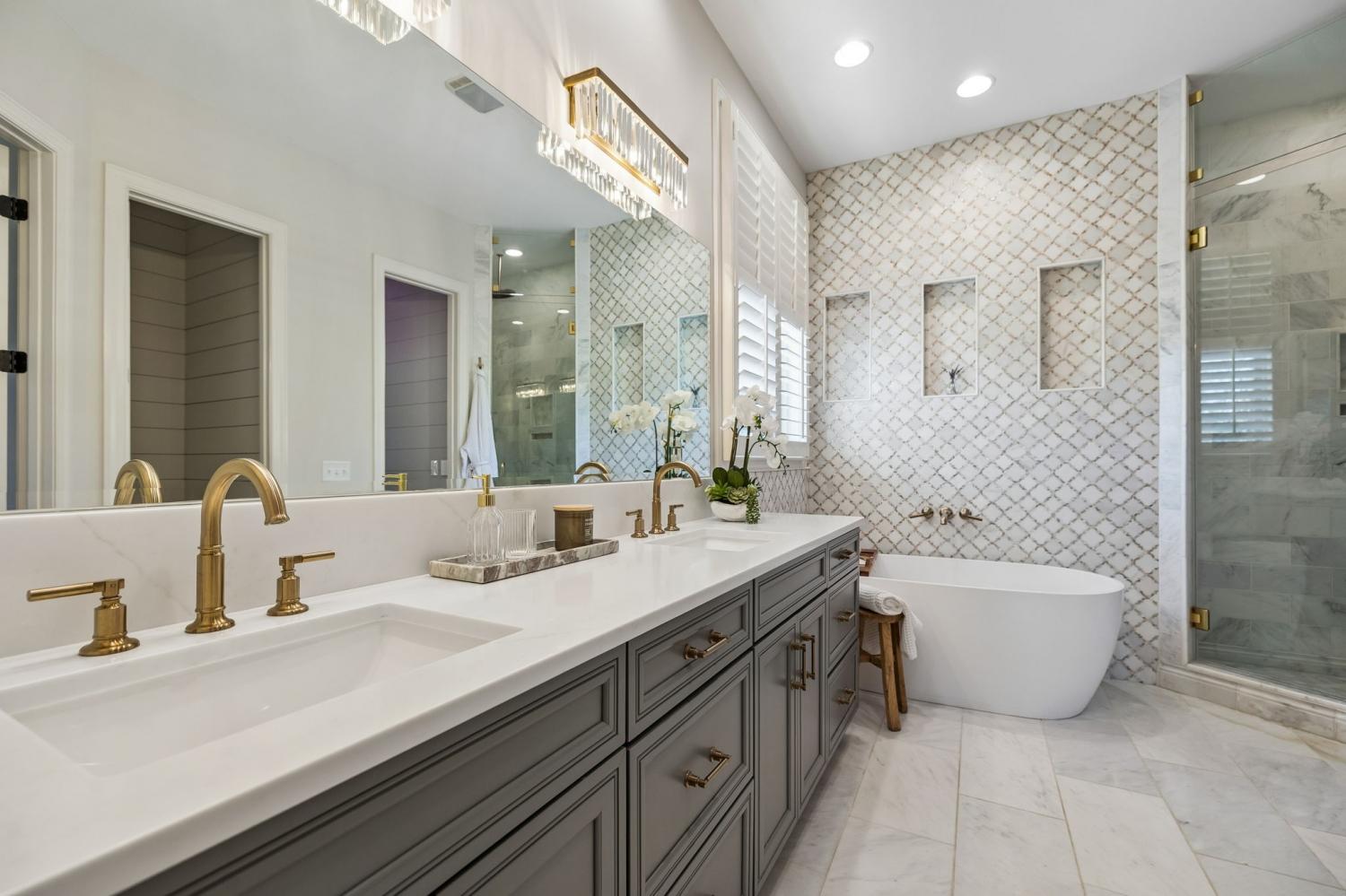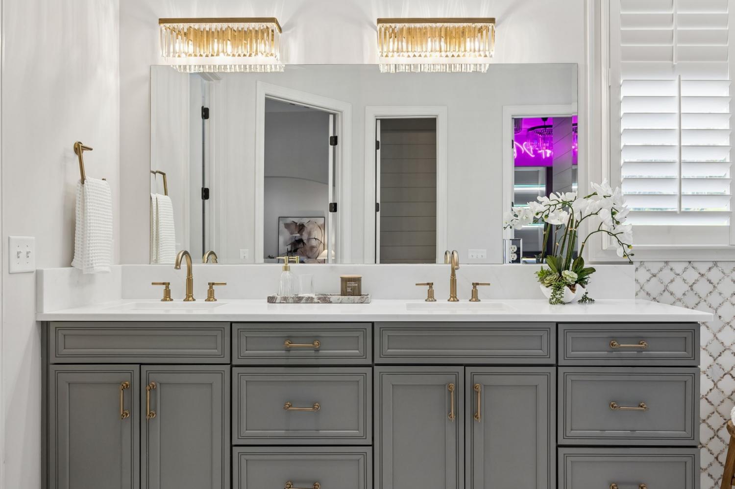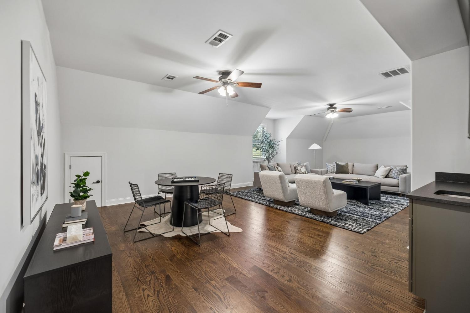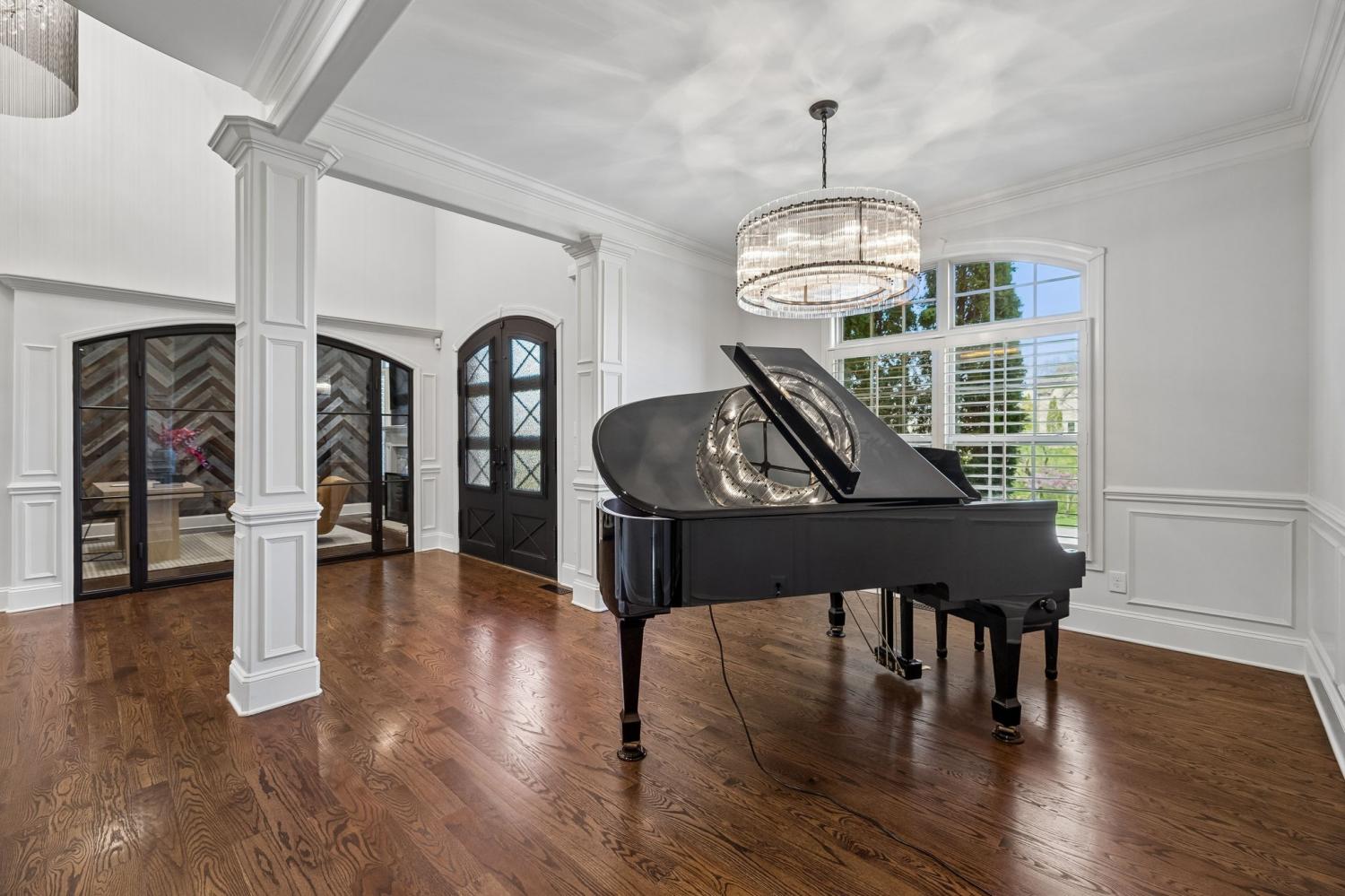 Stunning estate on a private 1-acre lot in the highly sought-after Black Hawk community, where luxury living meets incredible indoor-outdoor entertaining. The gated property offers a truly exceptional backyard oasis featuring a fenced yard, in-ground pool and spa with sun shelf, and gas fire features, along with a covered patio and fully equipped outdoor kitchen. Designed for year-round enjoyment, the outdoor living space includes retractable screens, a gas fireplace, pizza oven, TEC built-in gas grill, Fire Magic hibachi cooktop, honed granite countertops, beverage cooler, ice maker, prep sink, outdoor speaker system, and performance basketball hoop. Inside, the home impresses from the moment you enter the 19’ grand foyer with a striking chandelier. Hardwood floors flow throughout the main level, which features a private study with French doors, tray ceiling, gas fireplace, and herringbone wood accent wall. The open-concept living area offers abundant built-ins and a ventless gas fireplace with stone surround, along with remote-controlled motorized curtains, and flows seamlessly into the breakfast area and chef’s kitchen. The kitchen is beautifully appointed with Wolf double ovens, Wolf 4-burner gas cooktop with griddle, pot filler, and a Sub-Zero refrigerator, plus a convenient wet bar positioned between the kitchen and formal dining room for effortless entertaining. The main-level primary suite offers soaring 14’ ceilings, a cozy seating nook, and French doors leading to the spa-like bath, featuring double vanities, statement tile accents, and dual walk-in closets with custom lighting. A stylish laundry room with shiplap accent wall, utility sink, and cabinetry completes the main level. Upstairs, you’ll find 3 additional bedrooms, including two connected by a Jack-and-Jill bath with private vanities and one with its own ensuite. A spacious rec room with wet bar, beverage cooler and honed granite countertops provides the perfect space for relaxing or entertaining.