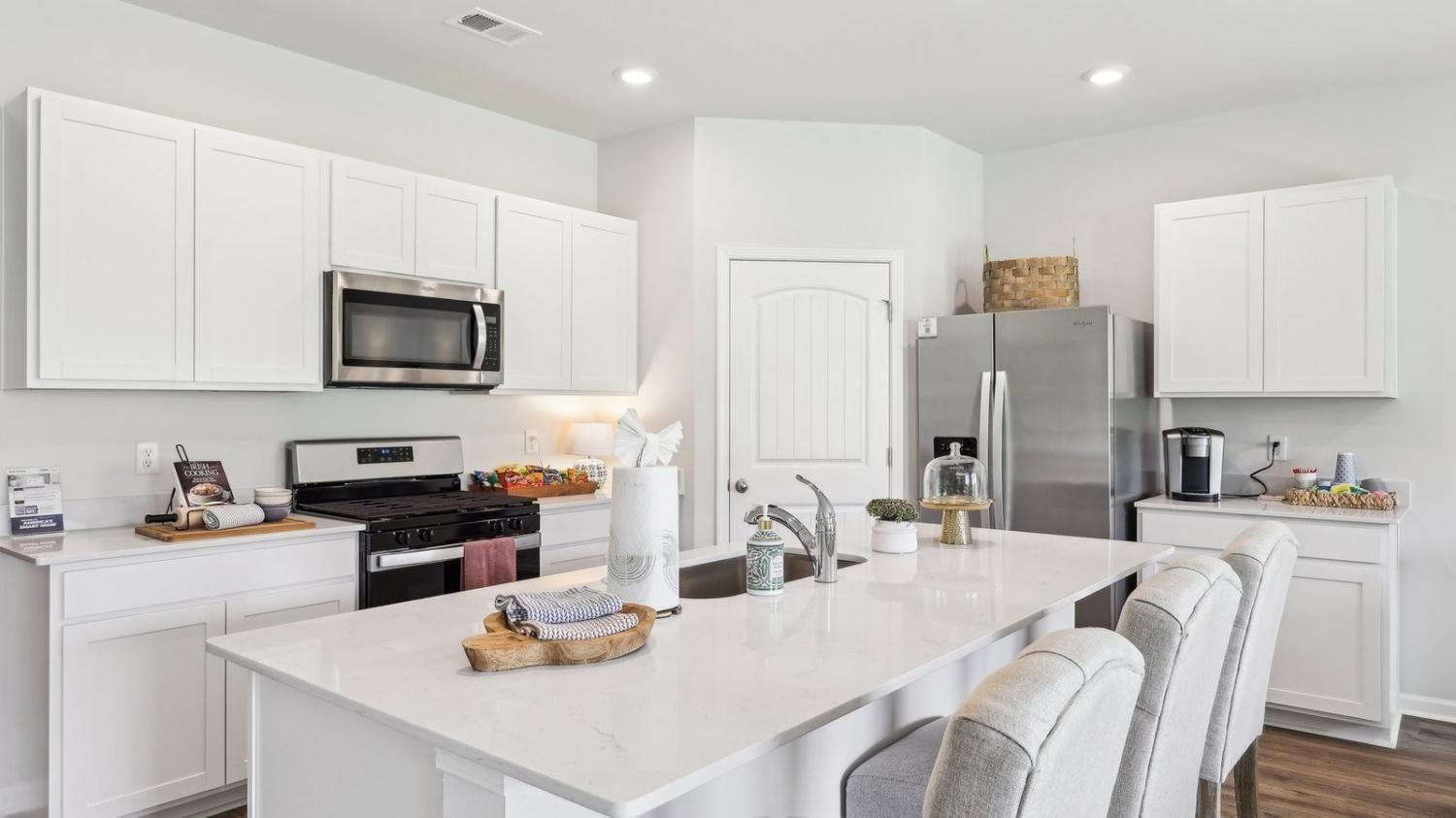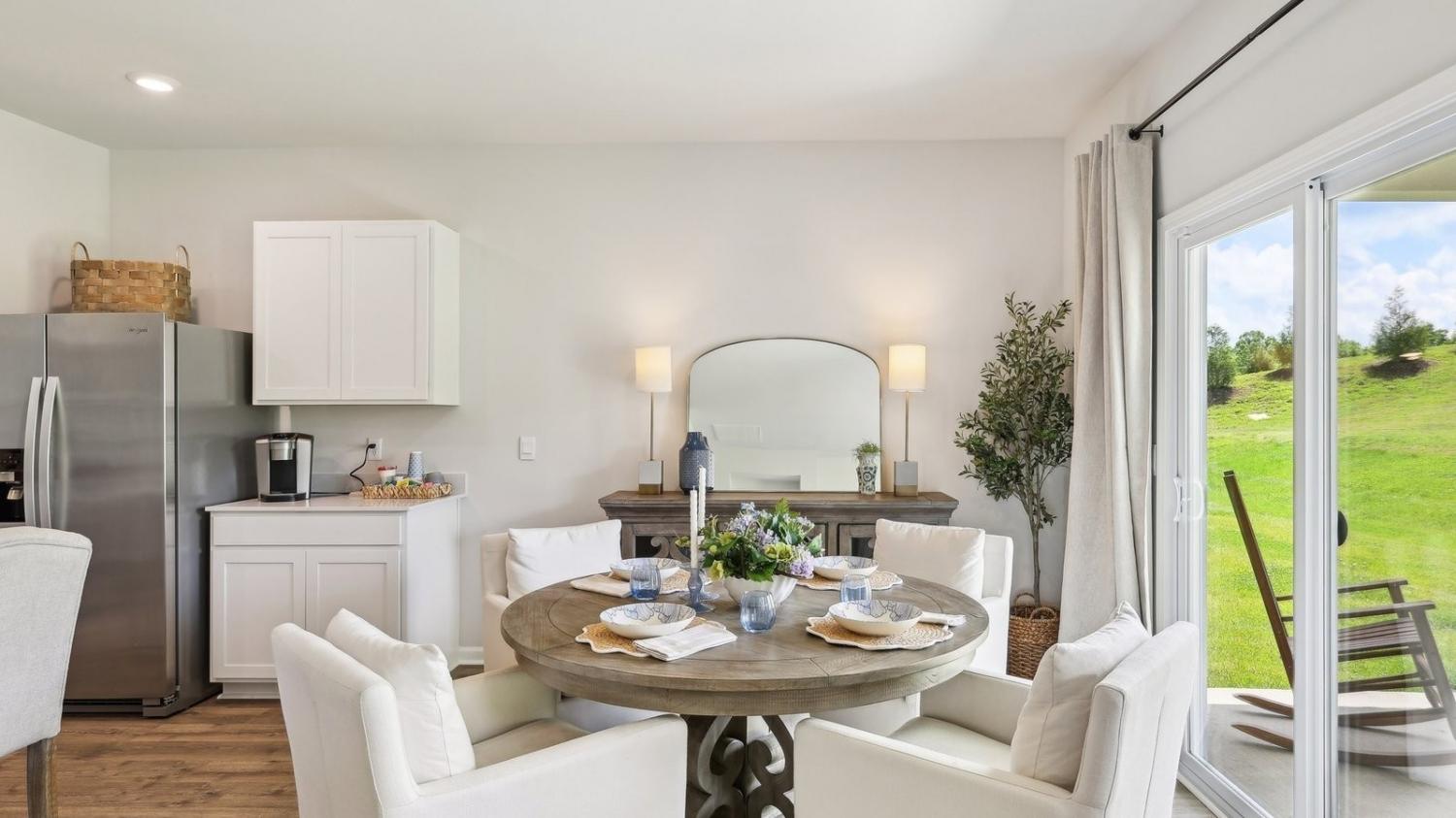 Cali plan- 4 bedrooms, 2 full ba. Ranch home. Open-concept, 9’ ceilings, quartz countertops in the kitchen and bathrooms, and Whirlpool stainless steel appliances. The kitchen features a large island, walk-in pantry, and ample cabinet space. The dining and living rooms flow seamlessly to a covered porch, ideal for relaxing or entertaining. The private primary suite fits a king bed and includes a double vanity, large walk-in closet, and linen closet. A laundry room and extra storage closet sit off the front hallway near the garage. Smart home features let you control lights, temperature, and more from your device whether home or away. No pricey upgrades, everything is inlcuded!!! No more stairs, all one level! Woodbridge Glen is a quiet beauty with rolling hills and lots of green space. Conveniently located 1 mi from I-40, halfway between both Mt. Juliet and Lebanon. The neighborhood features a beautiful pool, 2 spacious dog parks, playground, and a trail to the natural duck pond and pavilion. Amazing interest rates and incentives! Call today to schedule your visit!