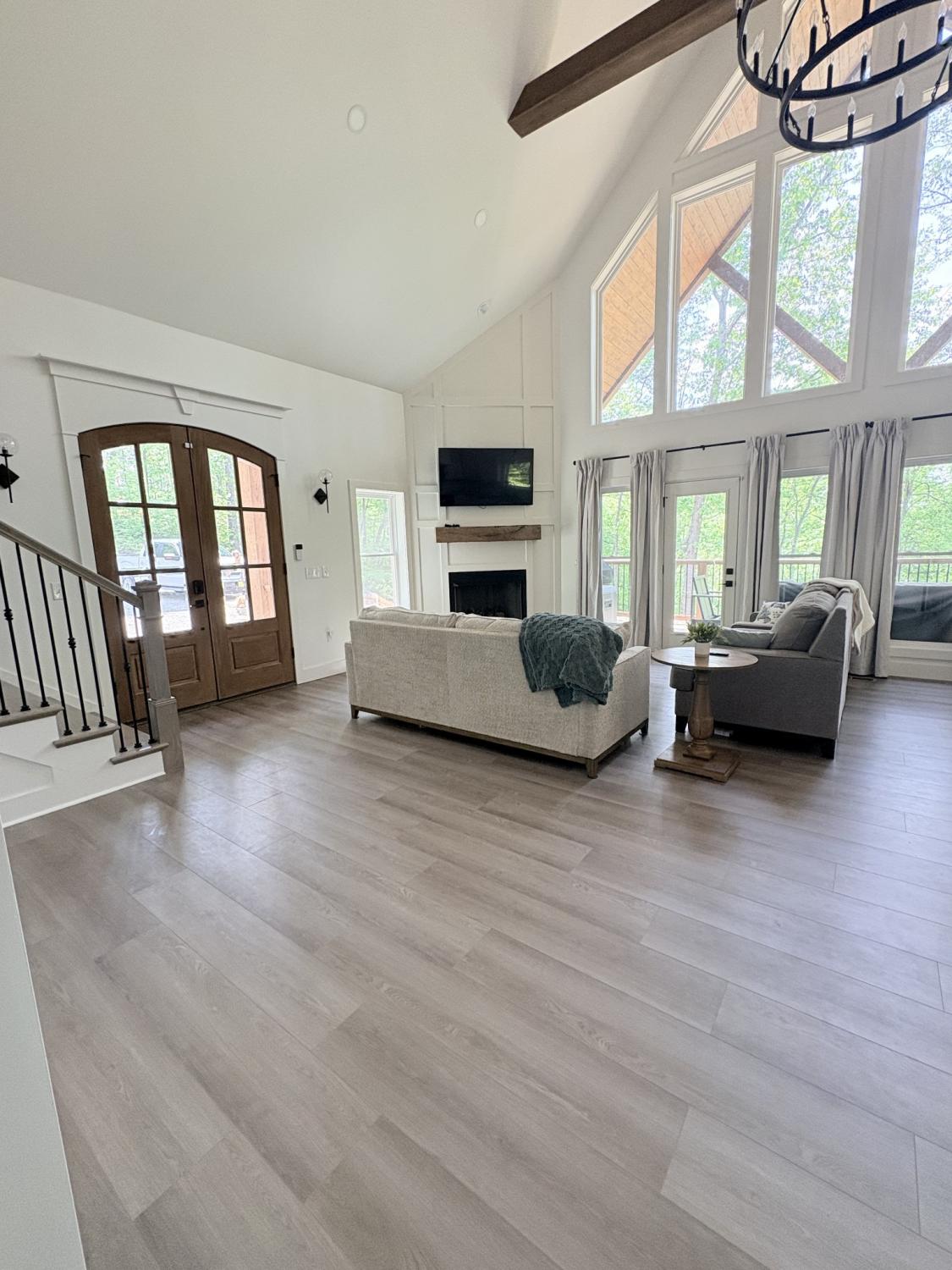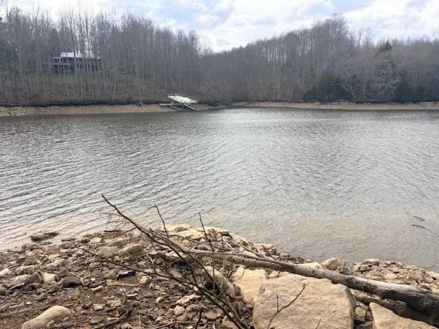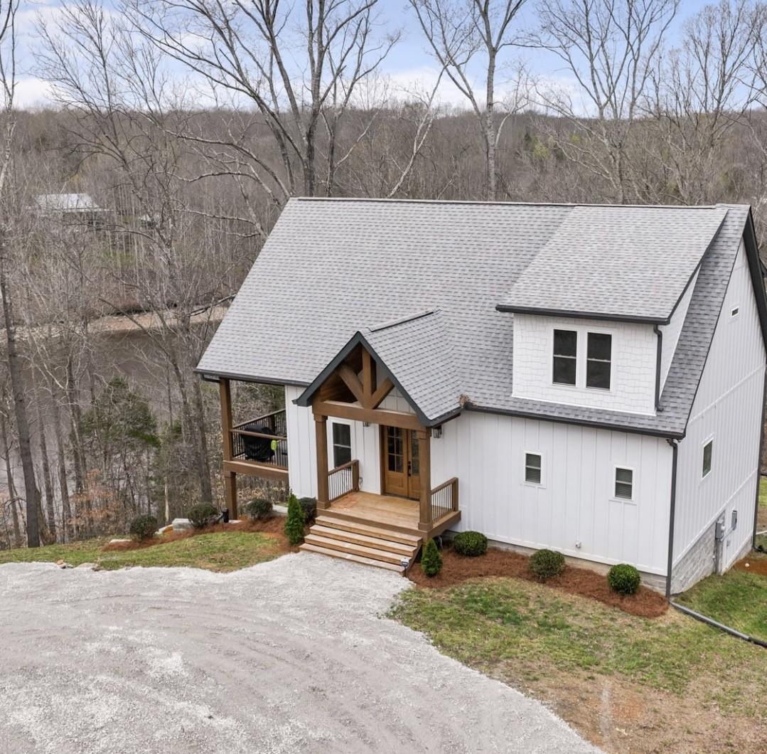 Private wooded retreat featuring 3 bedrooms and 2- 1/2 baths on 5.3 acres overlooking Tims Ford Lake in Little Hurricane Creek. This home is a rare find nestled into a wooded hillside with an abundance of privacy, walking trails on the property, lakefront, and walkable access to the water. Panoramic views are enjoyable from both upper covered porch and lower covered patio which opens to the walk out basement. The public Tims Ford State Park boat ramp is just around the corner. There is 300 feet of shoreline accessible from the private walking trails on the property. The partially finished basement currently contains the fully reinforced walk in storm shelter and all of the mechanical aspects of the home. This basement has a full staircase from main level for easy access and fully plumbed for future expansion with a contractor quote (1000 sf) in hand for finishing in the amount of 60k should you wish to complete. There is ample space to add a garage and also a boat/RV shed at the front area of this property. A true rare find with acreage and these views . No dock .