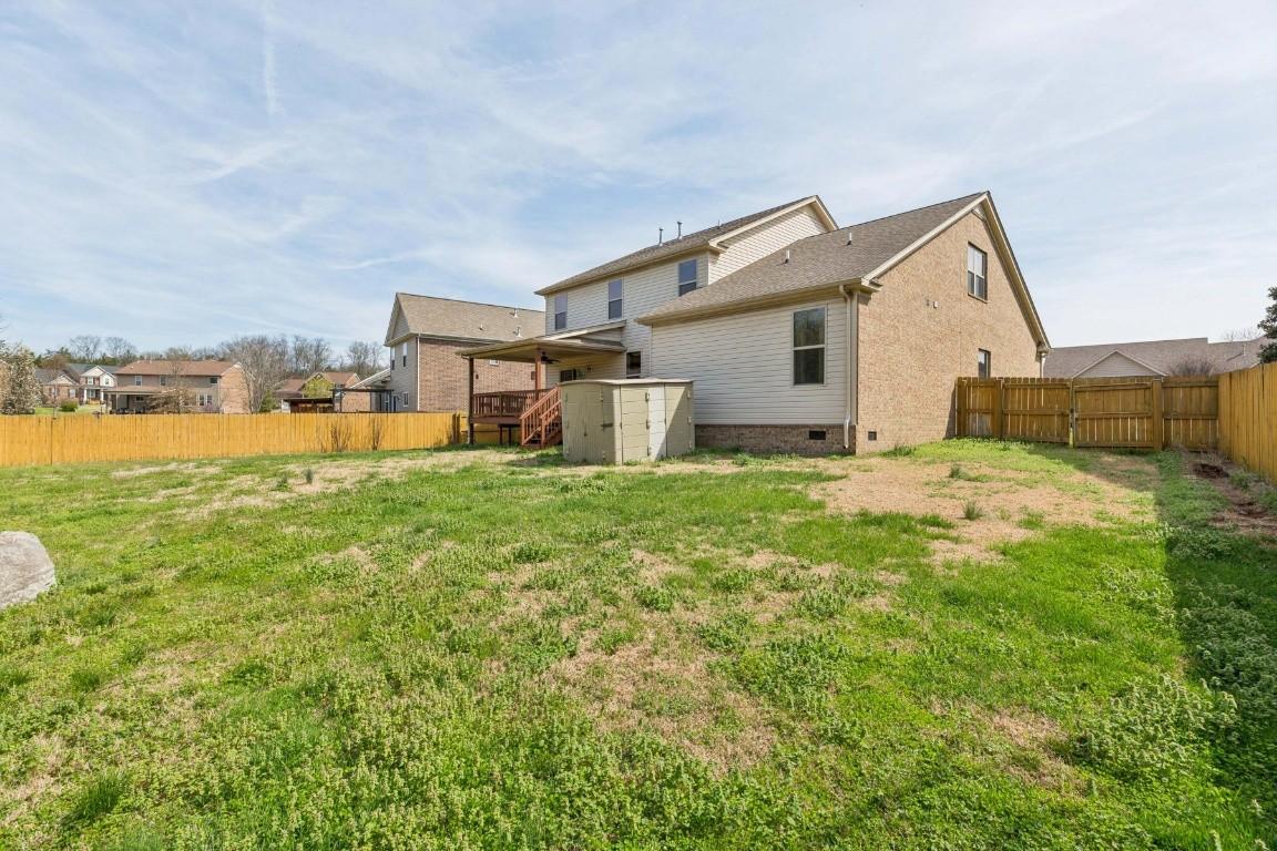 Welcome home to this spacious 4-bedroom, 2.5-bath property tucked into the rolling hills of Mount Juliet! With room for everyone and everything, this home offers incredible flexibility with multiple living spaces including a den, bonus room, dining room, office, and an eat-in kitchen designed for everyday living and entertaining. The kitchen opens comfortably to the den, creating a welcoming gathering space where family and friends can easily connect. Step outside to a large deck that is partially covered—perfect for grilling, relaxing, or enjoying quiet evenings outdoors. The covered front porch is just waiting for a couple of rocking chairs and some front-porch coffee time! Inside you’ll also find a huge storage room, giving you plenty of space to keep things organized. The large fenced yard offers room to play, garden, or simply enjoy the outdoors. Sprinkler Systems also. Major updates add peace of mind with a roof less than five years old and an upstairs HVAC system that is only a few years old. Located in a wonderful neighborhood just minutes from dining, shopping, and entertainment, this home offers the perfect balance of convenience and peaceful living in beautiful Mount Juliet. Termite contract currently in place. Shed stays with property. However, TV mounting system is not included.