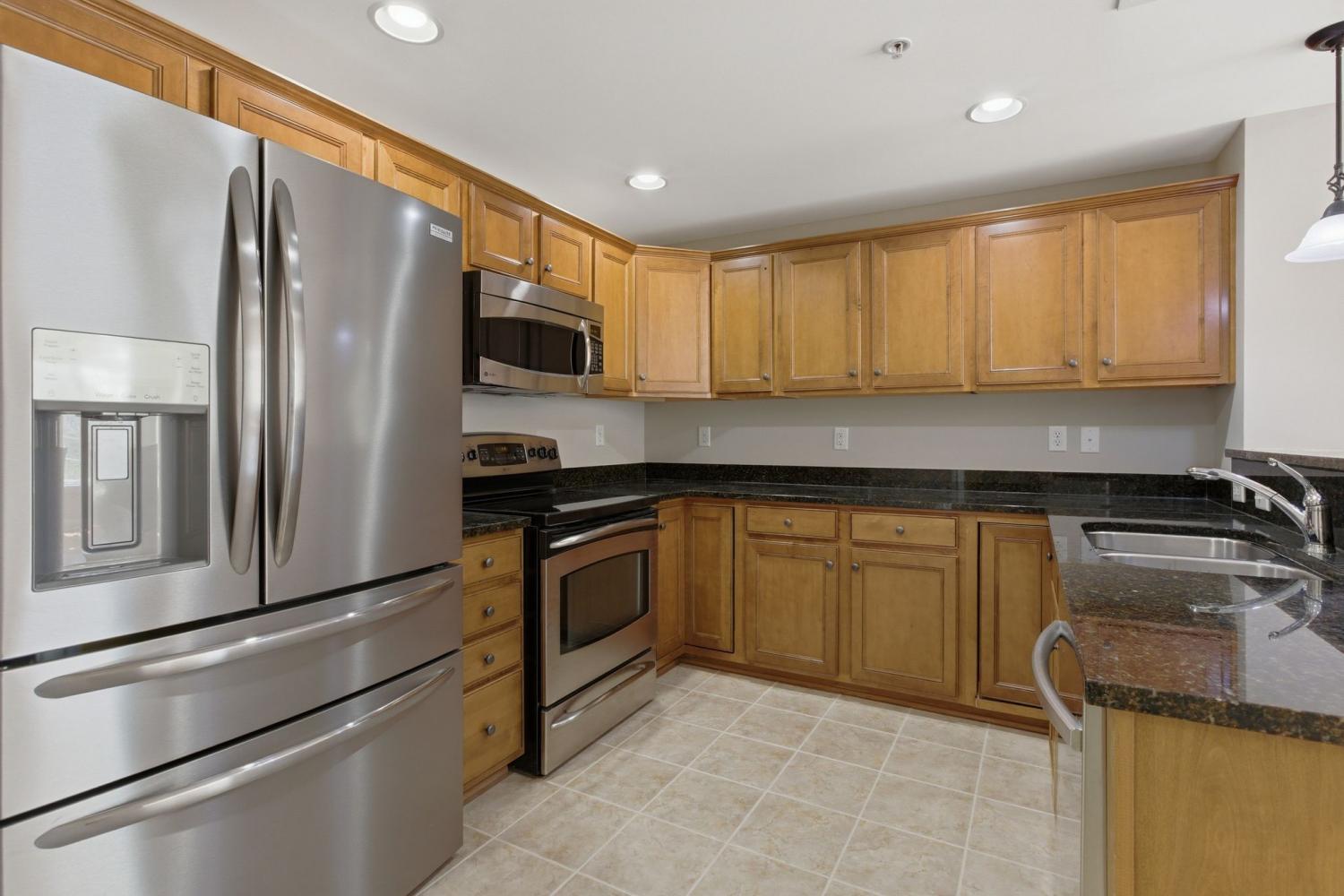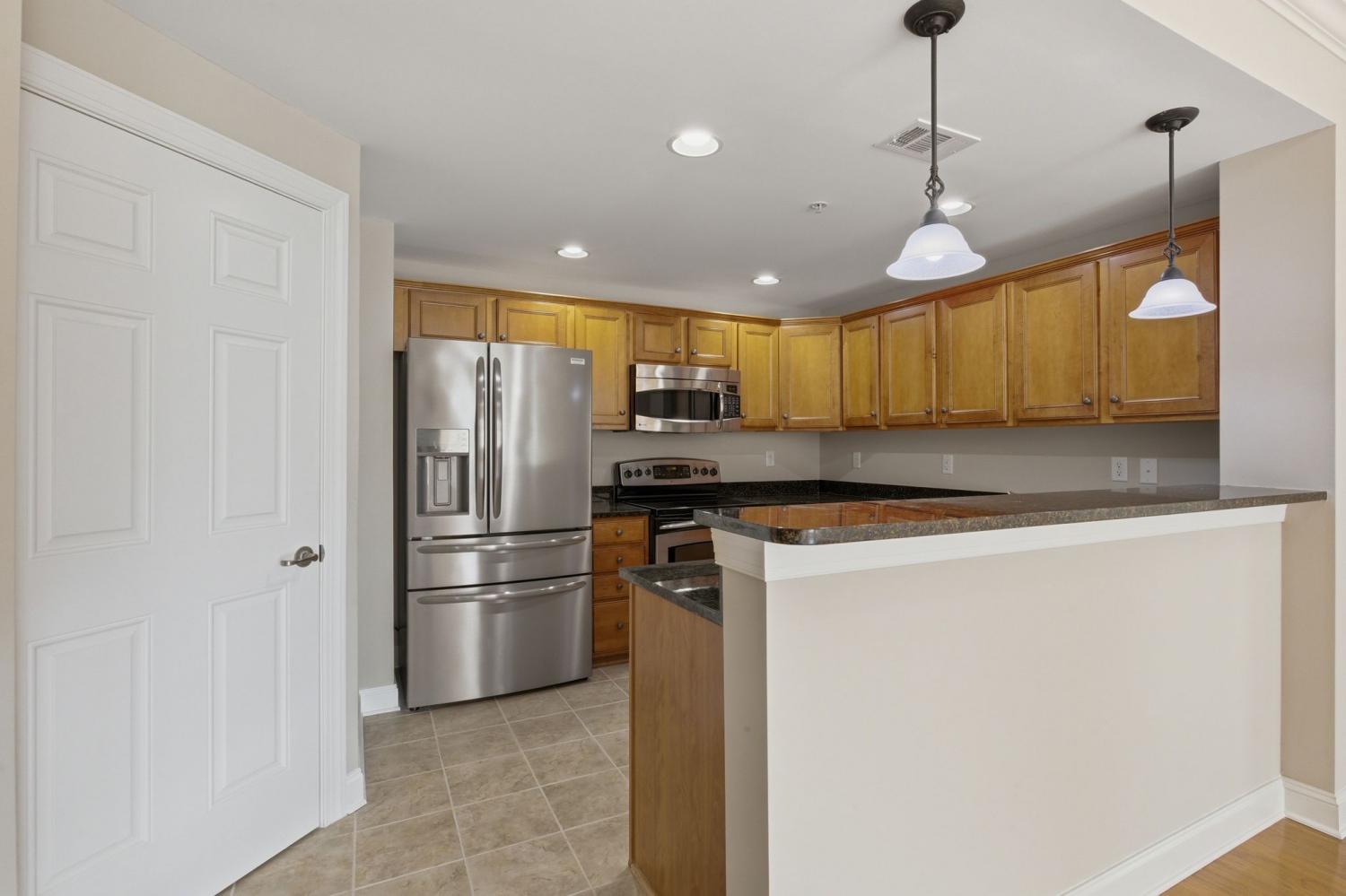 Rare end-unit condo at Parkside in the heart of Cool Springs. You will love the view from this end unit on the second floor offering one of the best views in the complex overlooking the Aspen Grove trails and greenway. This unit comes with a garage plus two large storage units and elevator access.. The home features fresh interior paint, hardwood floors throughout the living areas, and tile floors in the kitchen, laundry room, and both baths that have been professionally cleaned and sealed with epoxy color on the grout. Several appliances have been replaced within the last three years. Please refer to the Improvements and Maintenance document. The condo has never had pets and is in move-in-ready, like-new condition.