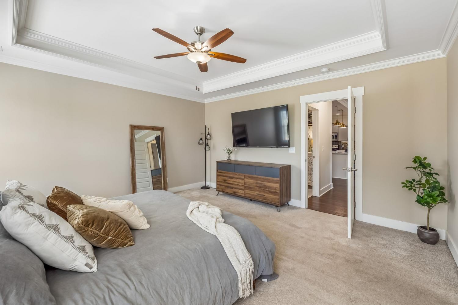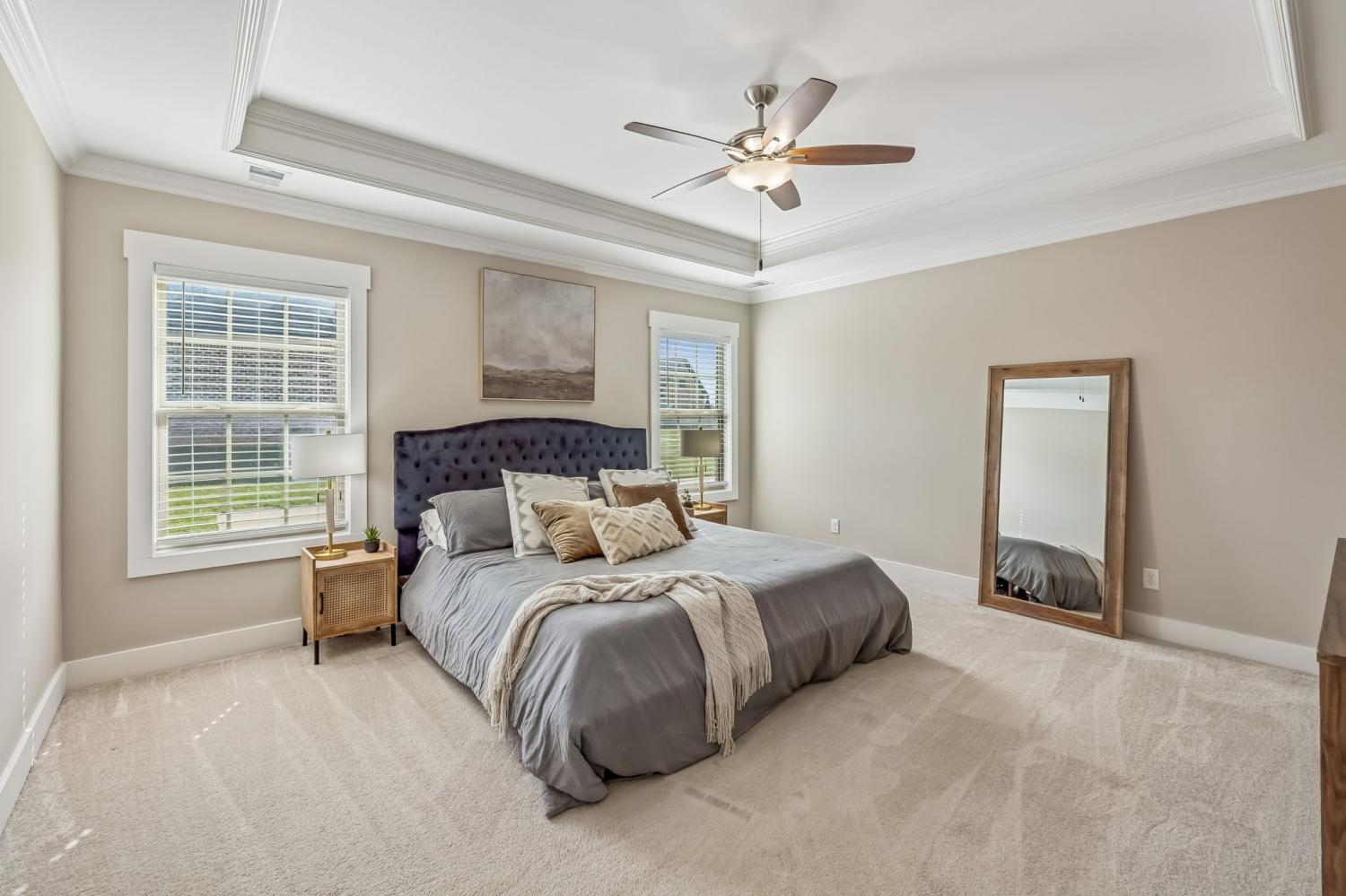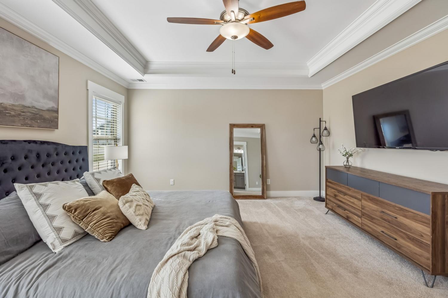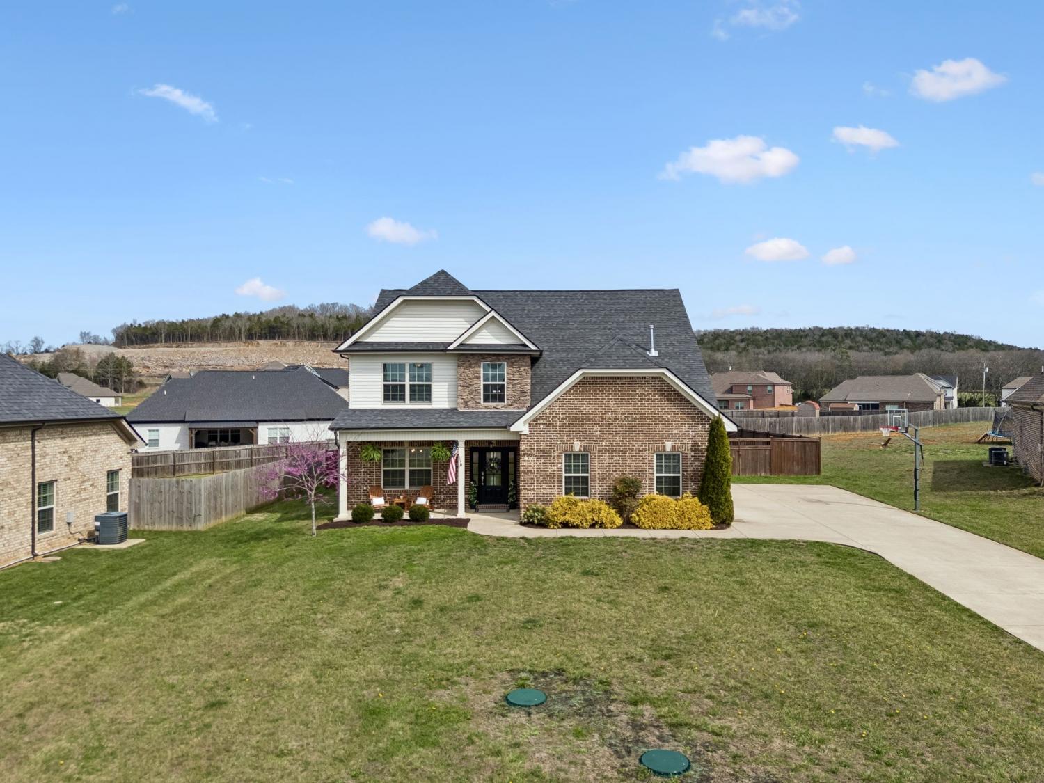 This home qualifies for 100% financing, offering a great opportunity for eligible buyers. Situated on a generous half-acre lot in the quiet cul-de-sac of Chestnut Valley, this immaculate home blends comfort, style, and functionality. The thoughtfully designed floor plan features a main-level owner’s suite complete with a walk-in shower, dual vanities, and a spacious walk-in closet. Upstairs you’ll find three additional bedrooms, a large loft area, and a walk-in attic providing excellent storage. The backyard is ideal for relaxing or entertaining with a covered porch and a dedicated fire pit area. Recent updates include upgraded lighting throughout, a tile kitchen backsplash, and stylish wall accents that make the home truly move-in ready.