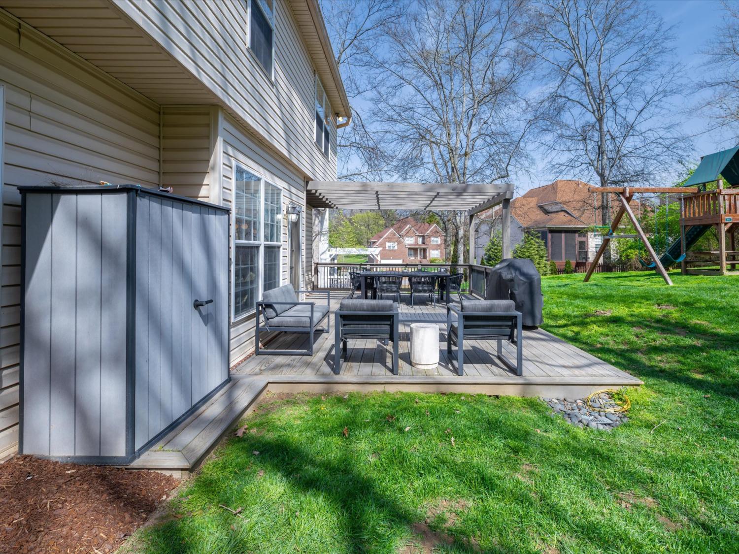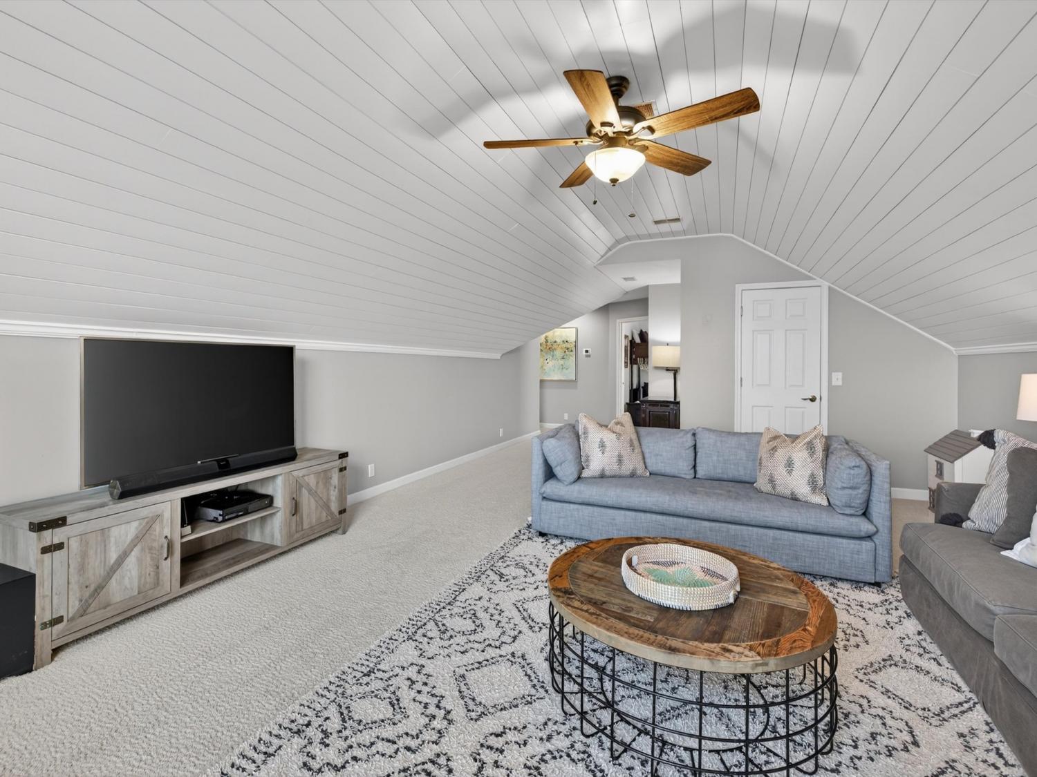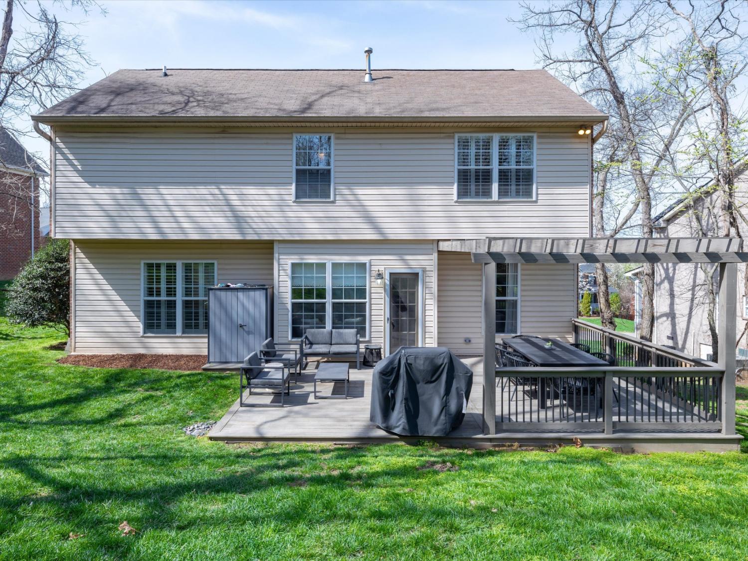 Welcome to your Brentwood dream home in Courtside at Southern Woods! This charming residence blends classic style with modern accents in all the right places. The open living room showcases a soaring ceiling and a board-and-batten fireplace surround complemented by custom built-in cabinetry. The main level also features a formal dining room, a kitchen with breakfast nook, and a spacious primary bedroom. Upstairs, you'll find a versatile loft with endless possibilities, along with two bedrooms connected by a Jack-and-Jill bath. The oversized bonus room is a must-see, featuring a shiplap ceiling, walk-in closet, and plenty of space for relaxing or gathering. Step outside to the spacious back deck with pergola overlooking the backyard—an ideal setting for outdoor entertaining or peaceful evenings at home. For swimming, playing and tennis be sure to check out your community amenities at 1610 South Timber Drive!