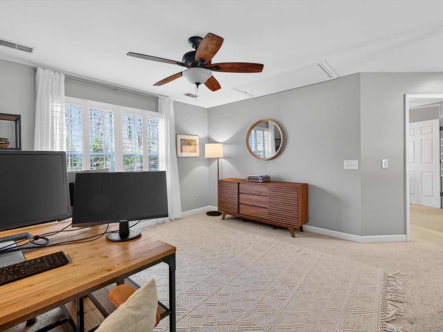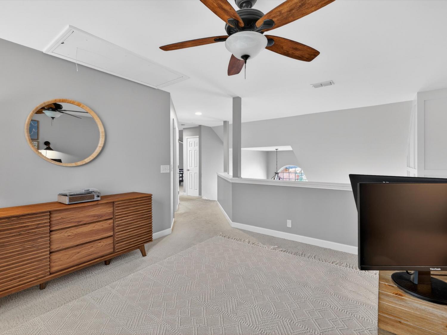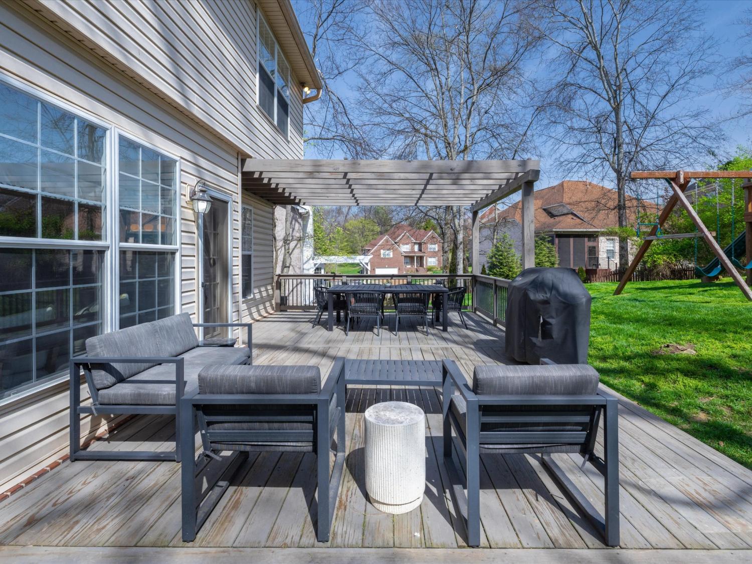 Welcome to your Brentwood dream home in Courtside at Southern Woods! This charming residence blends classic style with modern accents in all the right places. The open living room showcases a soaring ceiling and a board-and-batten fireplace surround complemented by custom built-in cabinetry. The main level also features a formal dining room, a kitchen with breakfast nook, and a spacious primary bedroom. Upstairs, you'll find a versatile loft with endless possibilities, along with two bedrooms connected by a Jack-and-Jill bath. The oversized bonus room is a must-see, featuring a shiplap ceiling, walk-in closet, and plenty of space for relaxing or gathering. Step outside to the spacious back deck with pergola overlooking the backyard—an ideal setting for outdoor entertaining or peaceful evenings at home. For swimming, playing and tennis be sure to check out your community amenities at 1610 South Timber Drive!