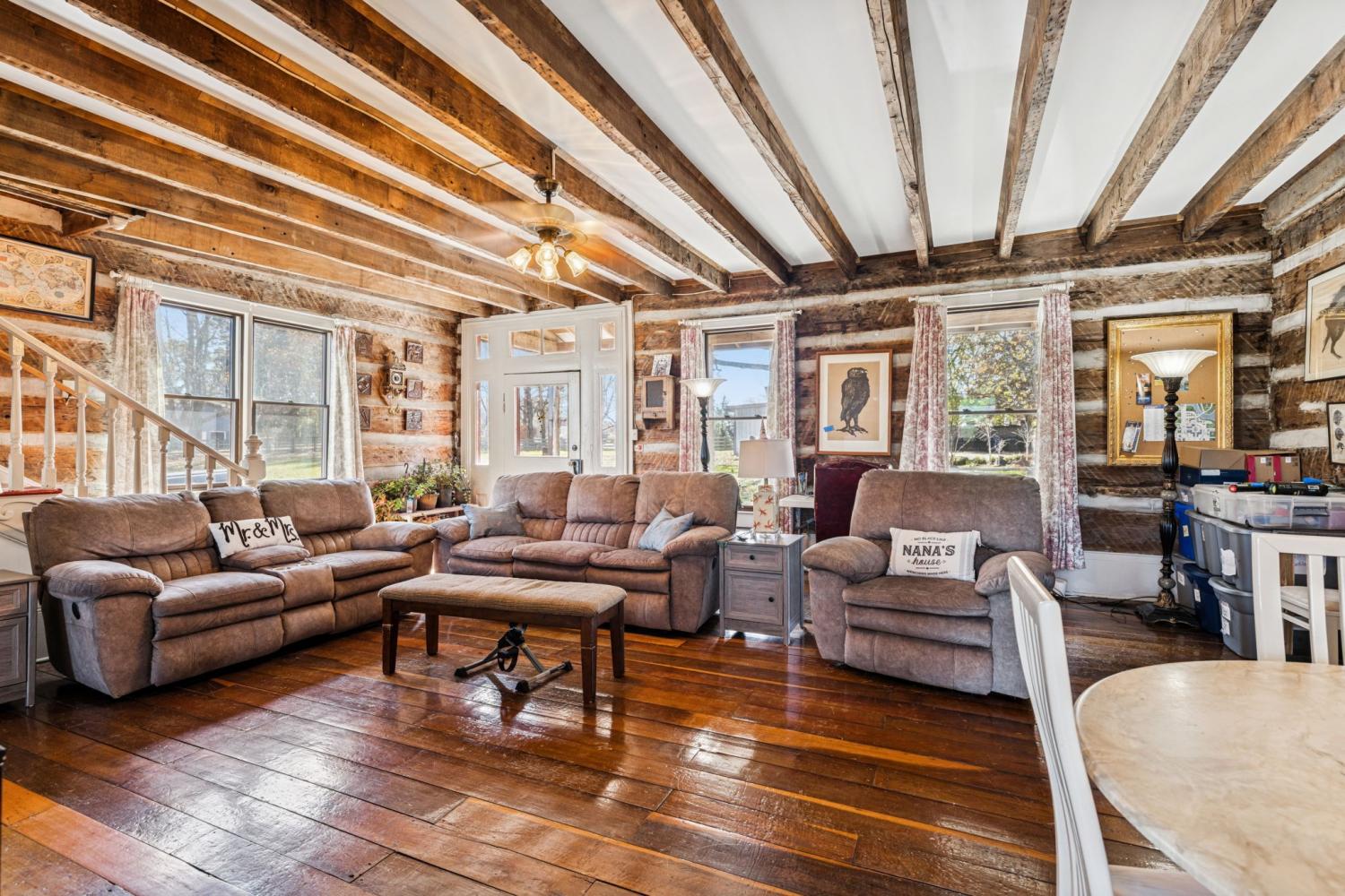 Historic "The Kennedy Place" built 1840 • Single-story estate on 34 acres • Video tour available • 10 min to Historic Downtown Columbia Square. Set in Maury County, the Antebellum Homes Capital of Tennessee, The Kennedy Place is a rare single-story estate offering 4,924 sq ft of living space (5,118 sq ft with screened porch) on 34 private acres. Originally constructed in 1840 and thoughtfully restored, the main house features 4 bedrooms, 3 full baths, and 2 half baths, anchored by a chef's kitchen with Subzero refrigerator, GE Monogram double oven, DSC cooktop, Fisher and Paykel dishwasher, Scotsman nugget ice maker, and GE wine fridge. Original red heart pine floors refinished throughout. Custom library addition. Formal and informal living spaces with screened porch overlooking estate grounds. The property includes a two-story log cabin guest house with 2 bedrooms and 2 full baths, a restored smokehouse rebuilt as a detached office, a game barn with full kitchen and bath, a classic animal barn, a tennis court, a pond, fenced pastures, and two gated entrances with a separate farm drive. Whole-house generator. New electric gate motors. Enclosed garage. Since 2021, approximately $500,000 invested in restorations and upgrades: refinished floors, rebuilt front porch, industrial gutters, exterior and interior paint, guest cabin restoration, and game barn refurbishment. An additional 16 acres were acquired in 2022, bringing the estate to its current 34-acre boundary. Open green space and fenced pastures suited to equestrian use or hobby farming. Nearby: Maury County Park (approx. 2 mi), Chickasaw Trace Park trails (approx. 3 mi), Buckhead Coffeehouse (approx. 2.5 mi), Historic Downtown Columbia Square (approx. 4 mi), Muletown Coffee Roasters (approx. 4 mi). Approx. 45 mi to Nashville.