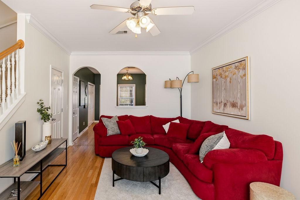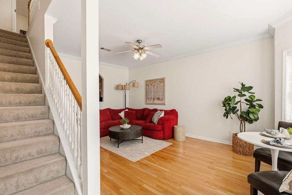 Step into a spacious townhome blending classic brownstone charm with a serene, green backdrop. Tucked into a quiet, tree-lined setting, this home gives you that peaceful, tucked-away vibe while being only a five minute drive to the new June Lake exit off I-65 as well as all the shopping and restaurants planned in this development. Inside, the high ceilings, including a cathedral ceiling in the primary suite, create an airy feel. The kitchen flows into the living area with natural definition, maintaining that open-yet-cozy layout. Generous closets mean plenty of storage. The front of the home greets you with morning sun, and your newly finished private deck is your personal retreat for morning coffee or evening sunsets. Step outside to beautifully maintained grounds with lush landscaping. Recreational centers with pools, tennis, and fitness facilities are just a short trip away—perfect for balancing that peaceful retreat with a vibrant, convenient lifestyle.