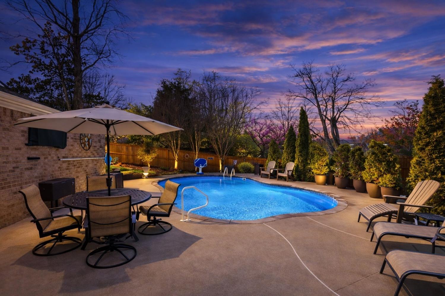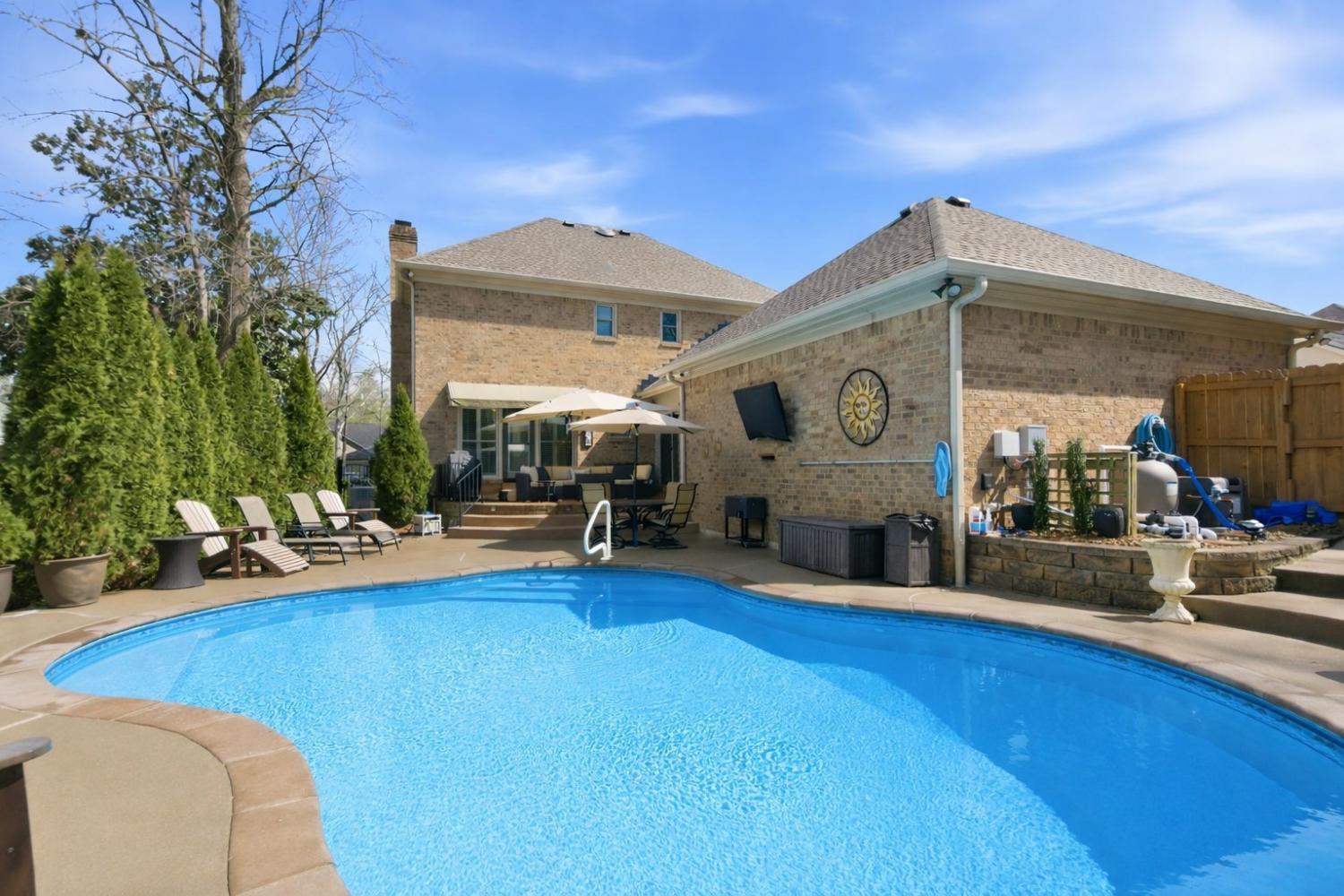 Welcome to 310 Watercress Dr, a true gem located in the highly sought-after Charlton Green community, just minutes from the charm and energy of Downtown Franklin. Enjoy easy access to some of the area’s finest dining, shopping, and entertainment, while still being a short drive from the vibrant culture of Nashville. This beautifully maintained home showcases pride of ownership with thoughtful updates throughout. Recent improvements include newer flooring, updated windows, paint, a newer hot water heater, and a stunning kitchen featuring Cambria countertops and stainless steel appliances—perfect for both everyday living and entertaining. Step outside to your private outdoor retreat, where a saltwater inground pool creates the perfect space for relaxing or hosting gatherings. The pool features a variable-speed motor pump for energy efficiency, combining luxury with smart design. Additional highlights include a cozy gas fireplace, a bright sunroom filled with natural light, two-car garage, and a Rain Bird irrigation system to keep the landscaping lush and beautiful. With its prime location, tasteful updates, and exceptional outdoor living space, this home offers the perfect blend of comfort, elegance, and convenience. A rare opportunity in one of Franklin’s most desirable neighborhoods.