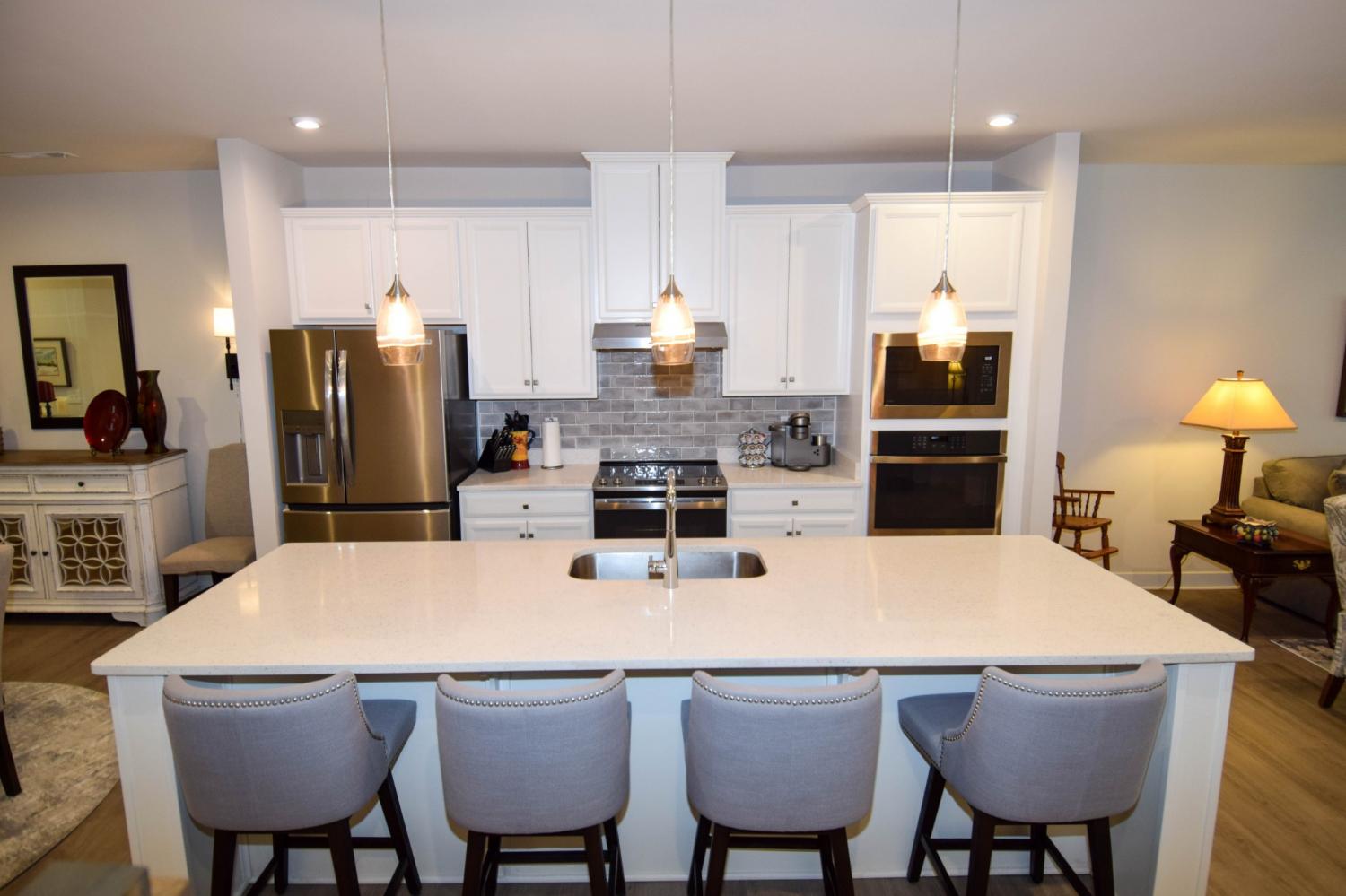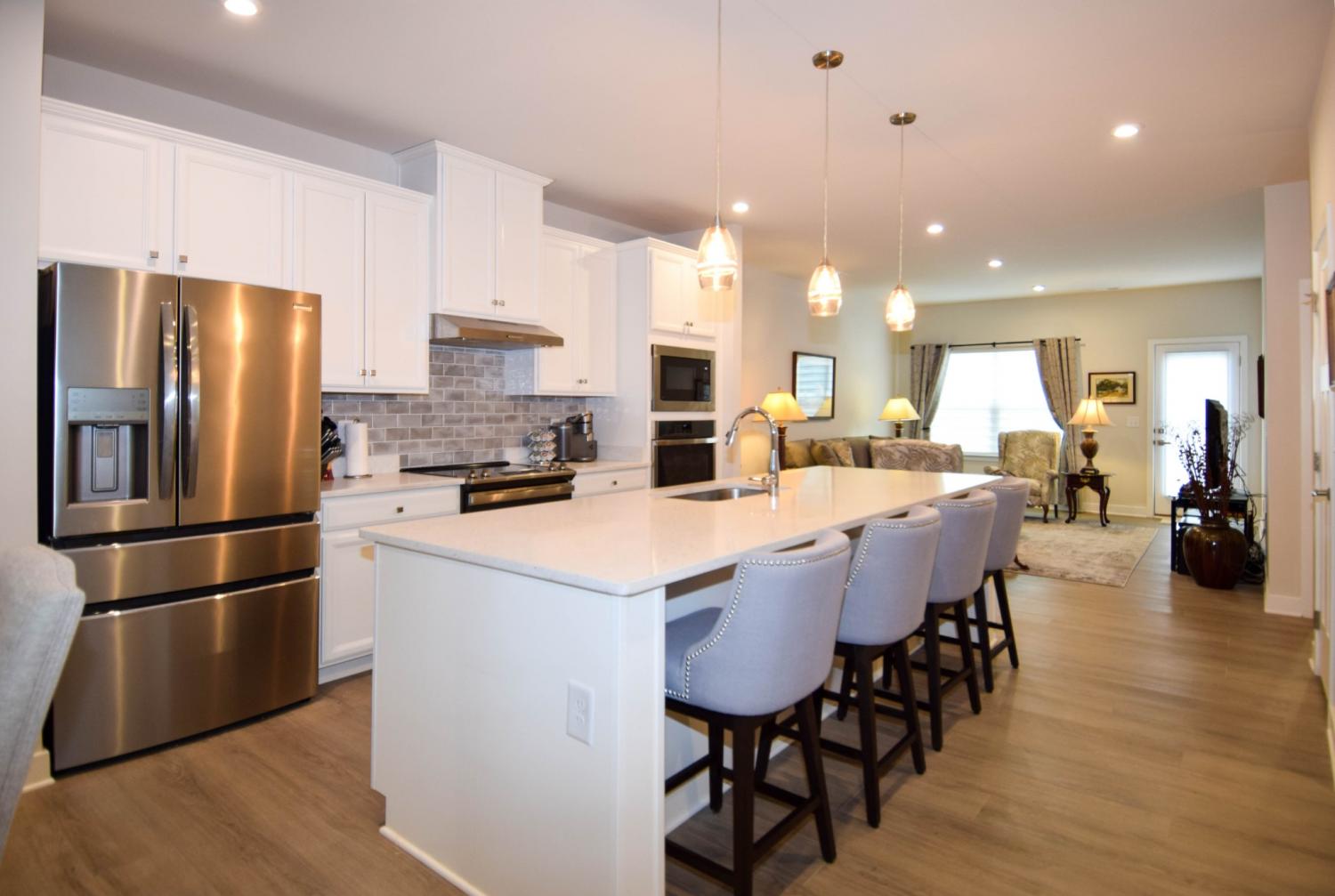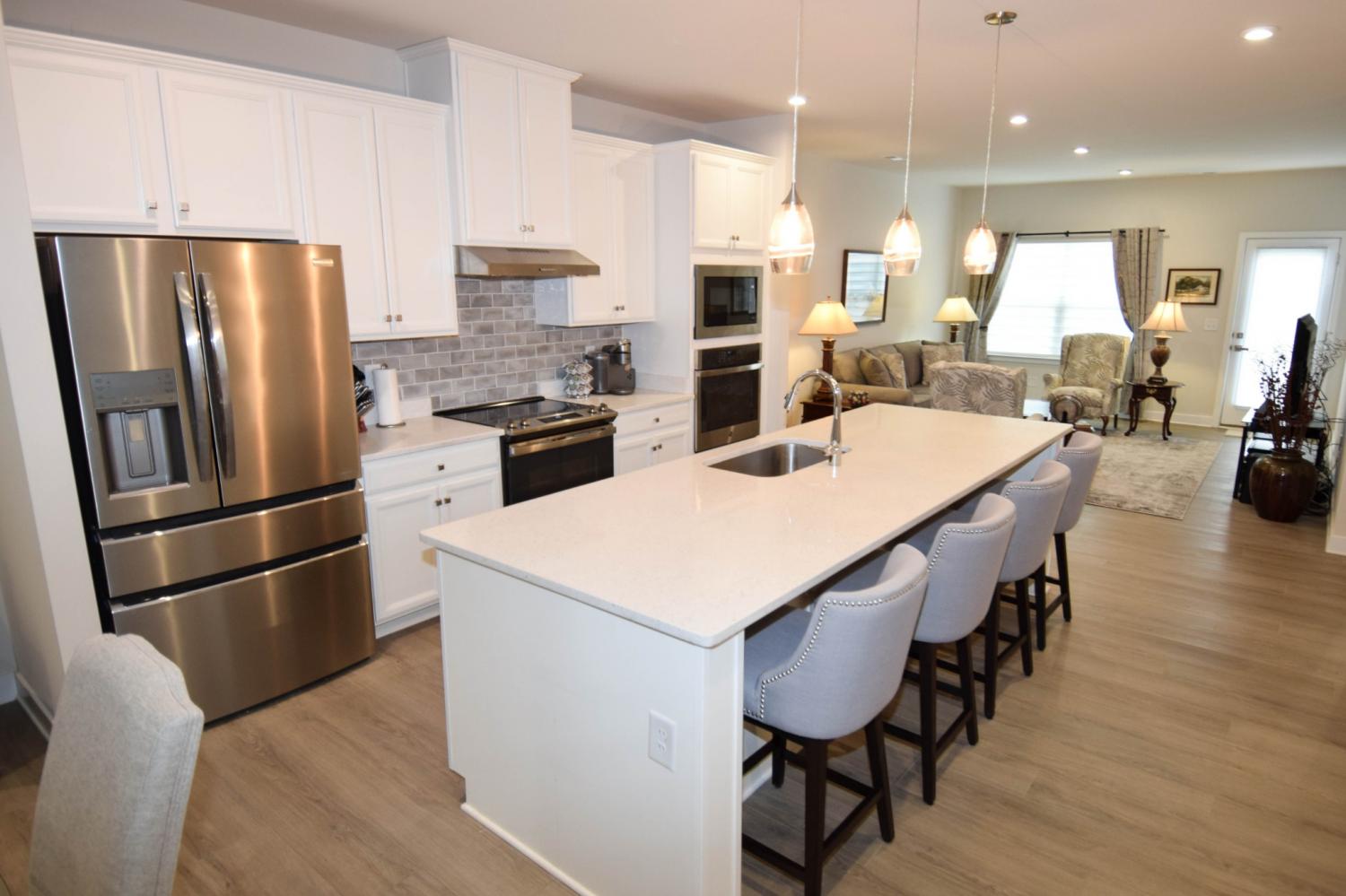 Same as brand new! Exceptionally beautiful and meticulously-kept interior. Spacious open concept plan, upgraded interior design package, 3 bedrooms, 2.5 baths. Amazing kitchen with stainless appliances, large eat-up island, wonderful ceramic tile backsplash, two ovens! Separate sleeping system, private owner's suite with double vanity, and walk-in tile shower. Upstairs office with custom sliding door to additional storage space. Wine nook with beverage and wine fridge. Rear patio for outdoor entertaining. Come to the Windsong Community near shopping, dining, and more!! A must see!!