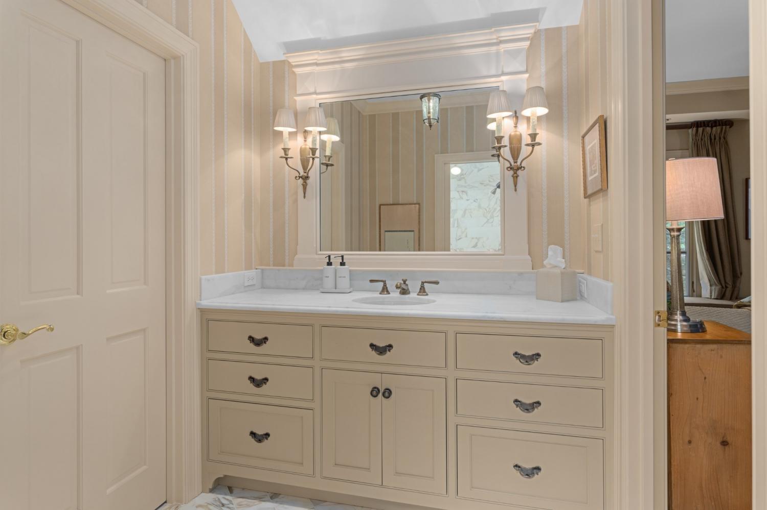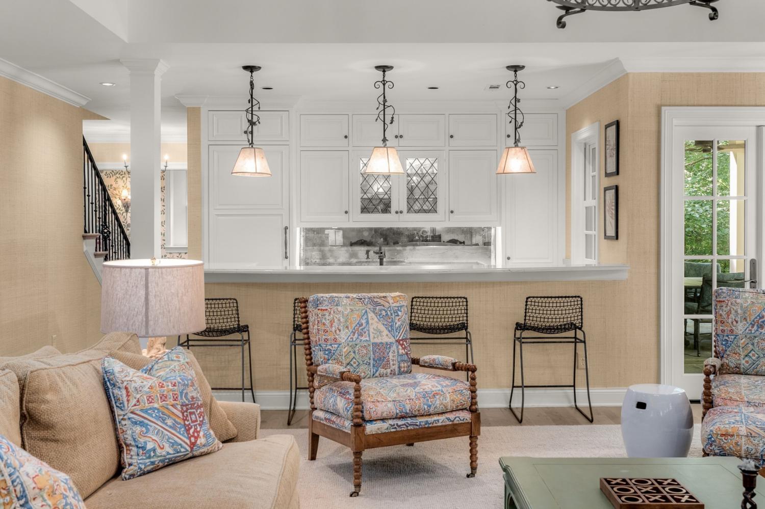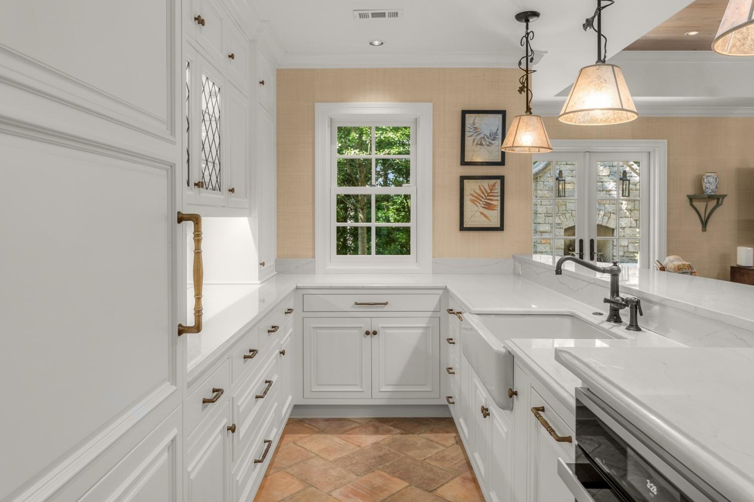 Tucked away in the peaceful, gated community of Otter Wood, this traditional stone and stucco home offers an ideal floor plan and beautifully designed outdoor living. High-end finishes, designer wall coverings, and top-tier appliances are featured throughout. The spacious garage fits up to 5 cars (2 tandem) with plenty of additional storage. The spacious lower level includes a full kitchen, expansive rec. room, and French doors that open to a limestone patio with a stunning stacked-stone wood-burning fireplace—perfect as a guest, in-law, or nanny suite, adding a 5th bedroom to the home. Surrounded by trees, the house feels incredibly private. Located in Forest Hills, Otter Wood offers unbeatable value between Green Hills and Brentwood.