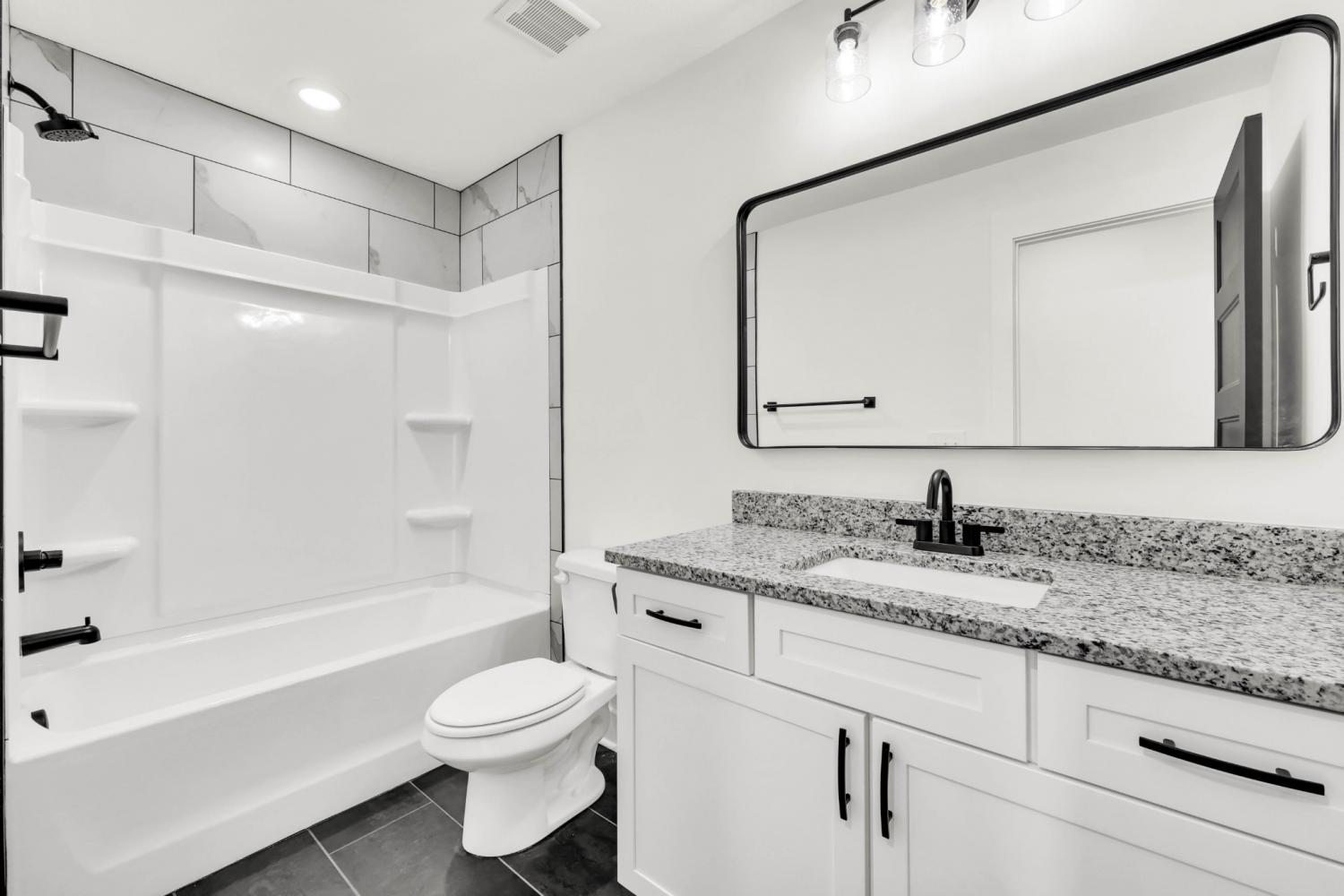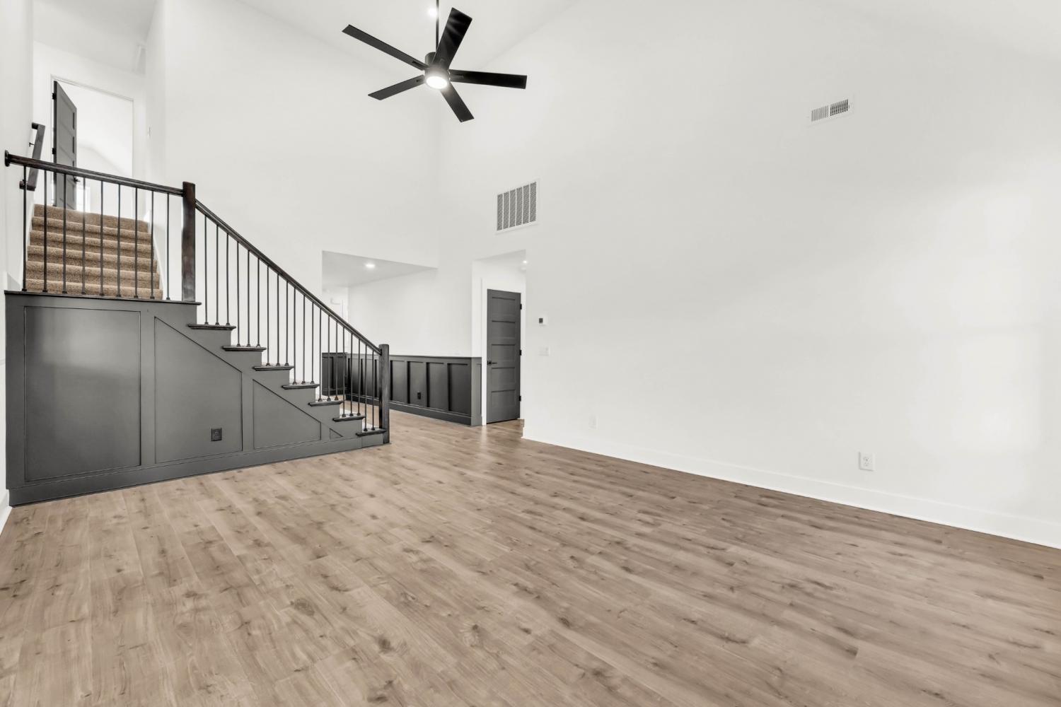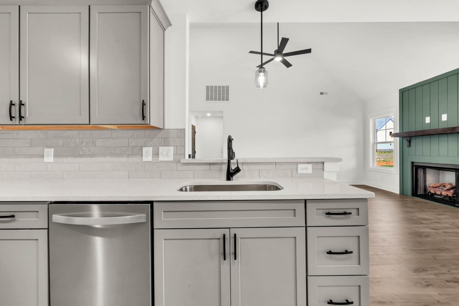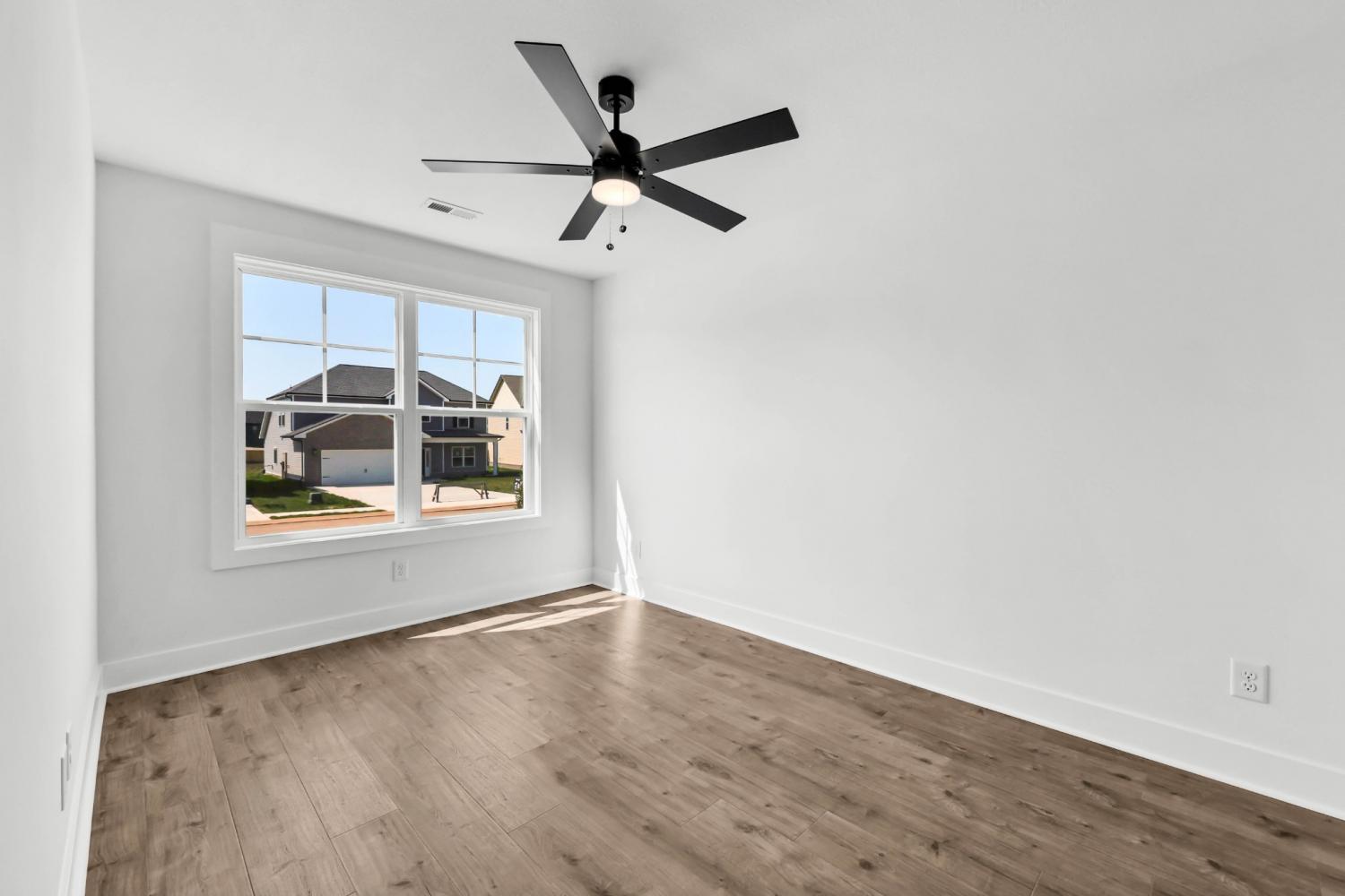 Stunning 4BR/3BA open floor plan with two main level BRs. Vaulted great room with shiplap fireplace opens to the kitchen. Kitchen with tons of cabinets featuring soft close drawers/doors, quartz tops, tiled backsplash and pantry. Gas range/oven is wired for electric as well. Custom trim work in entry foyer and great room. Primary suite plus one additional bedroom (or office) on the main level - and all hard flooring (zero carpet) on this level. Primary suite has full bathroom with double vanity, separate tiled shower, tub and walk-in closet. Upper level features two additional BRs with walk-in closets, a large bonus room (with closet), plus floored attic storage space. Gas heat on main level and electric heat on upper level. Front porch and large covered rear patio.