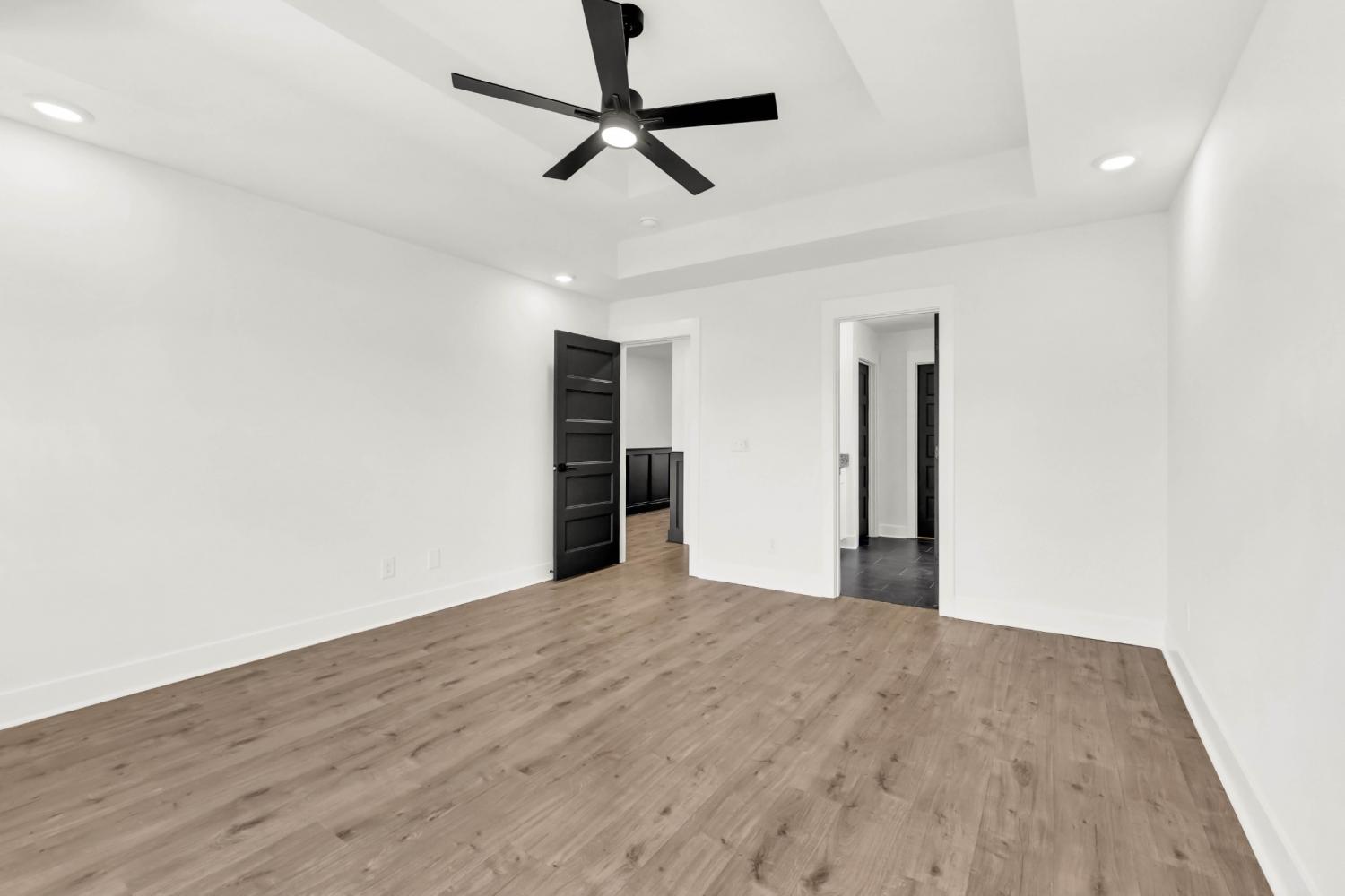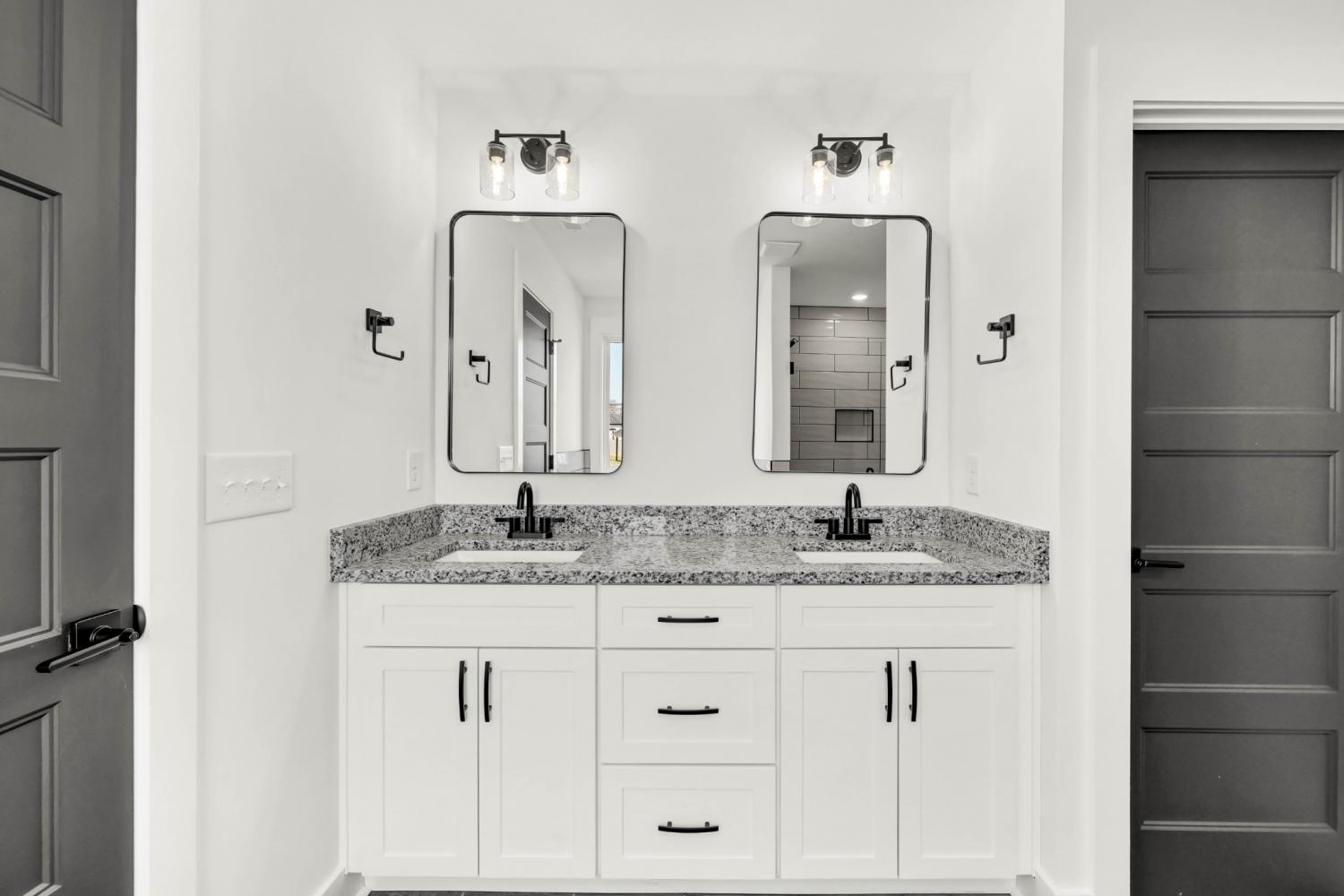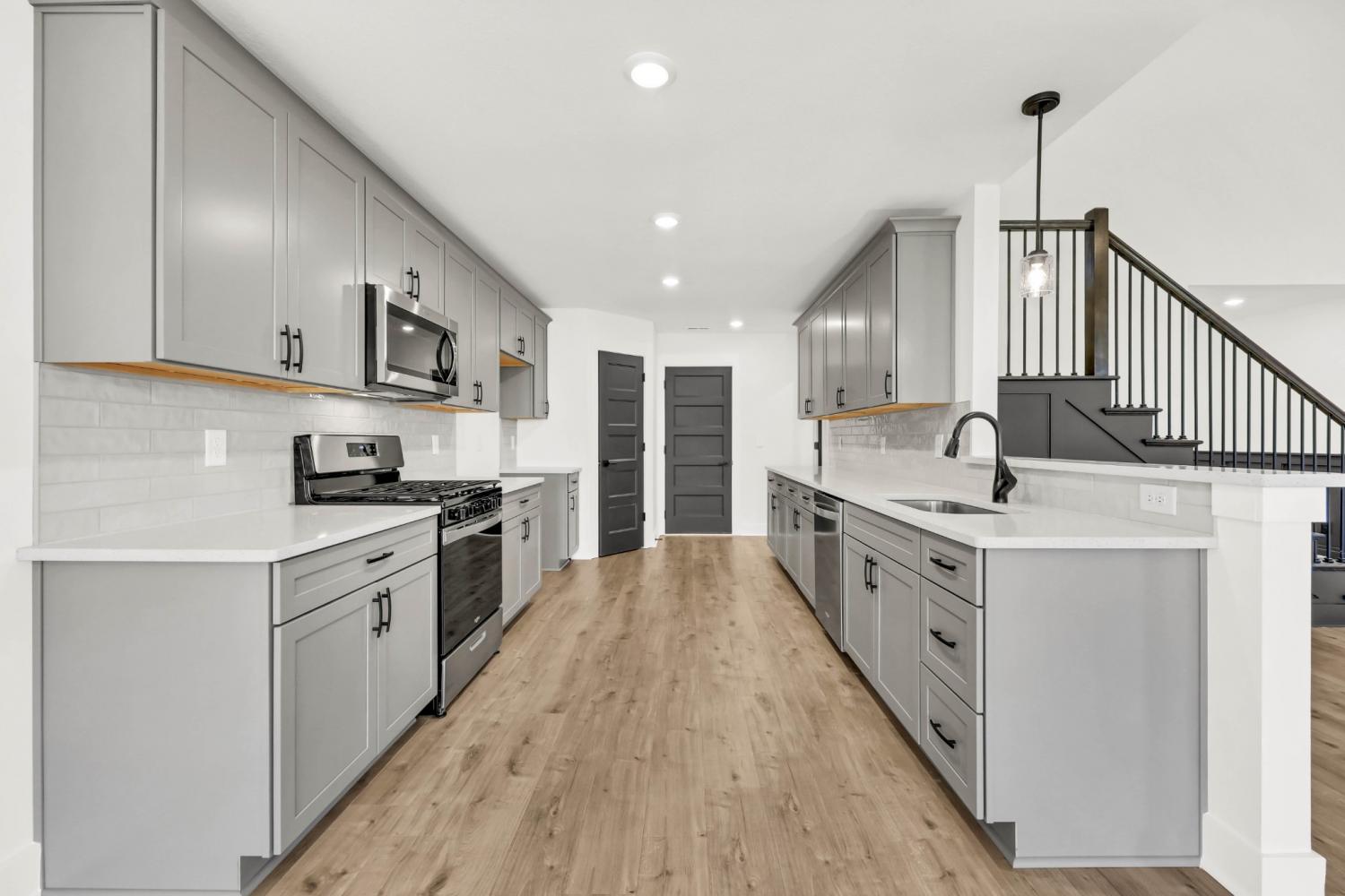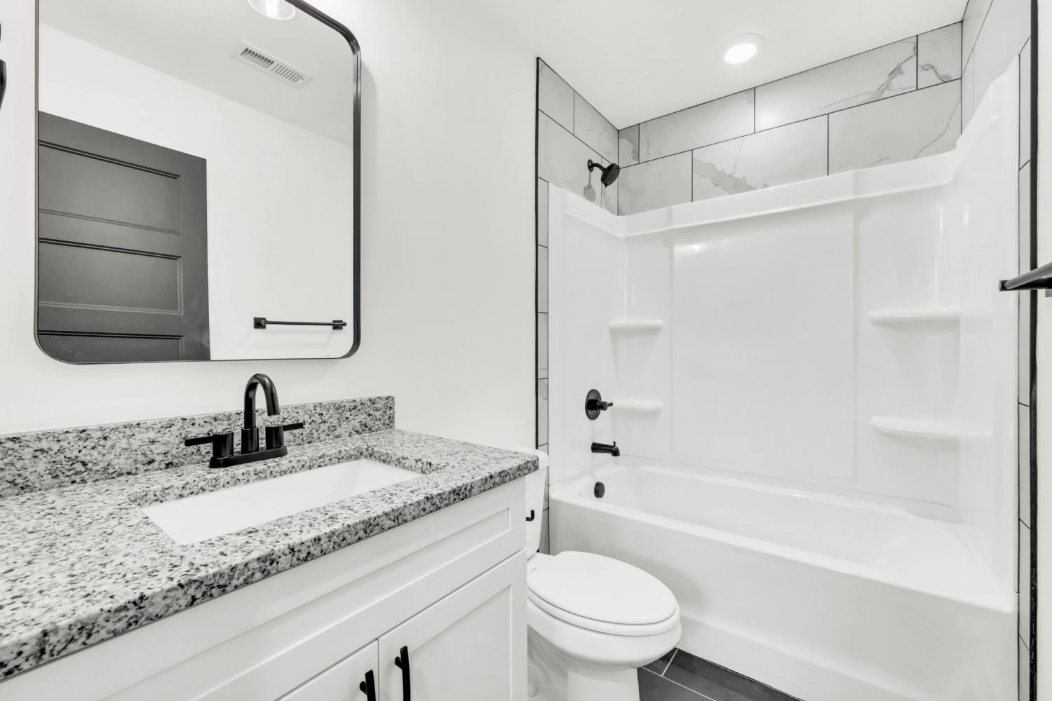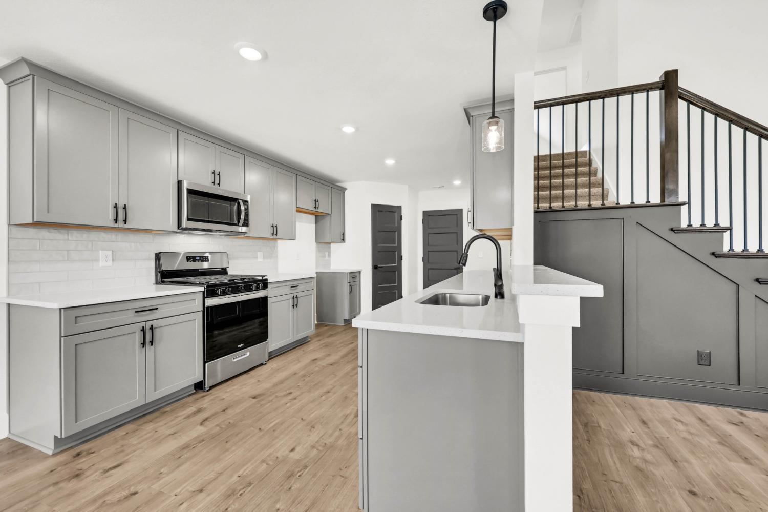 Stunning 4BR/3BA open floor plan with two main level BRs. Vaulted great room with shiplap fireplace opens to the kitchen. Kitchen with tons of cabinets featuring soft close drawers/doors, quartz tops, tiled backsplash and pantry. Gas range/oven is wired for electric as well. Custom trim work in entry foyer and great room. Primary suite plus one additional bedroom (or office) on the main level - and all hard flooring (zero carpet) on this level. Primary suite has full bathroom with double vanity, separate tiled shower, tub and walk-in closet. Upper level features two additional BRs with walk-in closets, a large bonus room (with closet), plus floored attic storage space. Gas heat on main level and electric heat on upper level. Front porch and large covered rear patio.