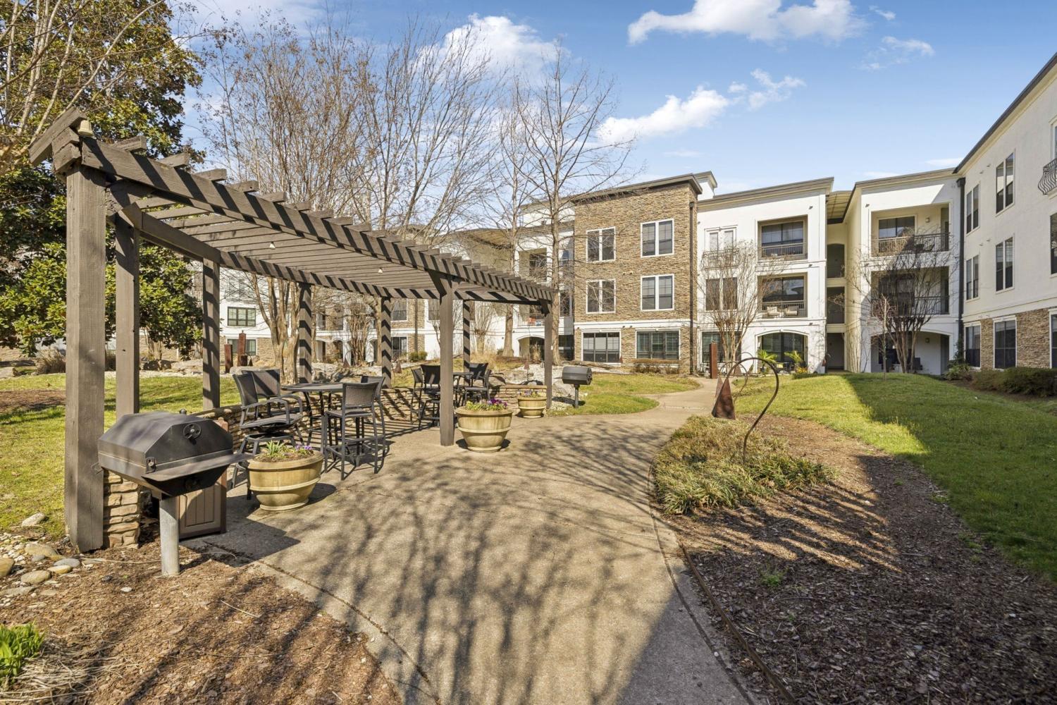 BEST VALUE in The Enclave!! Need a garage and storage unit?? Don’t miss this opportunity! Nestled in the highly sought-after Enclave community in Nashville’s vibrant West End, this stunning 2nd-floor condo offers the perfect blend of luxury and convenience. From the moment you step inside, you'll be captivated by its open concept design, featuring gleaming hardwood floors, soaring 10-foot ceilings, elegant curved doorways, and custom built-ins that create a warm yet modern atmosphere. The chef-inspired kitchen boasts sleek wood cabinetry, stainless steel appliances, a built-in oven, professional-grade stove hood, and a wine fridge, all complemented by granite countertops and a stylish tile backsplash. The spacious living room is bathed in natural light from oversized windows and invites relaxation with plush carpeting. Step out onto the private balcony to soak up the city vibes and sunshine. The primary suite offers a peaceful retreat with a luxurious en suite, featuring a double vanity, garden tub, custom tile shower, and a spacious walk-in closet. The second bedroom also includes a walk-in closet and easy access to the second full bathroom. This condo also comes with a storage unit and a 1-car garage, adding to its incredible value. Enjoy resort-style living with access to exceptional amenities, including a fitness center, dog walk area, wine room, coffee station, billiards room, outdoor grills, fire pits, car wash, guest suites, and lush grounds for walking. Plus, all appliances—including the washer and dryer—are included. Located just minutes from Vanderbilt, Music Row, 12 South, and downtown Nashville’s dining, shopping, and entertainment, this condo truly has it all. Schedule your private tour today! For open house access, contact the listing agent.
