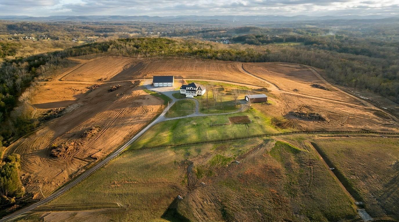 Secluded and private, this exceptional 4-bedroom, 3.5-bath home sits on 27 acres enrolled in Greenbelt, offering a rare combination of tranquility, space, and convenience. Approximately 3 acres are cleared around the home, providing an ideal setting for outdoor living, gardening, or simply enjoying the surrounding natural beauty. Future subdividing for estate lot development is possible. Located on a unique property line that separates Brentwood and Franklin, the property offers a prime Middle Tennessee location with the potential for a future connection to Brentwood Utilities. The land is complemented by outstanding outbuildings that make this property ideal for hobbyists, car collectors, contractors, or those needing significant workspace and storage. A massive 70’ x 52’ four-vehicle garage features 14-foot doors, perfect for larger vehicles, equipment, or recreational toys. Attached is a 52’ x 21’ conditioned workshop complete with plumbing in place for a future bathroom and a spacious storage loft above. In addition, a 40’ x 60’ equipment garage provides substantial covered storage for tractors, trailers, boats, or additional vehicles. Whether you are seeking privacy, room to expand, space for equipment, or a versatile property with exceptional utility buildings, this rare acreage opportunity offers endless possibilities while still being just minutes from the amenities of Brentwood and Franklin.