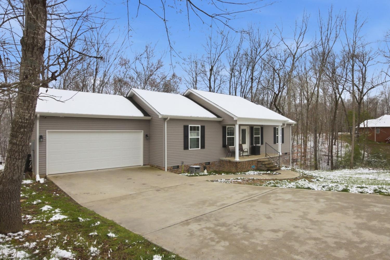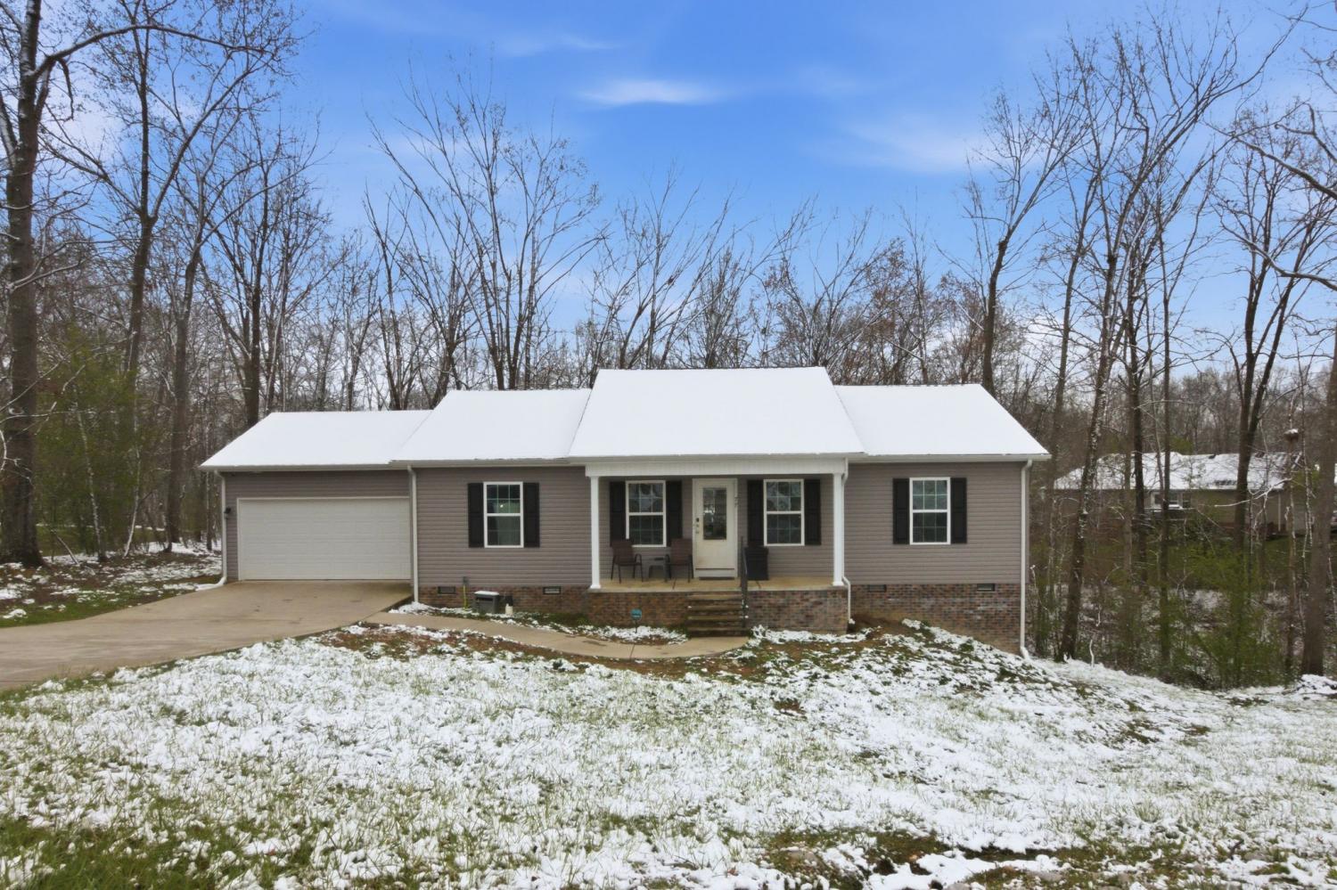 3 Bedroom home on a quiet cul de sac. Featuring a covered front porch. Large master suite with a walk in closet and private bathroom . Inviting open concept with spacious living room, dining, and country Kitchen. Fridge, washer, and dryer to remain! 2 bedrooms and a full bathroom down a hallway separate from the primary suite. Peaceful views in the backyard with majestic trees and a deck to enjoy beautiful country setting. Located 12 miles from Tim’s Ford State Park. Minutes to local favorites like the Celtic Cup and Sundrop Luncheonette and all amenities.