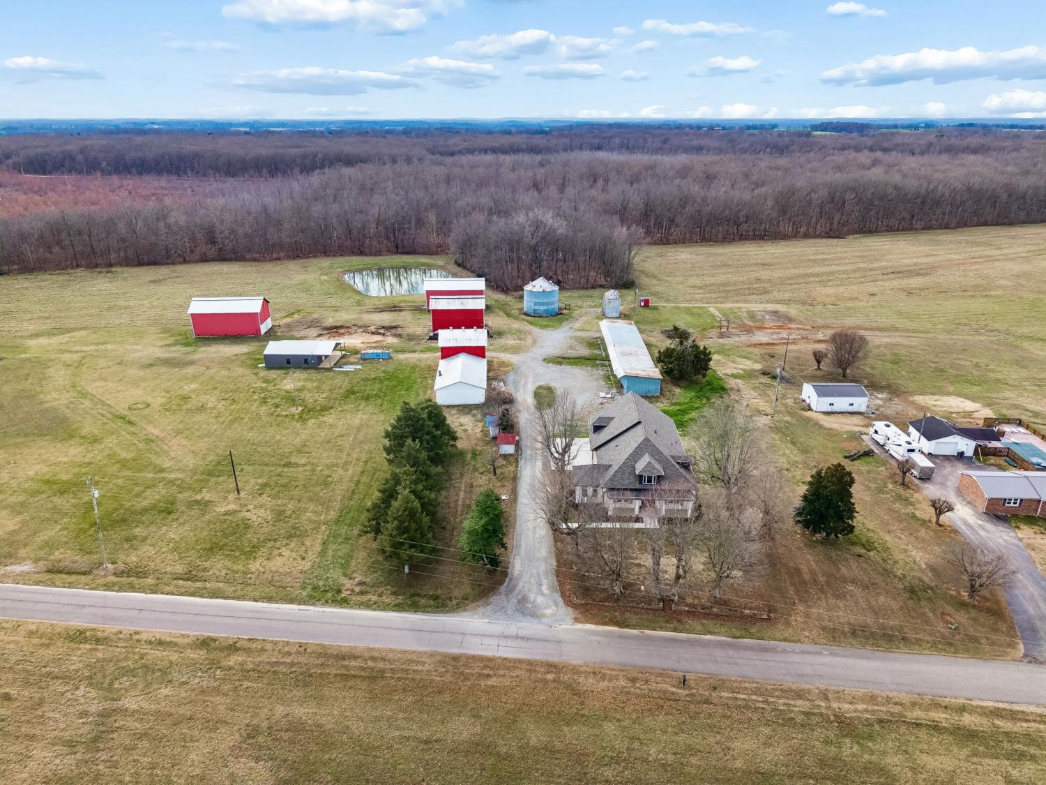 Charming 1912 Country Estate on 18 ac. Enjoy the space and serenity of country living. The updated home creates a warm and inviting atmosphere. Outside, the land truly shines, with multiple barns, silos, equipment sheds and entertaining space and don't forget about the pond. 7 minutes from Springfield Airport and only 35 miles to Nashville.