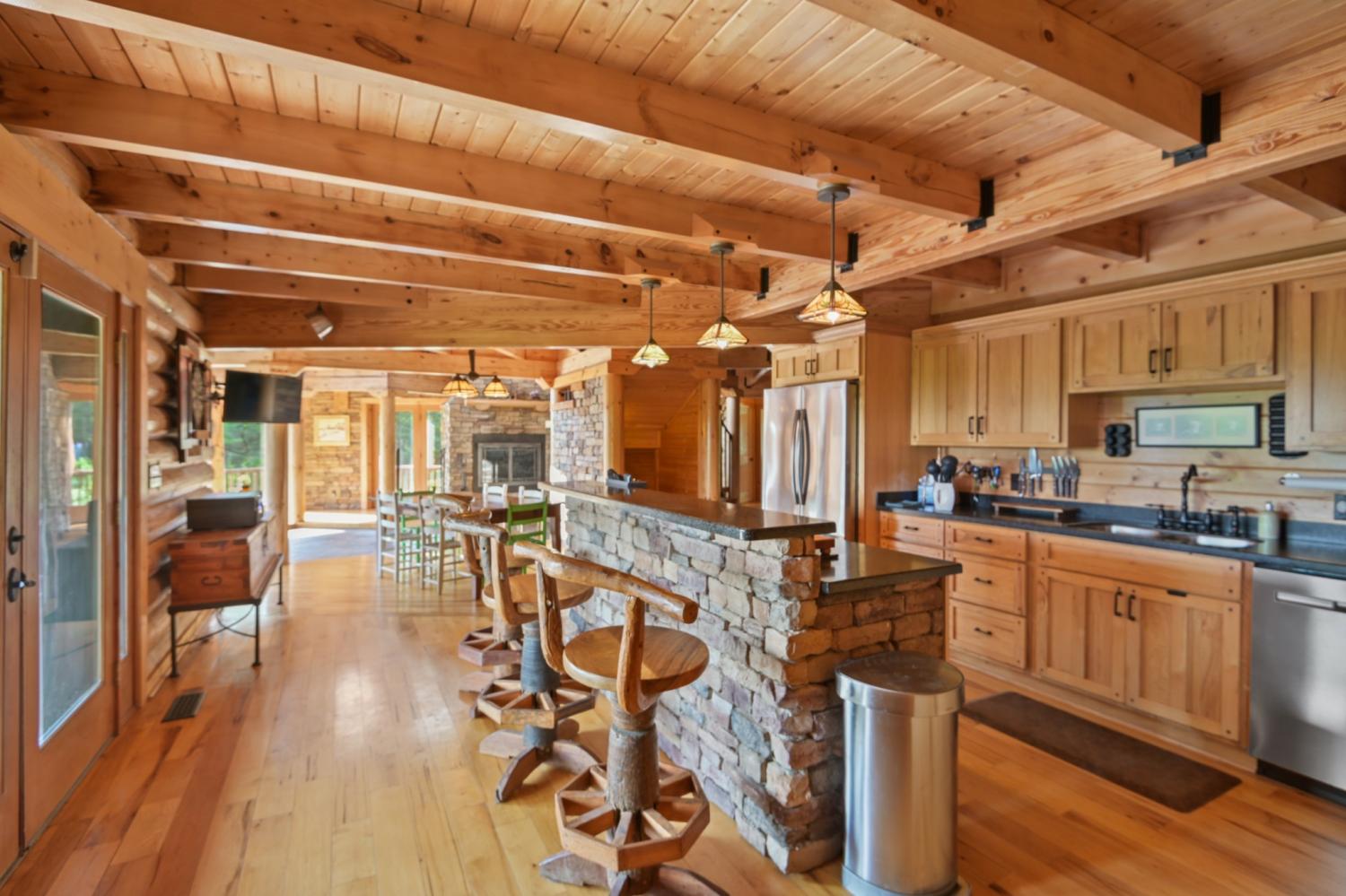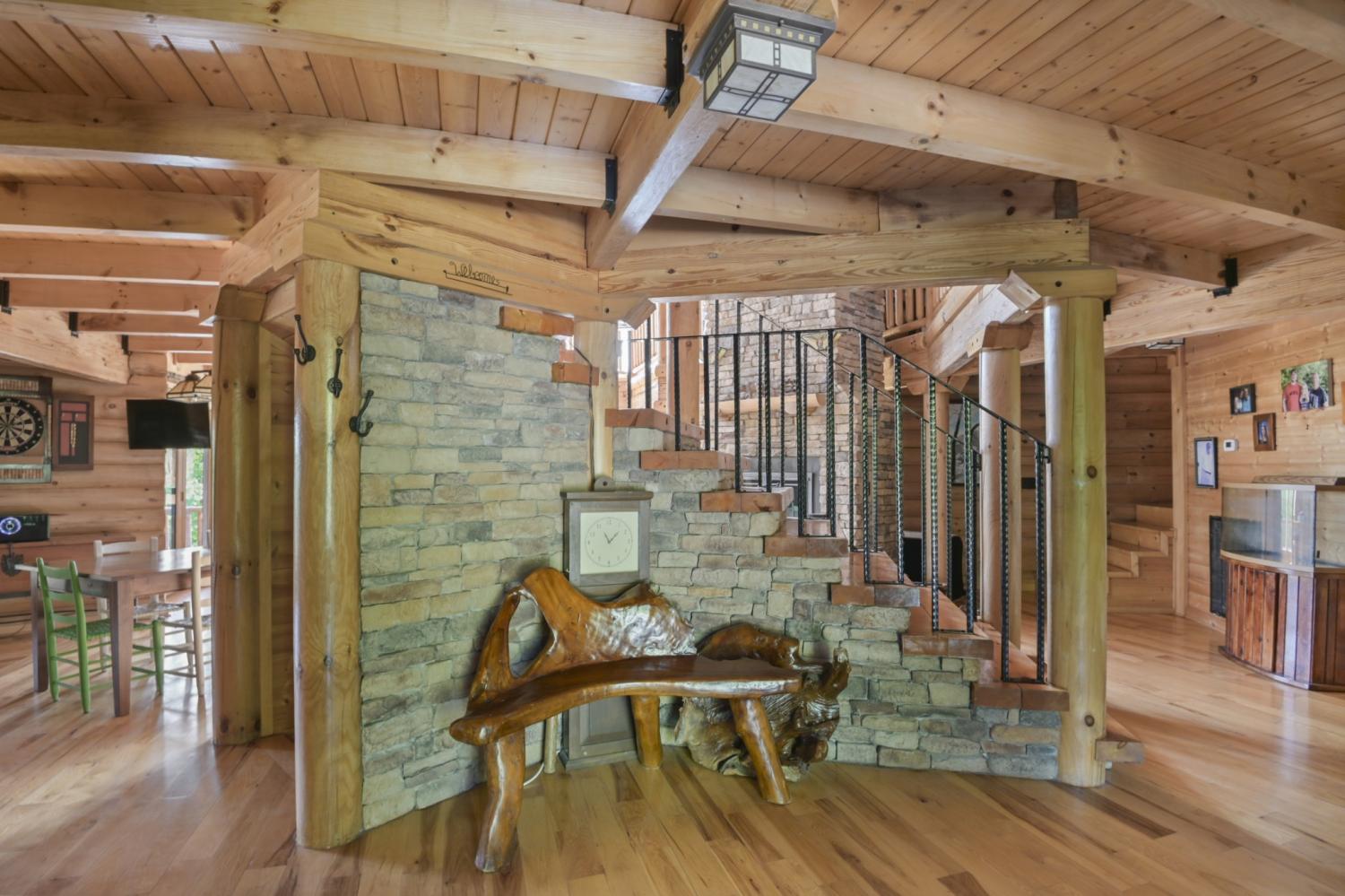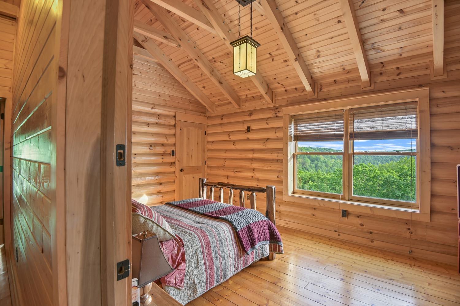 Luxury mountain top retreat with breathtaking bluff views overlooking the City of McMinnville! This custom built log home sits on 10+ private acres atop Harrison Ferry Mountain and blends rustic charm with modern comfort. The open concept layout features soaring ceilings, expansive windows, and a sunken living room anchored by a stunning wood-burning fireplace. Spacious bedrooms include a private primary suite with balcony access. Enjoy multiple covered porches and balconies designed to take in the incredible mountain scenery. The property also features a peaceful pond and plenty of space for outdoor recreation. It is conveniently located near Rock Island, Fall Creek Falls, and Savage Gulf State Parks, with easy access to Nashville and Chattanooga airports. Ideal for a full-time residence, vacation home, or investment property.