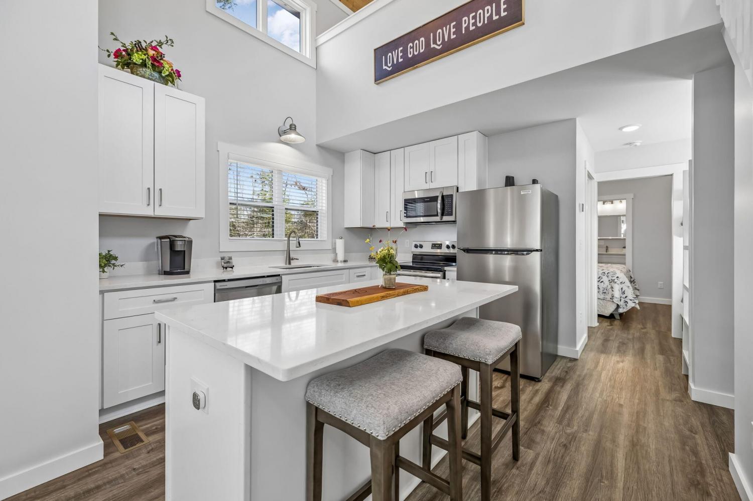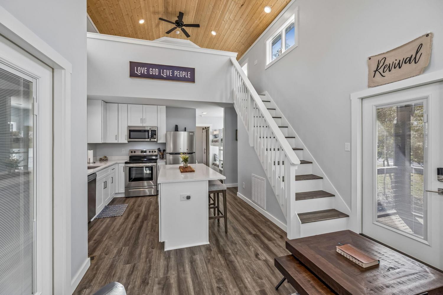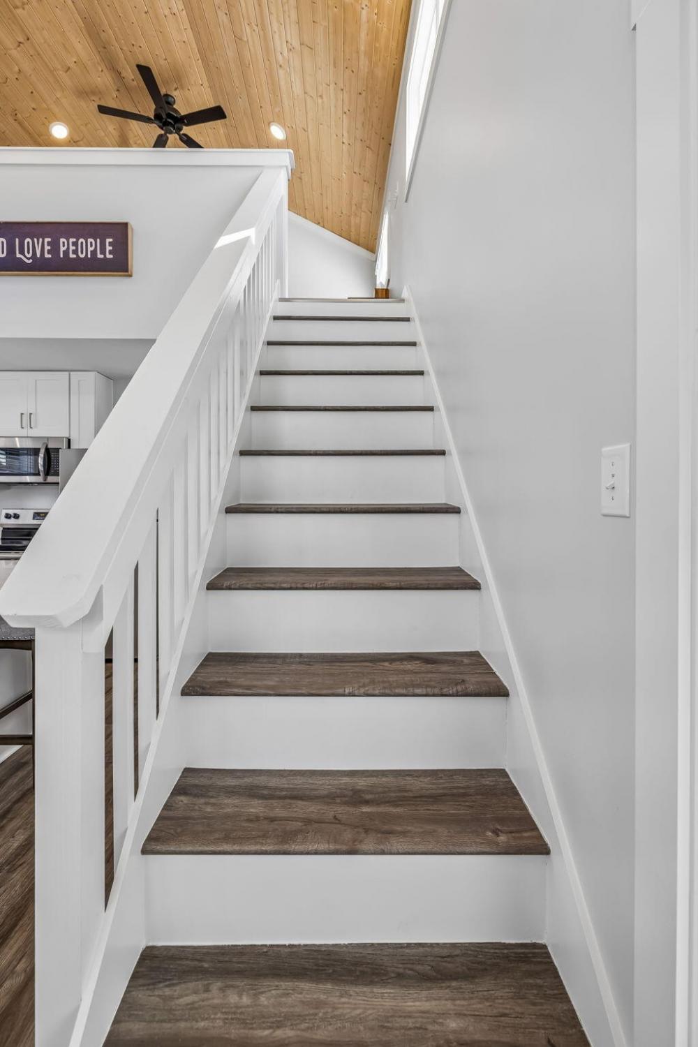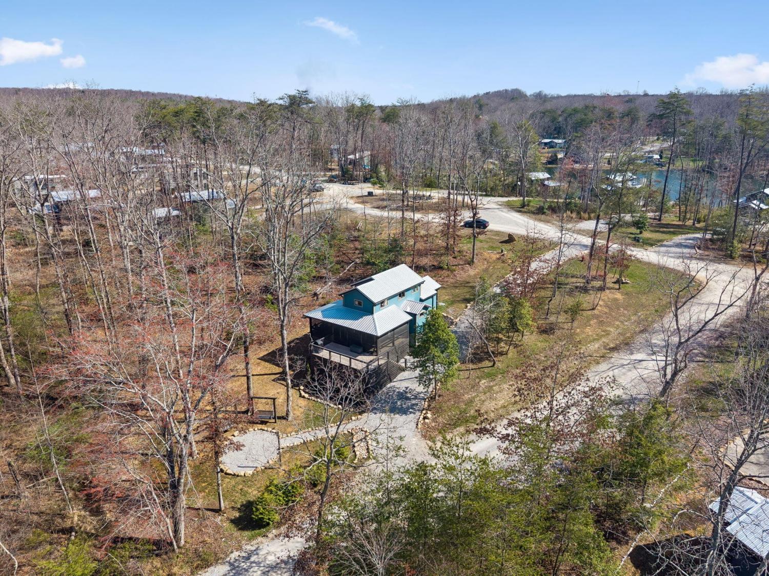 Nestled in the serene community of The Retreat at Water's Edge, this meticulously maintained 2023 luxury tiny home showcases thoughtful craftsmanship, quality finishes, and timeless style throughout. Featuring a distinctive, inviting blue exterior that stands out just enough while beautifully complementing the serene woodland and waterside surroundings, this property offers the perfect blend of character, charm, and natural beauty. With 1 bed, built-in hall bunk beds, a vaulted loft, and 2 full baths, this property maximizes guest capacity. The interior lives much larger than its 569 sqft, with optimal space utilization, abundant natural light, and bright finishes for comfortable sleeping, dining, and relaxing. A spacious open-air deck leads to a wraparound screened-in porch that doubles your living space, ideal for morning coffee and relaxing evenings. Enjoy privacy, lake views, and dual swings overlooking the water. Storage beneath the porch provides space for outdoor gear, including canoe/kayak and more. Inside, the open-concept living area features soaring knotty pine ceilings and flows into the eat-in kitchen with a counter-height island, modern white finishes, and sleek stainless steel appliances. Laundry room and storage closet are conveniently located off the kitchen. Hall bunks sit across from a full bath with a shower/tub combo, while the primary suite offers built-in storage and a private full bathroom. The upstairs loft provides flexible space for guests or a quiet retreat. The community offers a wooded setting with diverse architectural styles, a 75-acre lake with dock for ample water activities, plus pavilion, fire pit, and kayak rentals. Located near the South Cumberland Plateau with easy access to hiking Fiery Gizzard, Grundy Lakes, local markets, and charming small-town dining, including one of TN's oldest operating bakeries.