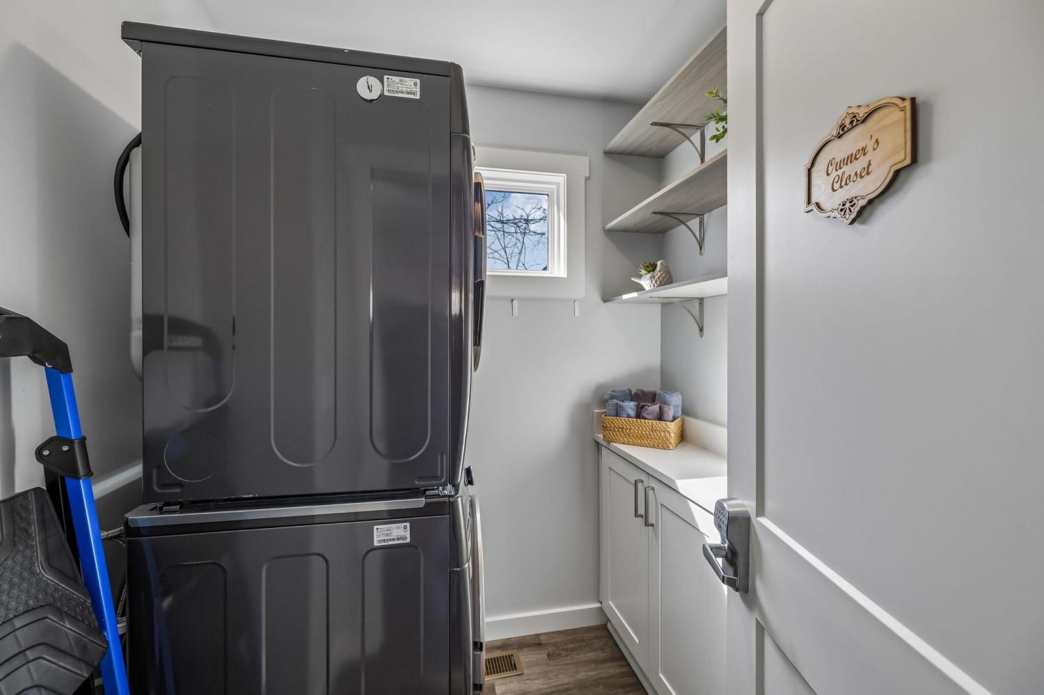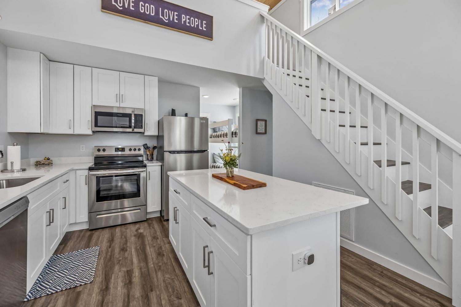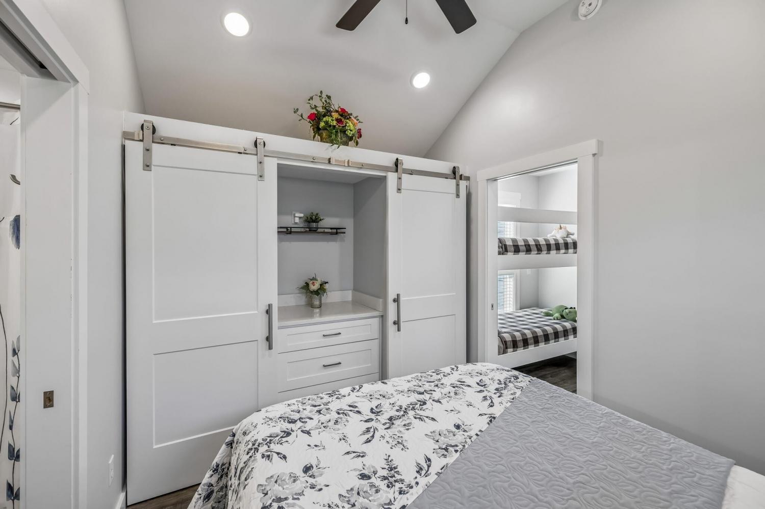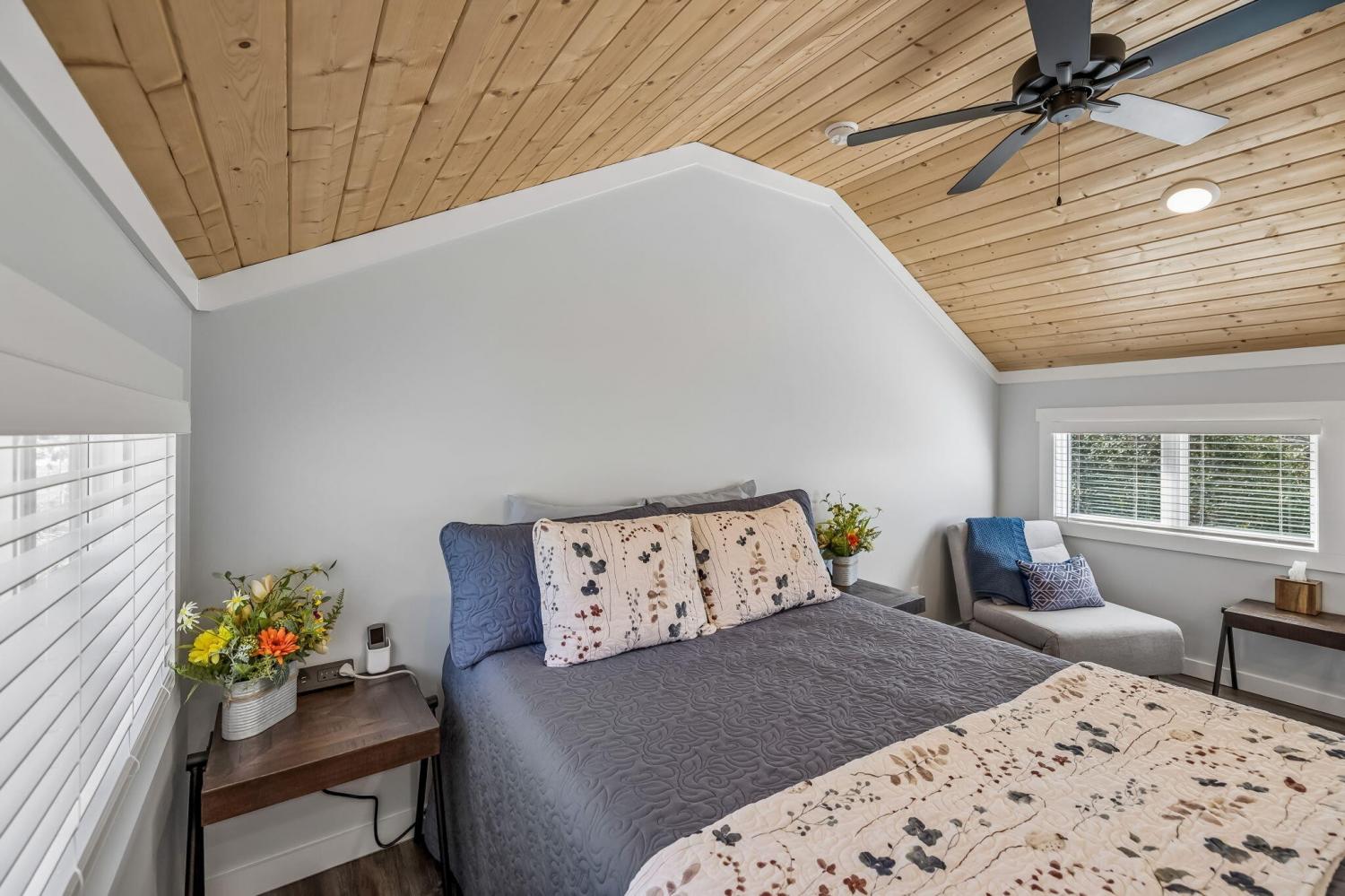 Nestled in the serene community of The Retreat at Water's Edge, this meticulously maintained 2023 luxury tiny home showcases thoughtful craftsmanship, quality finishes, and timeless style throughout. Featuring a distinctive, inviting blue exterior that stands out just enough while beautifully complementing the serene woodland and waterside surroundings, this property offers the perfect blend of character, charm, and natural beauty. With 1 bed, built-in hall bunk beds, a vaulted loft, and 2 full baths, this property maximizes guest capacity. The interior lives much larger than its 569 sqft, with optimal space utilization, abundant natural light, and bright finishes for comfortable sleeping, dining, and relaxing. A spacious open-air deck leads to a wraparound screened-in porch that doubles your living space, ideal for morning coffee and relaxing evenings. Enjoy privacy, lake views, and dual swings overlooking the water. Storage beneath the porch provides space for outdoor gear, including canoe/kayak and more. Inside, the open-concept living area features soaring knotty pine ceilings and flows into the eat-in kitchen with a counter-height island, modern white finishes, and sleek stainless steel appliances. Laundry room and storage closet are conveniently located off the kitchen. Hall bunks sit across from a full bath with a shower/tub combo, while the primary suite offers built-in storage and a private full bathroom. The upstairs loft provides flexible space for guests or a quiet retreat. The community offers a wooded setting with diverse architectural styles, a 75-acre lake with dock for ample water activities, plus pavilion, fire pit, and kayak rentals. Located near the South Cumberland Plateau with easy access to hiking Fiery Gizzard, Grundy Lakes, local markets, and charming small-town dining, including one of TN's oldest operating bakeries.