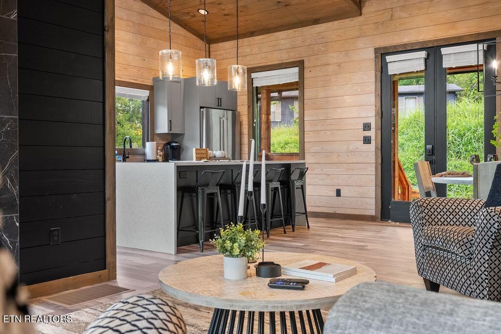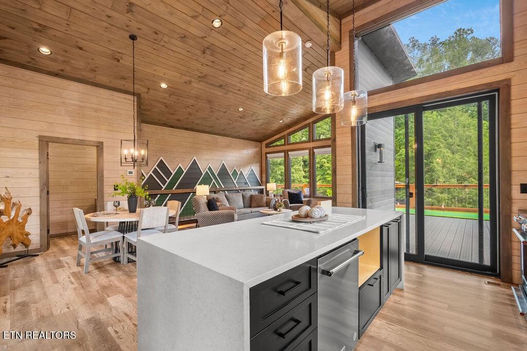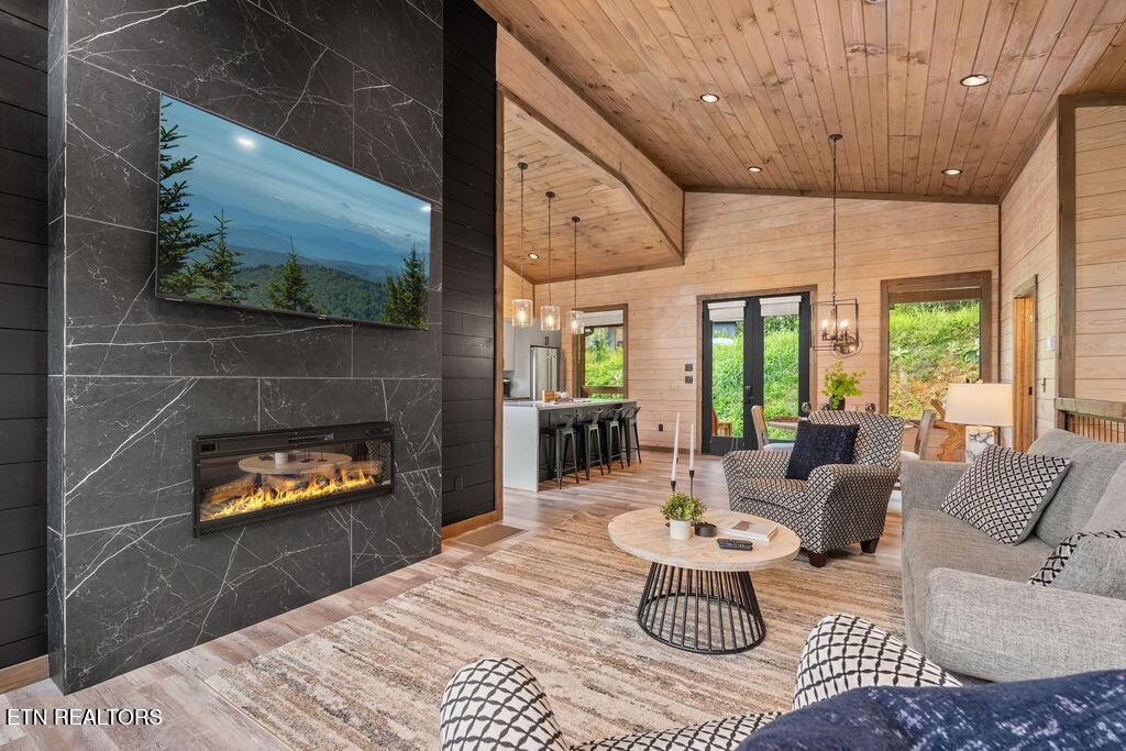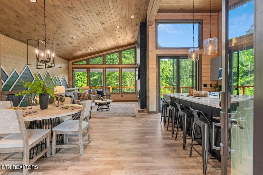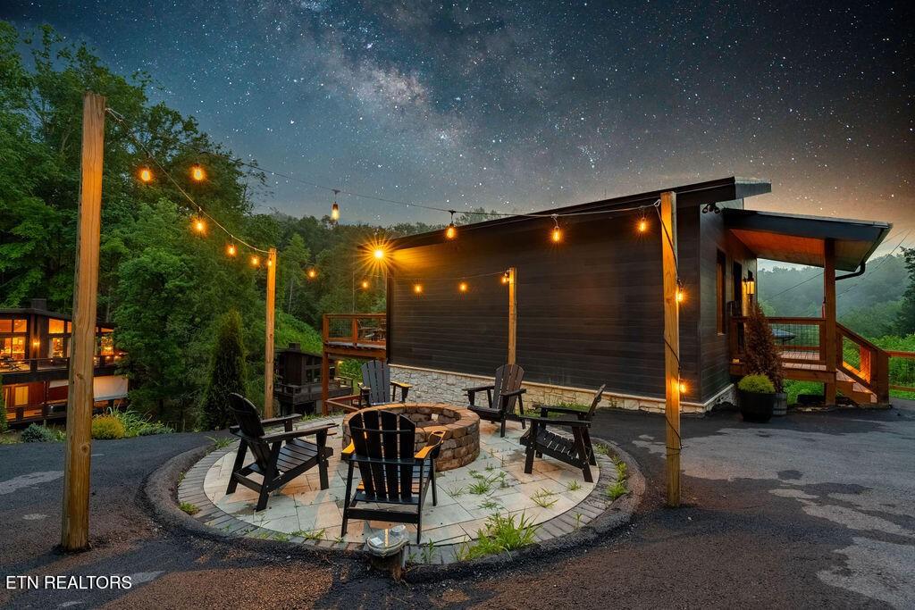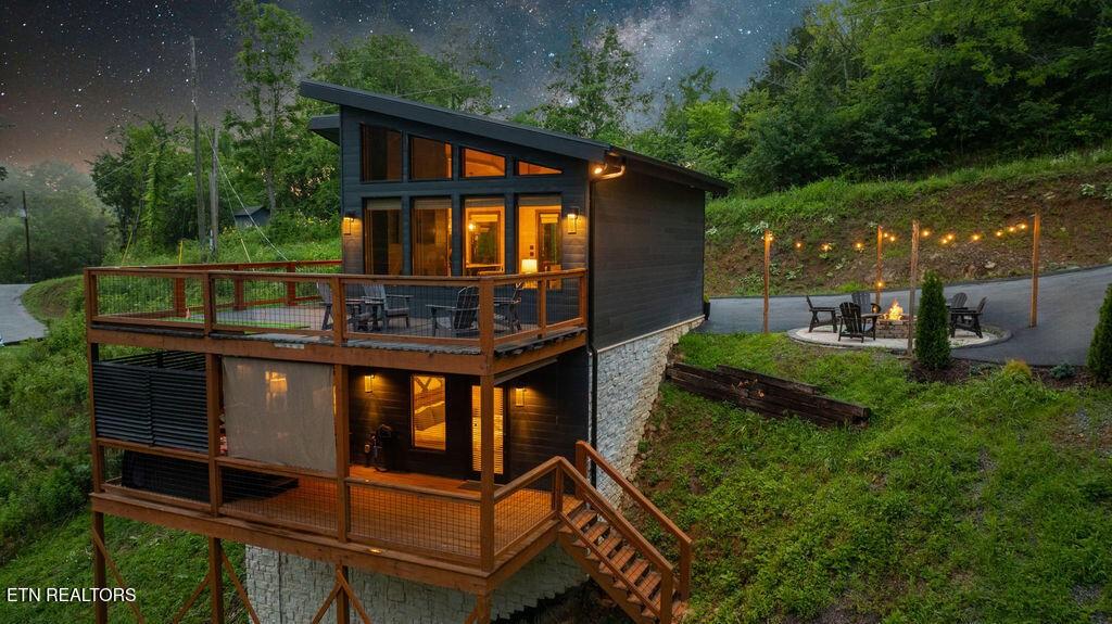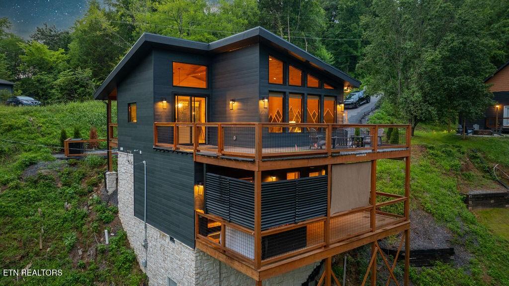 Experience the ultimate blend of modern durability and mountain charm with this turnkey investment opportunity in the heart of Lakewood Hills. Perfectly positioned just 9 minutes from Dollywood and a stone's throw from the premier dining and attractions of Pigeon Forge, this beautifully refreshed 1,448-square-foot cabin sits on a private, 0.42-acre wooded lot. The exterior makes a striking first impression with elegant white stone paired with high-end MAC architectural metal siding--rated for 50 years--ensuring both style and longevity. Inside, the open-concept floor plan shines under soaring cathedral ceilings, featuring durable laminate and hardwood flooring, fresh paint, and a cozy electric fireplace. The versatile layout includes two spacious bedrooms and 2.5 baths, complemented by a finished lower level that serves as a perfect game room, bunk area, or secondary den. Outdoor living is a true highlight, boasting a brand-new hot tub, an elevated fire pit area, and refreshed landscaping designed for maximum relaxation. With a proven track record of approximately $78,000 in rental income for 2025, this property offers a rare combination of seclusion and accessibility, making it an ideal short-term rental or a sophisticated primary residence in the Great Smoky Mountains.