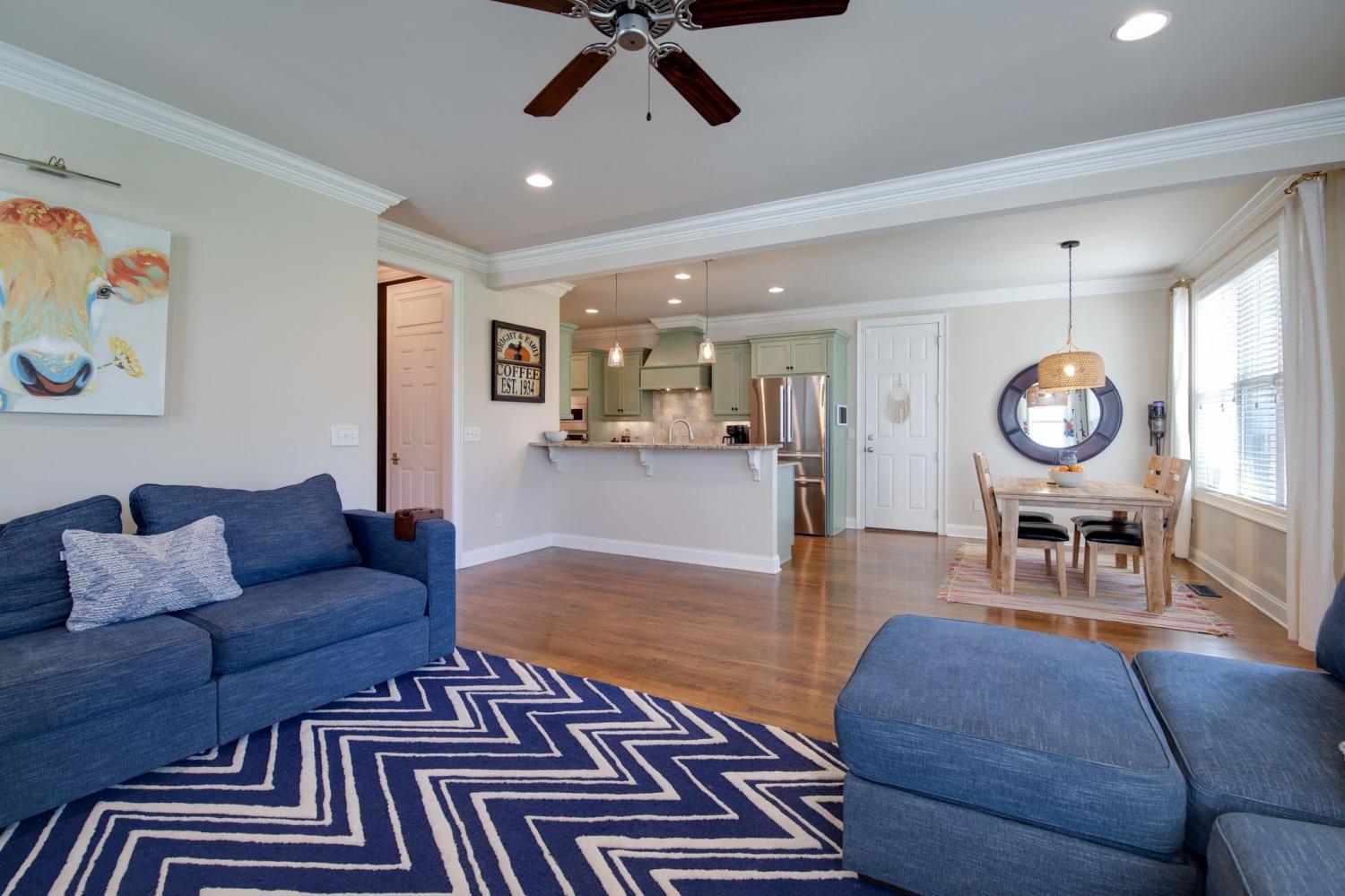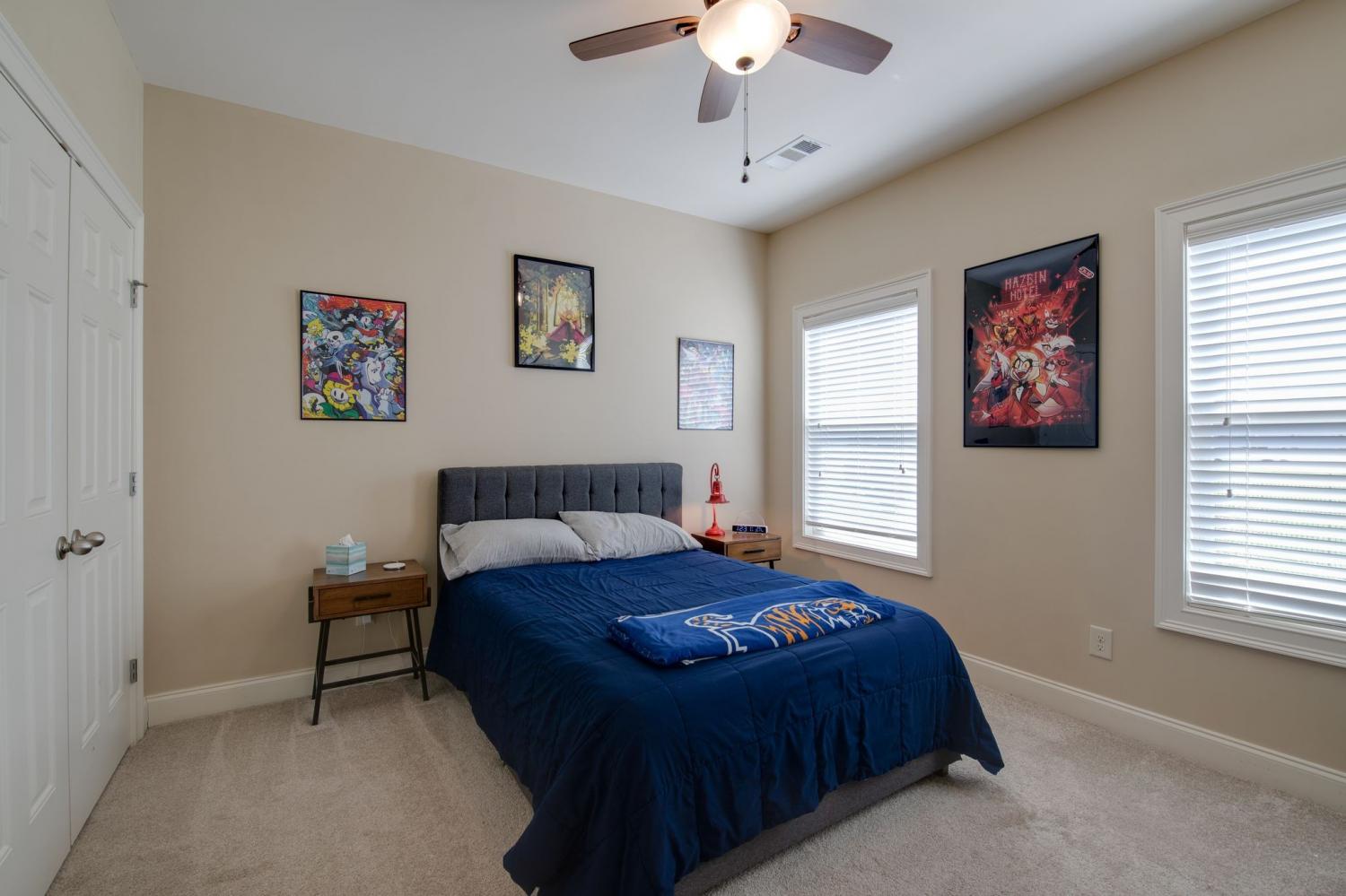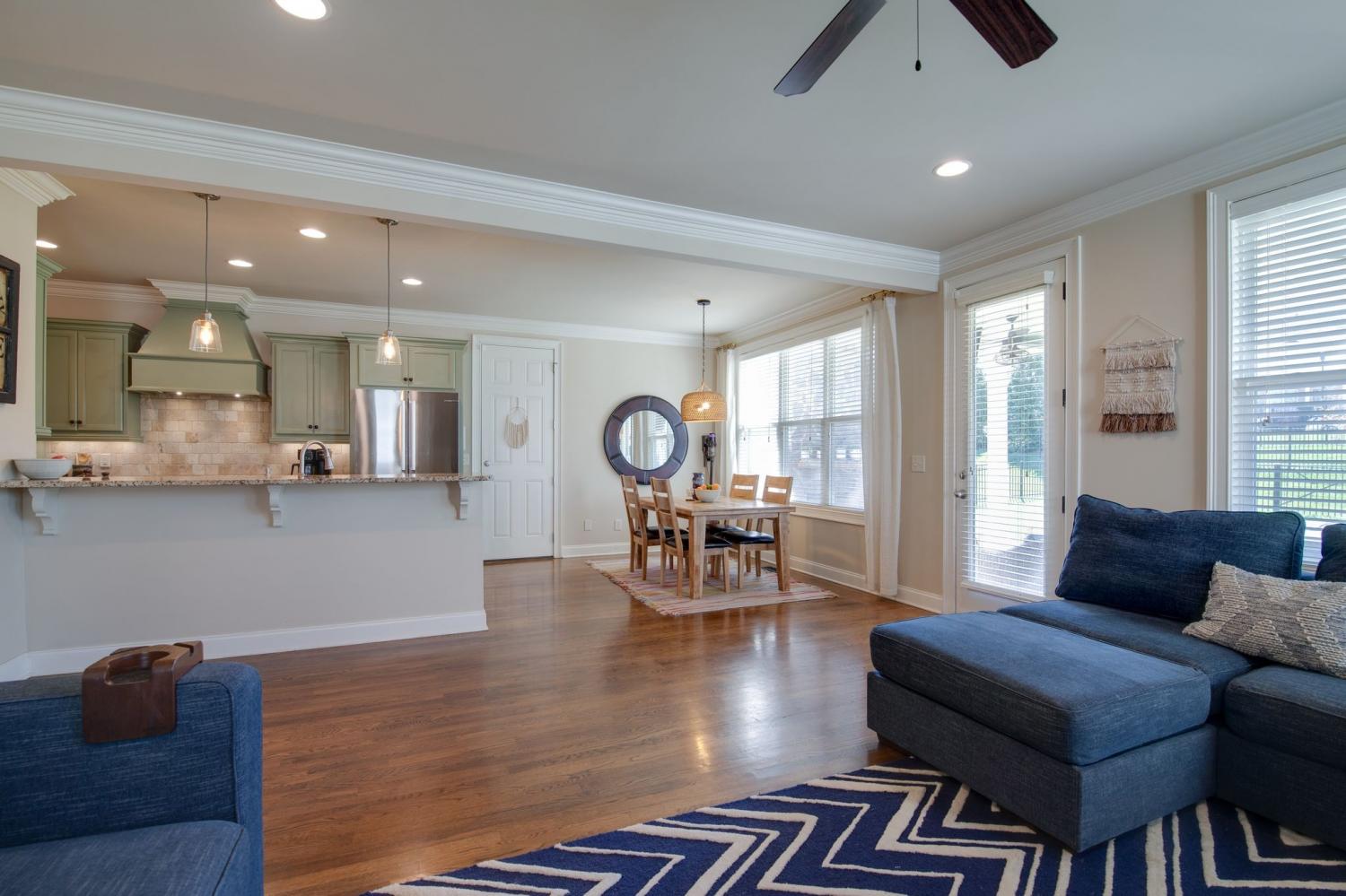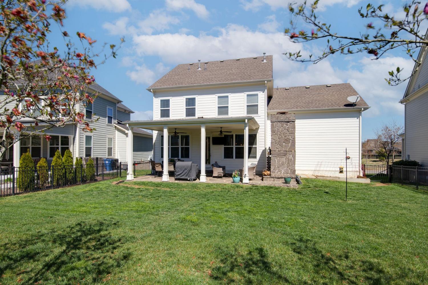 Gorgeous property in the highly sought-after Ladd Park community. Built by Ford Classic Homes, this stunning and meticulously maintained home features an open floor plan with hardwood flooring throughout the main level. The home's modern kitchen is complete with granite countertops, under-cabinet lighting, and recently replaced SS appliances. Updated light fixtures throughout add a modern touch of elegance. Enjoy outdoor living with an impressive 24x14 covered patio featuring a stacked stone fireplace, along with a large covered front porch and a private balcony off the bonus room that overlooks the beautiful common area. This home's first-floor bedroom is currently being utilized as a music retreat, with a custom-built-in bourbon closet. Additional upgrades include new carpet (2022), a fully fenced backyard, and an insulated garage with epoxy flooring. The home also includes surround sound speakers and smart thermostats. Residents enjoy access to two neighborhood pools, a playground, sidewalks, and convenient access to the Harpeth River canoe launch. Open House Sunday, 3/24 2-4 pm.