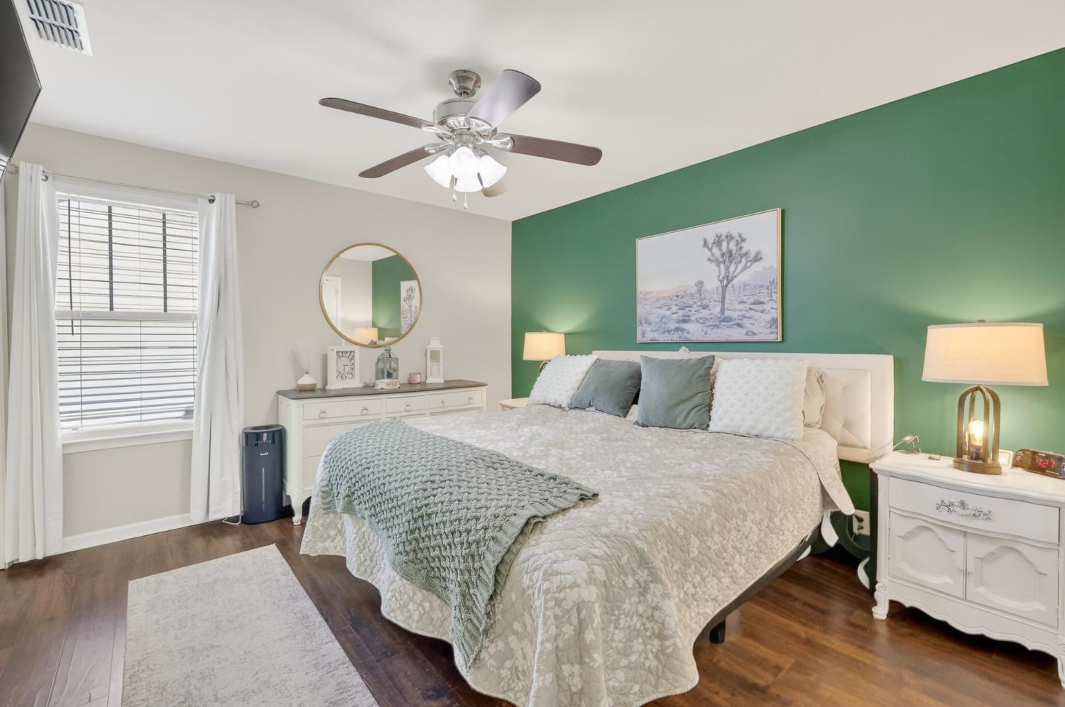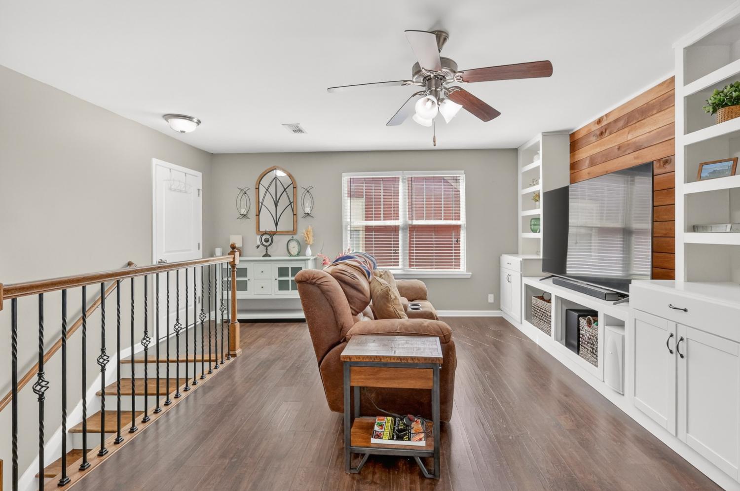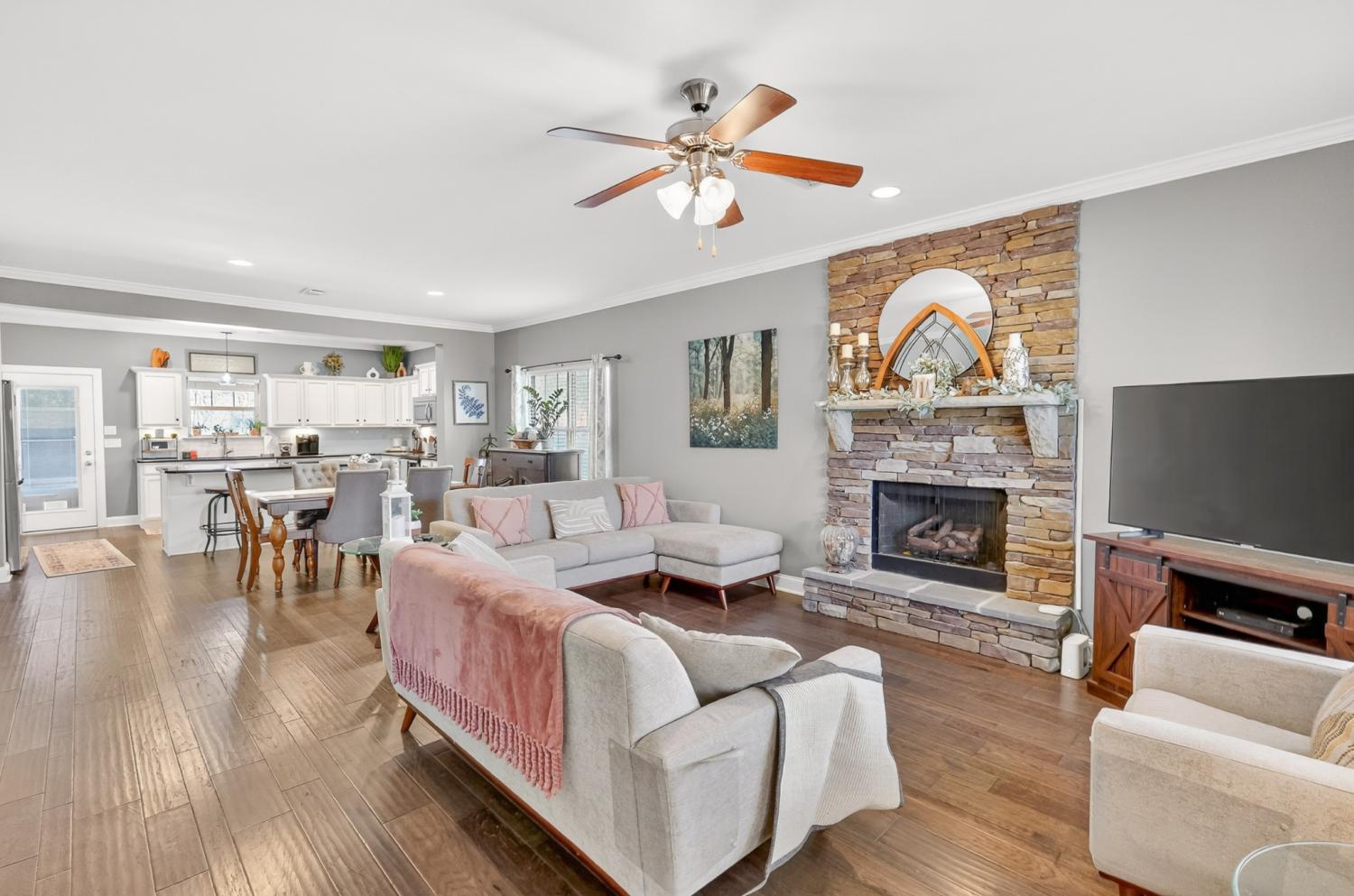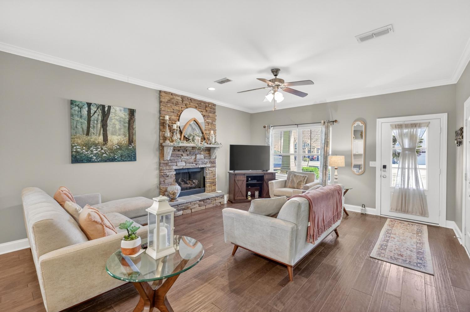 This stunning, one-owner residence in the highly sought-after resort-style Berkshire community offers an exceptional opportunity in the Enclave section. Featuring 4 bedrooms and 3.5 baths, this thoughtfully designed home delivers a spacious, open floor plan.The welcoming living room boasts beautiful pre-finished hardwood flooring and a striking stone fireplace, seamlessly flowing into the adjacent dining area and gourmet kitchen. The chef-inspired kitchen is equipped with a large center island, elegant granite countertops, stainless steel appliances (including a refrigerator that conveys), and ample cabinetry. Notably, the entire home is carpet-free, showcasing durable, easy-maintenance hardwoods throughout. The luxurious primary suite is conveniently located on the main level, complete with a spa-like en-suite bath featuring granite counters. Upstairs, discover three generously sized secondary bedrooms, two full baths, and a versatile second gathering space ideal for relaxation, media, or play. One of the upstairs bedrooms includes its own private bath, providing added convenience and privacy. Step outside to your private outdoor oasis: an extended covered back porch with retractable screens and a charming wood-burning stone fireplace, overlooking a fully privacy-fenced backyard perfect for year-round enjoyment and entertaining.Recent upgrades: a brand-new roof installed just six months ago and a 2022 new HVAC system. Enjoy a resort-style lifestyle with two community pools, a playground, pavilion, basketball court, sidewalks throughout, and a calendar of yearly social events. Zoned for the Triple Blackman schools, with the option of Overall Creek Elementary—a top-performing school known for its STEAM programs. Ideally situated the home provides quick access to I-24, I-840. Veterans Pkwy offers shopping with nearby Publix.This move-in-ready gem combines timeless elegance, modern upgrades, and an unbeatable location—don't miss the chance to call it home!