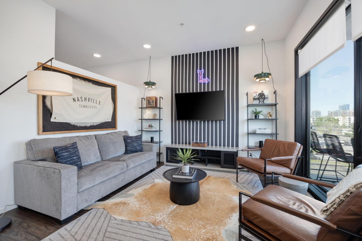 Experience modern urban luxury at Illume in this stunning top-floor retreat at 920 South Street with desirable Multi-unit zoning for non-owner occupied short-term rentals. Unit 403 directly next door is also available for sale and can be purchased together to provide a ran combo 3BR rental opportunity in the building and area. Perfectly positioned in the vibrant Gulch View/Edgehill area, this sleek 1-bedroom, 1-bathroom residence features an open-concept layout, highlighted by 10-foot ceilings, finished wood flooring, and a contemporary kitchen with stainless steel appliances. Large windows and a private balcony offer captivating views of the Nashville skyline, making it an ideal sanctuary just minutes from the Gulch and Lower Broadway. Residents enjoy premium building amenities including a resort-style seasonal pool, a state-of-the-art fitness center, a dog dog park, and secure gated parking with an assigned space. Whether you are looking for a sophisticated primary residence or a high-potential investment near Vanderbilt and Belmont, this unit offers the ultimate Nashville lifestyle in a sustainable, design-forward community. Furnishings and Personal Property are negotiable and available with purchase.