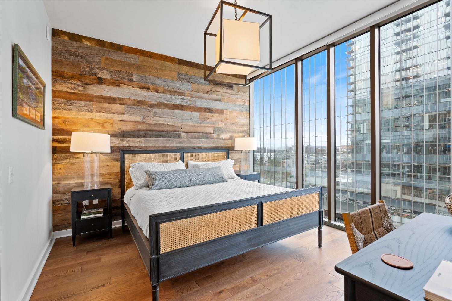 Step inside Unit 906 of the Twelve Twelve, where luxurious, turn-key living welcomes you into this well-appointed and meticulously maintained condo. The unit boasts a well-equipped kitchen, built-in bar with wine cooler, large waterfall kitchen island, walk-in closet with California closet system, reclaimed wood accent walls, floor to ceiling windows, north-north western view of Downtown Nashville, & private balcony. The Twelve Twelve offers owners a 24/7 concierge service, saltwater pool, hot tub, private dog park, owners' lounges, multiple grill areas, fitness center, and guest suites available. Enjoy the superb walkability and proximity to all of the restaurants and amenities of Downtown Nashville.