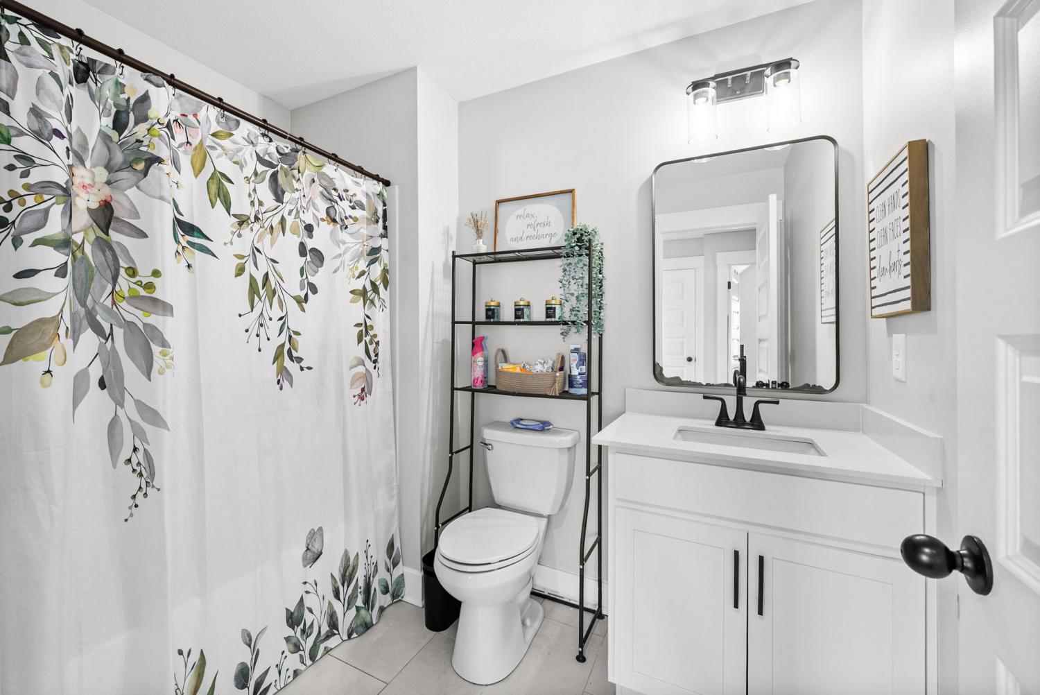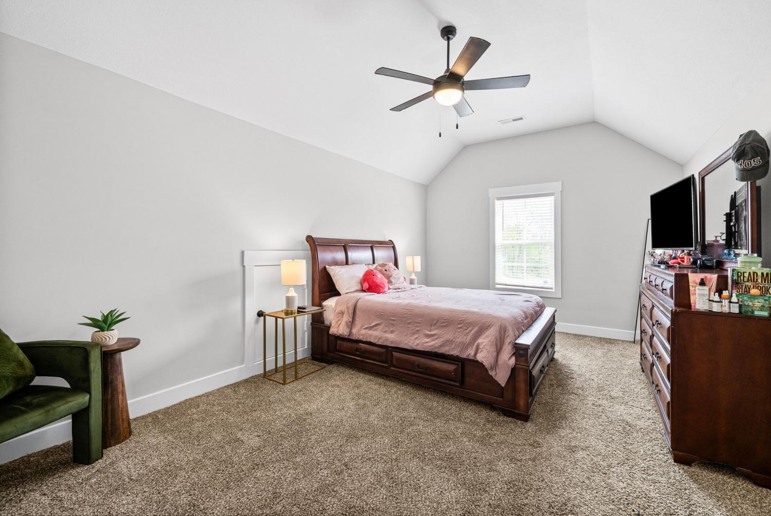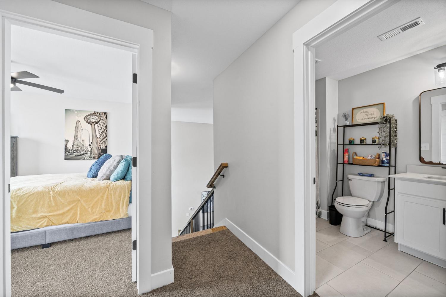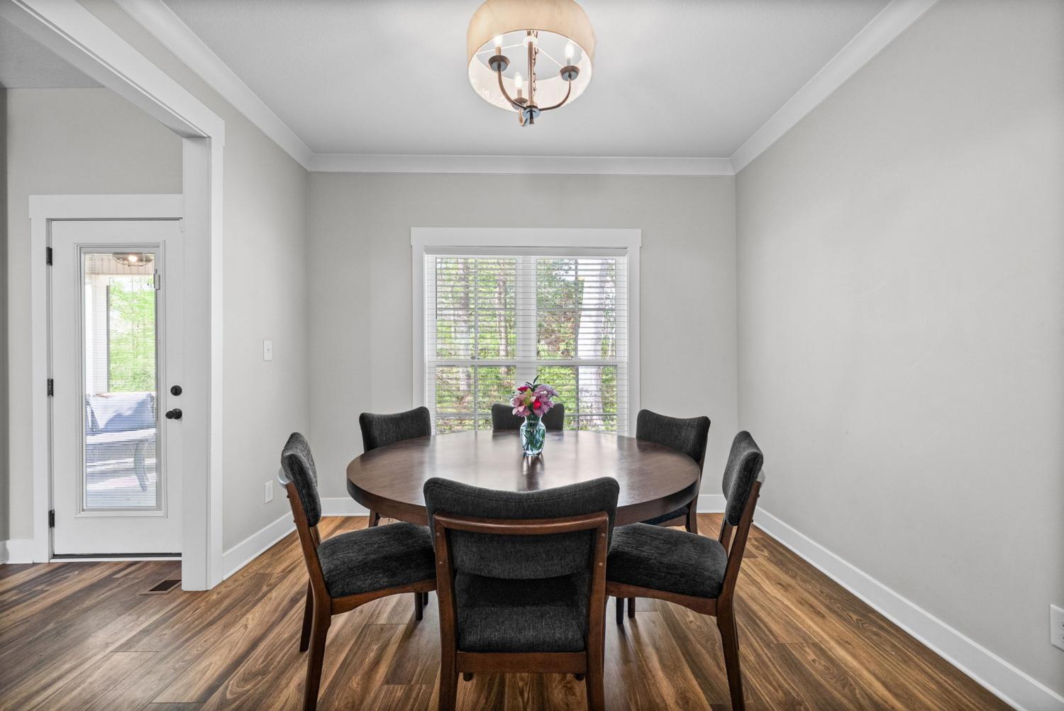 Don't miss out on this show stopper! Stunning vaulted foyer, grand staircase, decorative shiplap details, modern fixtures & desirable LED fireplace. The open kitchen is complete with an eat-in area, serving bar, tile backsplash, stainless appliances & upgraded cabinets. Separate formal dining room. The primary suite and an additional second bedroom with a bathroom are located on the main level. The primary suite boasts TWO walk-in closets, a free-standing tub, and a full tile shower with a glass enclosure. Located on the second level are two additional bedrooms with a shared bathroom along with a large versatile bonus room. Covered deck, treed lot and situated in a cul-de-sac.