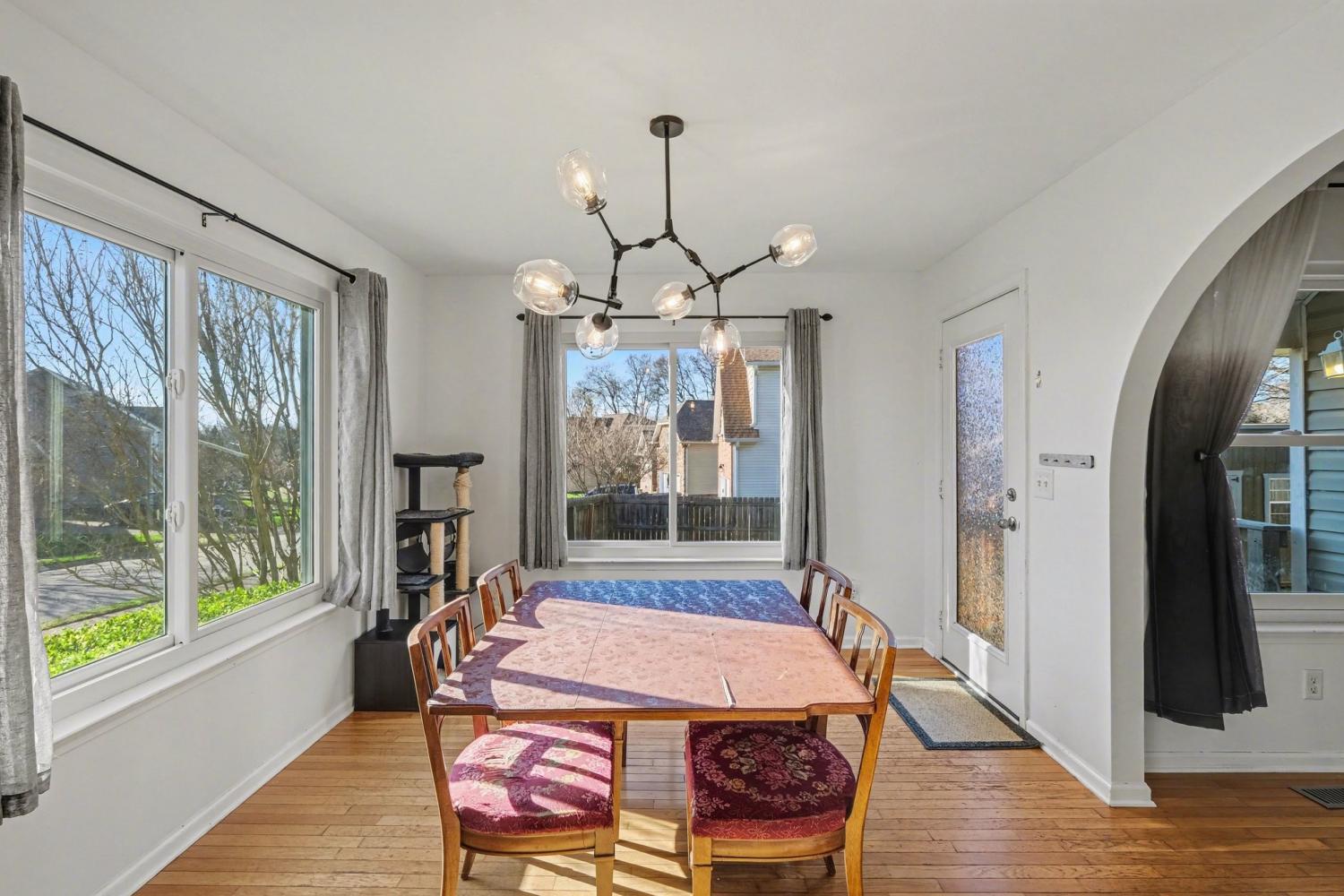 Welcome to this inviting 3 bedroom, 2 bath home offering nearly 2,300 square feet of comfortable living space on a large corner lot. The open floor plan is designed for both everyday living and entertaining, with hardwood floors throughout the main level and a beautiful living area centered around a cozy fireplace that flows seamlessly into the kitchen and dining space. Freshly painted interiors create a clean, updated feel, while the spacious bonus room offers excellent flexibility and includes an adjoining flex room that can easily serve as a home office, storage area, or potential fourth bedroom depending on your needs. The remodeled main bath completed in 2025 adds a fresh modern touch, and major system updates include new wood composite windows in 2024, a new HVAC system in 2019, and a tankless hot water heater installed in 2021. Outside, the generous corner lot provides added space and curb appeal, with the backyard shed included in the purchase for extra storage or workspace. Located within highly sought after Williamson County schools, this home combines versatile living space, thoughtful updates, and a desirable setting that is truly a must see.