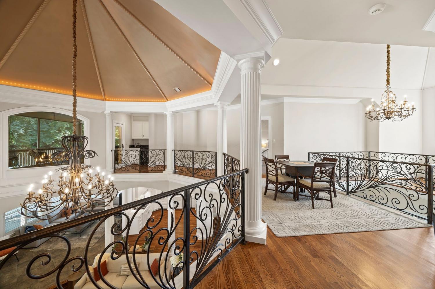 Check out this home on the hit series NASHVILLE 911. The great room is featured in Season 1 Episode 15. "The Ladder Scene". Welcome to 937 Travelers Ct, a residence that exudes sophistication, luxury, and exceptional design at every turn. Enter through the grand foyer and discover a refined formal dining room, a distinguished private office/bourbon room with custom wood built-ins, and an expansive, light-filled living room with soaring vaulted ceilings, soothing fireplace, and integrated surround sound. The living space flows effortlessly into the gourmet kitchen, recently enhanced with professional-grade Kitchenaid appliances including a Viking gas range, sleek new quartz countertops, marble backsplash, and upgraded fixtures, all set against the backdrop of freshly refinished hardwoods. The main-level primary suite is a true retreat, complete with a cozy fireplace, two spacious walk-in closets, spa-like ensuite bath, and an adjoining private office. Designed for both leisure and entertainment, the main floor also features a large bonus room with wet bar and a state-of-the-art theater room with new projector. A residential elevator offers seamless access from the garage to the upper level, where you’ll find four additional bedrooms—three with ensuite baths—and a covered walk-out deck overlooking the backyard. Outdoor living rivals the interior, with a charming covered front porch showcasing serene views, and a spacious backyard retreat featuring a covered patio with fireplace, ambient string lighting with lifetime warranty, new ceiling fan, outdoor kitchen, and a relaxing hot tub. Further enhancing the home’s appeal is a massive versatile crawl space, ideal for a wine cellar, golf simulator, safe room, or additional storage, an oversized three-car garage with basketball court, and integrated smart home lighting throughout. This extraordinary property seamlessly blends elegance, comfort, and functionality—delivering a one-of-a-kind living experience.