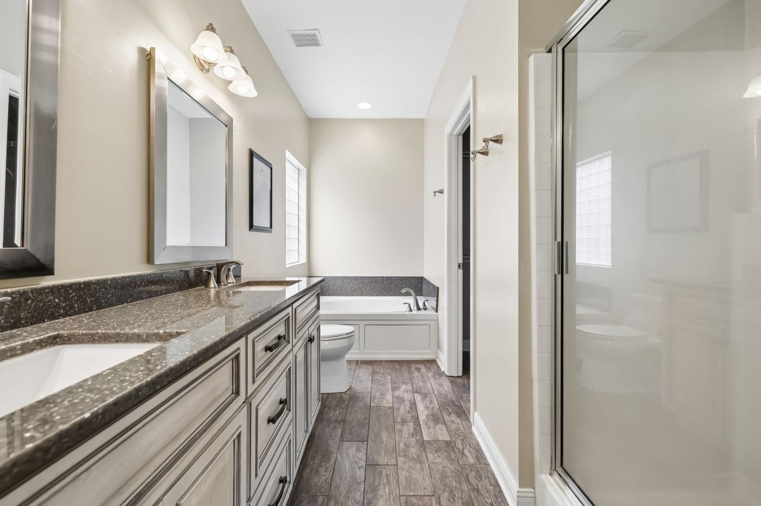 Welcome to 7412 Riverland Drive in Nashville, TN, nestled in the highly sought-after Riverwalk community where everyday living feels like a retreat. From the moment you step inside, you’re greeted by soaring vaulted ceilings and stunning faux wood porcelain tile flooring that flows throughout the main level. The heart of the home is warm and inviting, featuring a cozy fireplace and an open living space perfect for both quiet evenings and effortless entertaining. The main-level primary suite offers a true escape with a tray ceiling, spa-like ensuite bath, walk-in shower, soaking tub, and generous closet space. Upstairs, you’ll find two spacious bedrooms plus an expansive bonus room with a closet, ideal as a fourth bedroom, media room, home office, or flex space. Step outside to a fully fenced backyard perfect for weekend BBQs, pets, or simply unwinding. Riverwalk offers resort-style amenities including an aquatic center with three pools, miles of walking trails, wooded surroundings, and a scenic greenway along the Harpeth River. Conveniently located just minutes from Bellevue One Place, Loveless Cafe, TailGate Brewery, Edwin Warner Park, Percy Warner Park, and with easy access to I-40 for a quick commute to downtown Nashville, this home offers the perfect blend of comfort, convenience, and lifestyle.