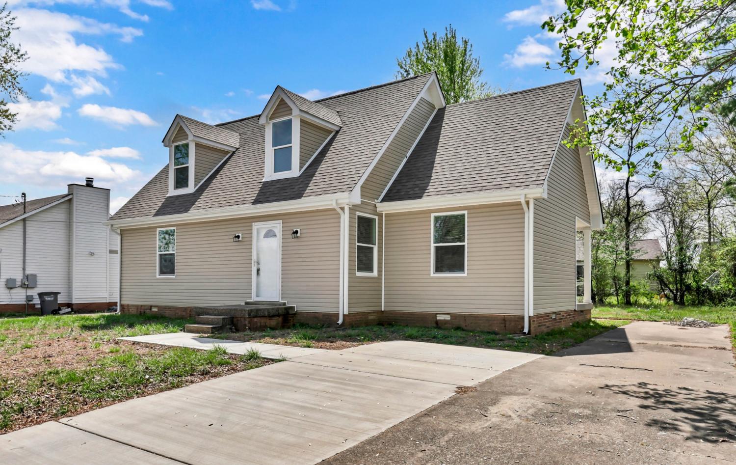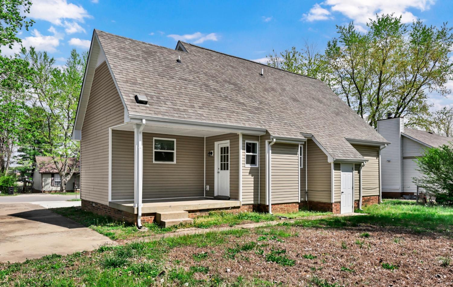 This adorable Cape Cod-style home looks and feels like new! Featuring low-maintenance vinyl siding and a well-designed layout, this 3-bedroom, 2-bath home offers two bedrooms on the main level, both with walk-in closets, along with a full bath. Upstairs, you’ll find a private third bedroom with its own walk-in closet and full bath, plus a spacious catwalk area. The catwalk includes a large walk-in attic with a full door for easy storage access, as well as a versatile landing space that would be perfect for a home office or study. Step outside to enjoy the covered patio overlooking the backyard, ideal for relaxing or entertaining. The property also features a concrete driveway with side-by-side parking for at least two vehicles and additional space on the street. Situated on a quiet dead-end street and conveniently located near Fort Campbell, this home truly has it all!