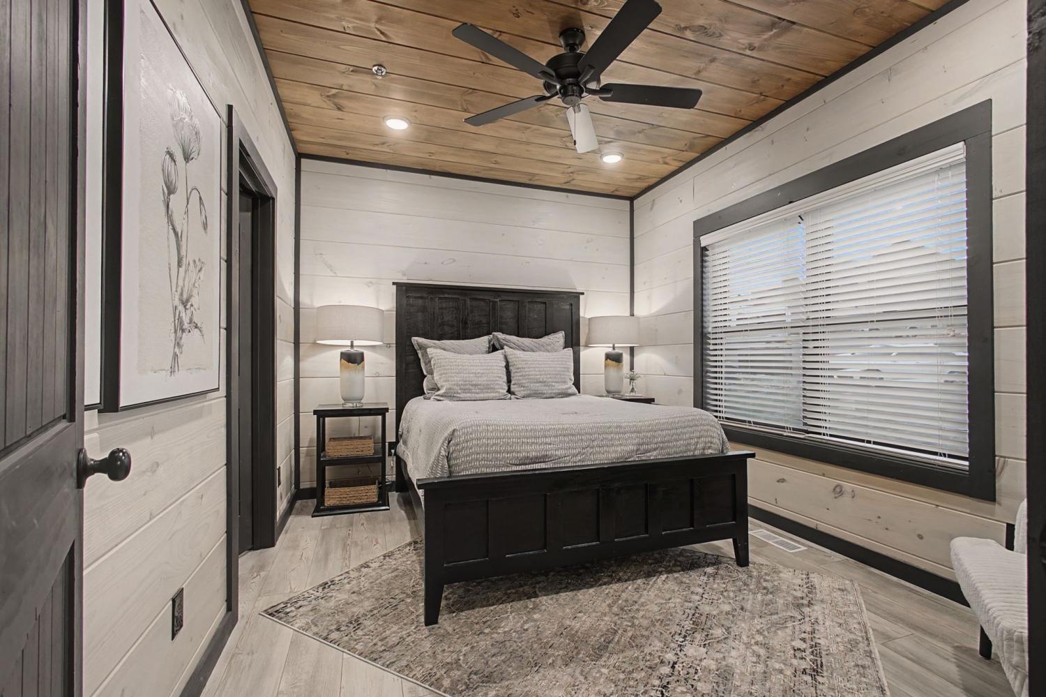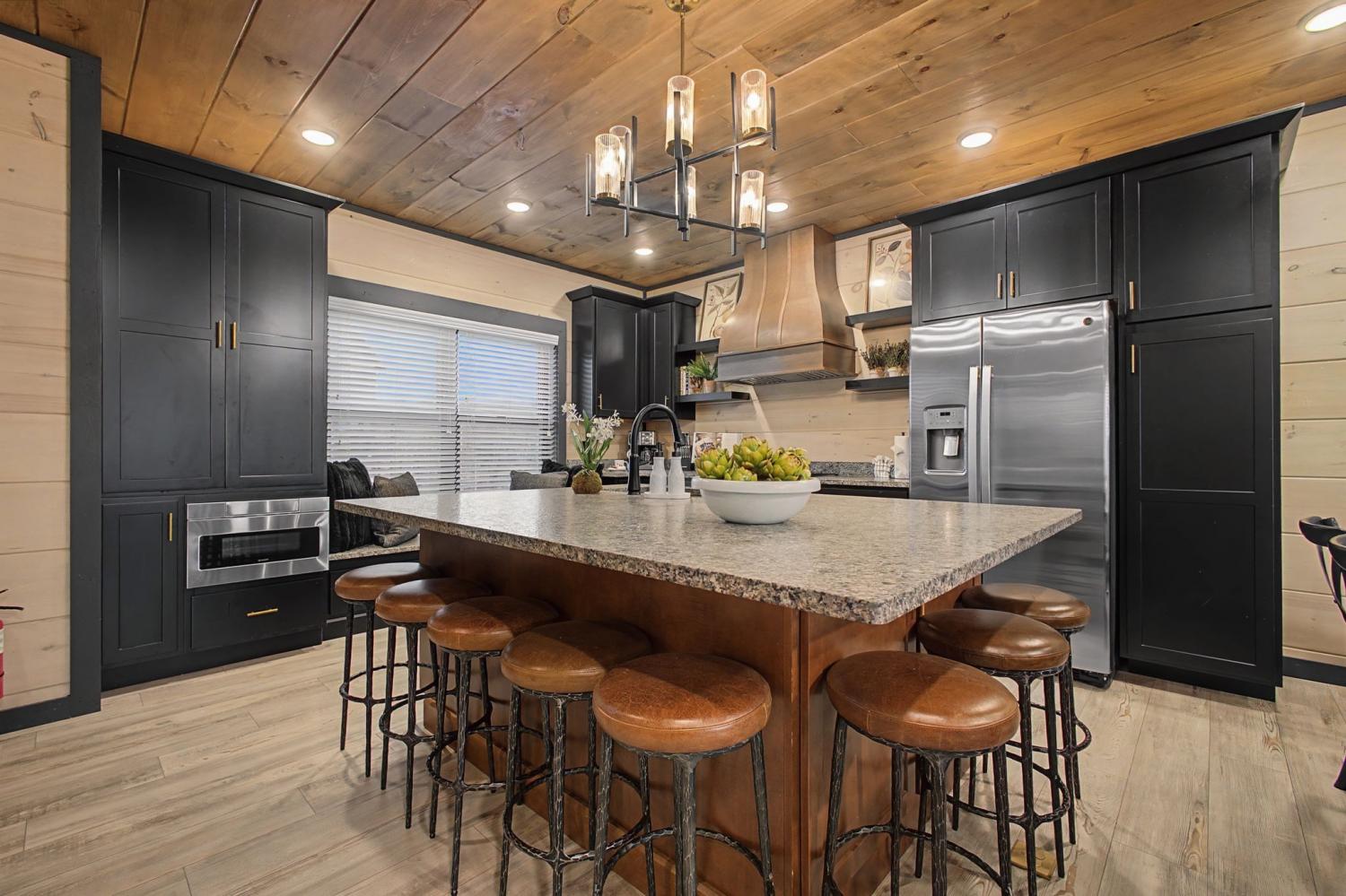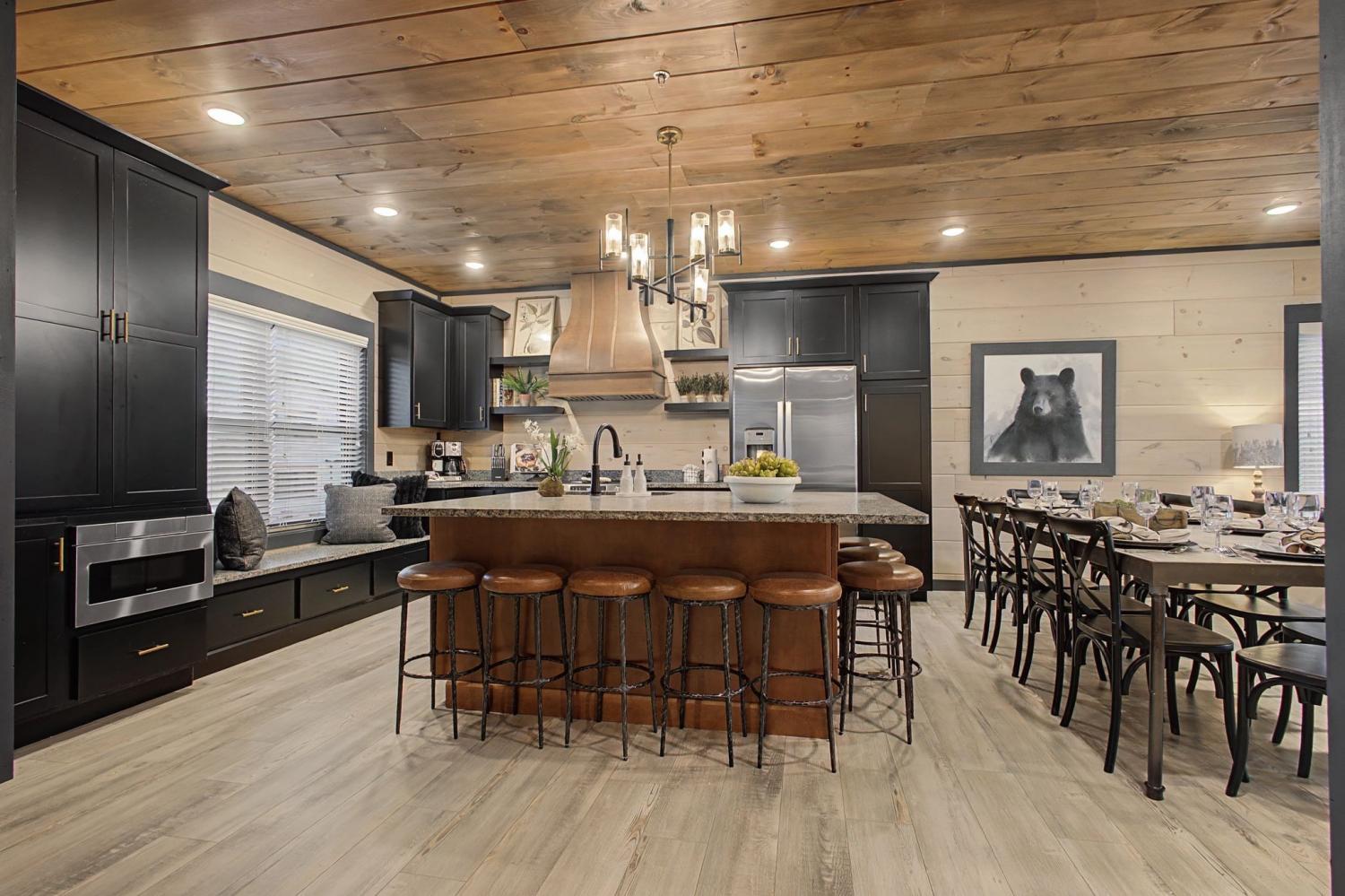 Exclusive, multi-million-dollar WATER PARK within the community—privately owned by HOA members and INCLUDED in the cabin purchase. No admission fees for overnight rental guests. This stunning 5-bedroom cabin features a PRIVATE INDOOR POOL, private movie theatre, and game room, all wrapped in contemporary styling with high-end designer finishes throughout. The cabin conveys fully furnished, including a fully stocked kitchen and all appliances, making it truly turn-key. Outdoor living is equally impressive with a dedicated gathering space and firepit, ideal for entertaining and guest enjoyment. Built with safety and peace of mind in mind, the home is fully sprinklered and equipped with a central fire-station monitored alarm system. ABSOLUTE MUST-SEE. Located just 1 mile from the Parkway, with NO restrictions on self-management or third-party cabin management—a rare opportunity for both owners and investors.