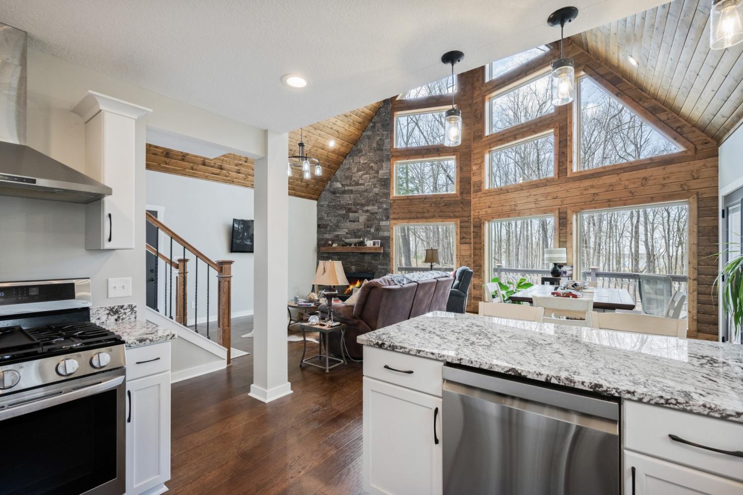 Exterior Construction : Stone,Vinyl Siding